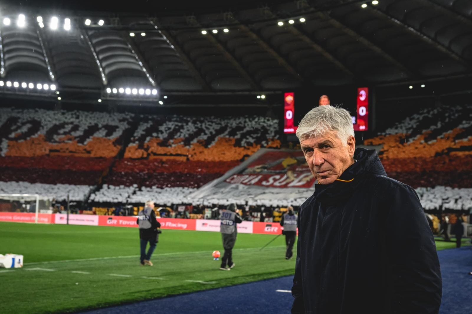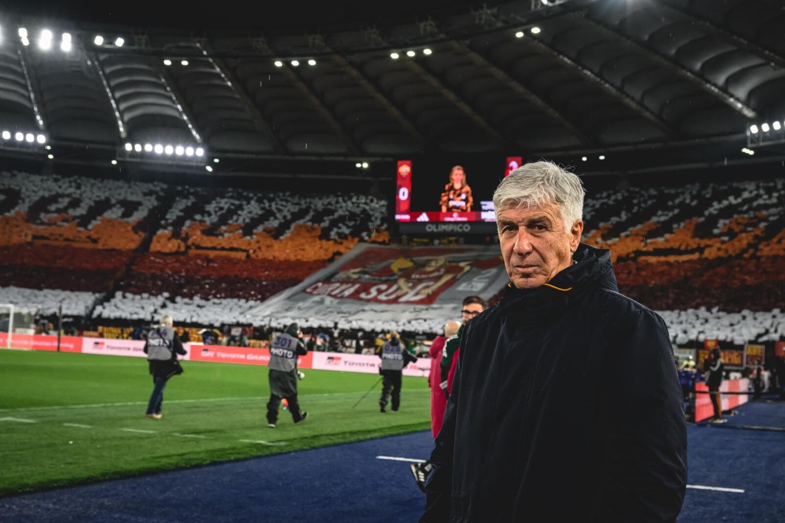 Bellissimo lo spettacolo offerto dalla curva giallorossa all'ingresso in campo delle squadre all'Olimpico