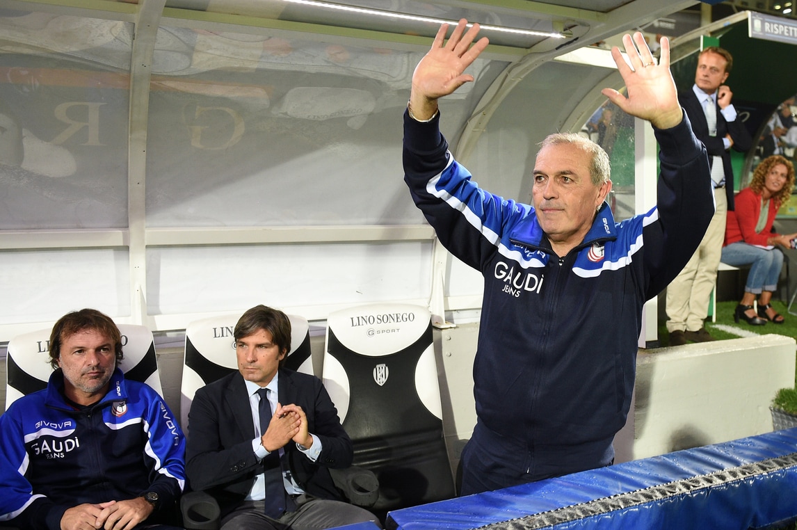 I tifosi del Cesena espongono uno striscione dedicato al loro ex tecnico oggi al Carpi: la reazione è commovente