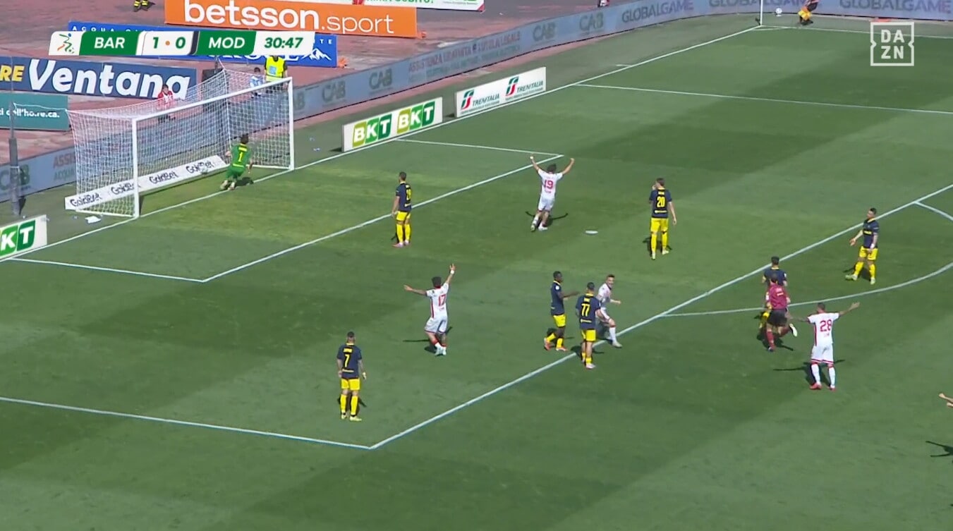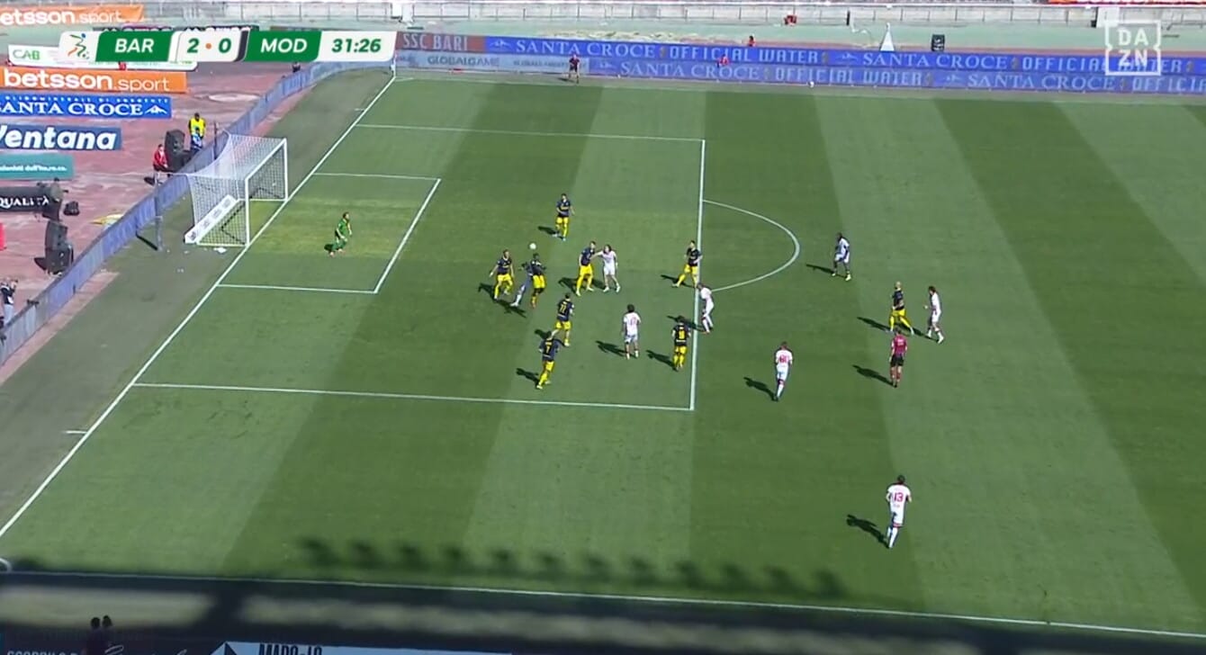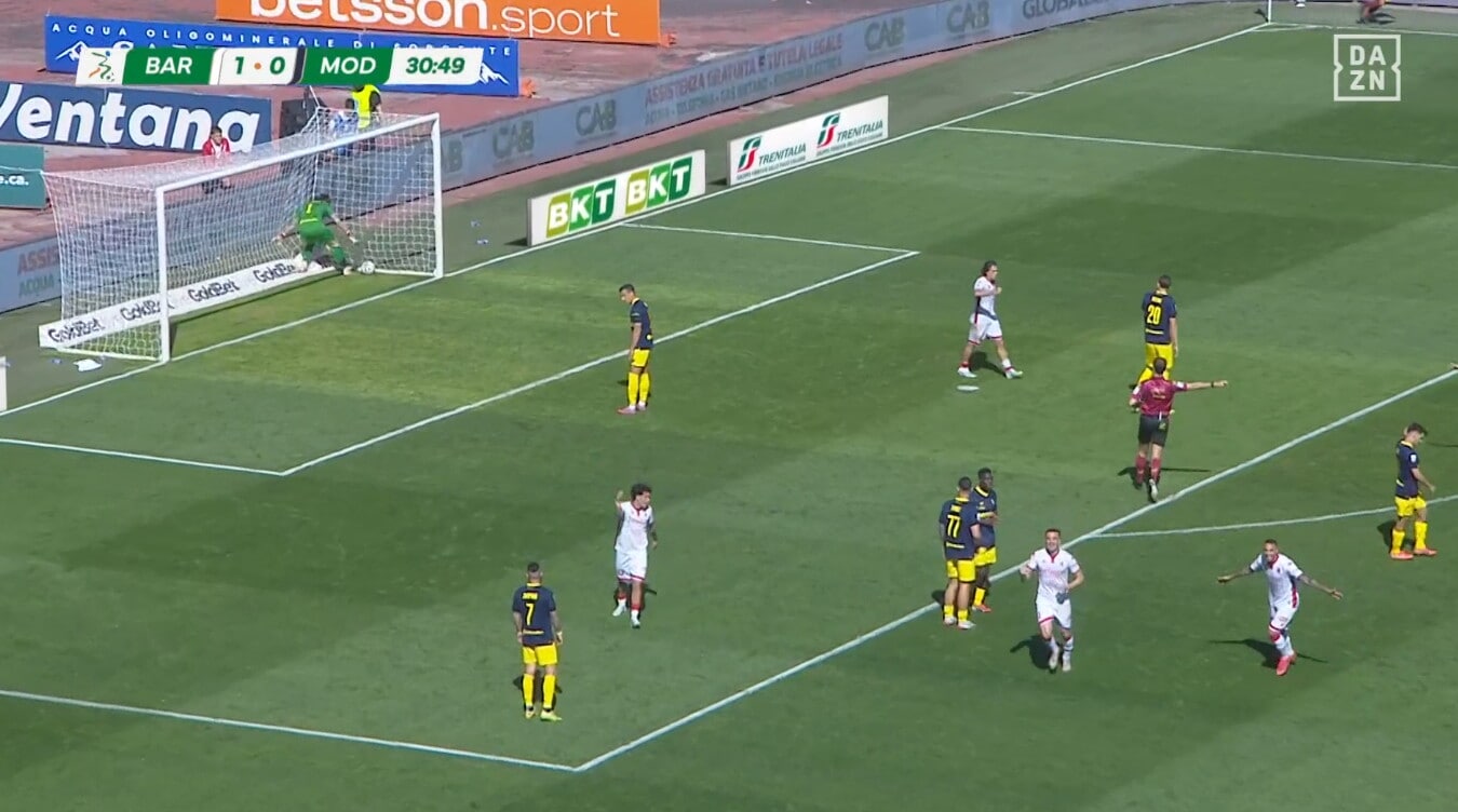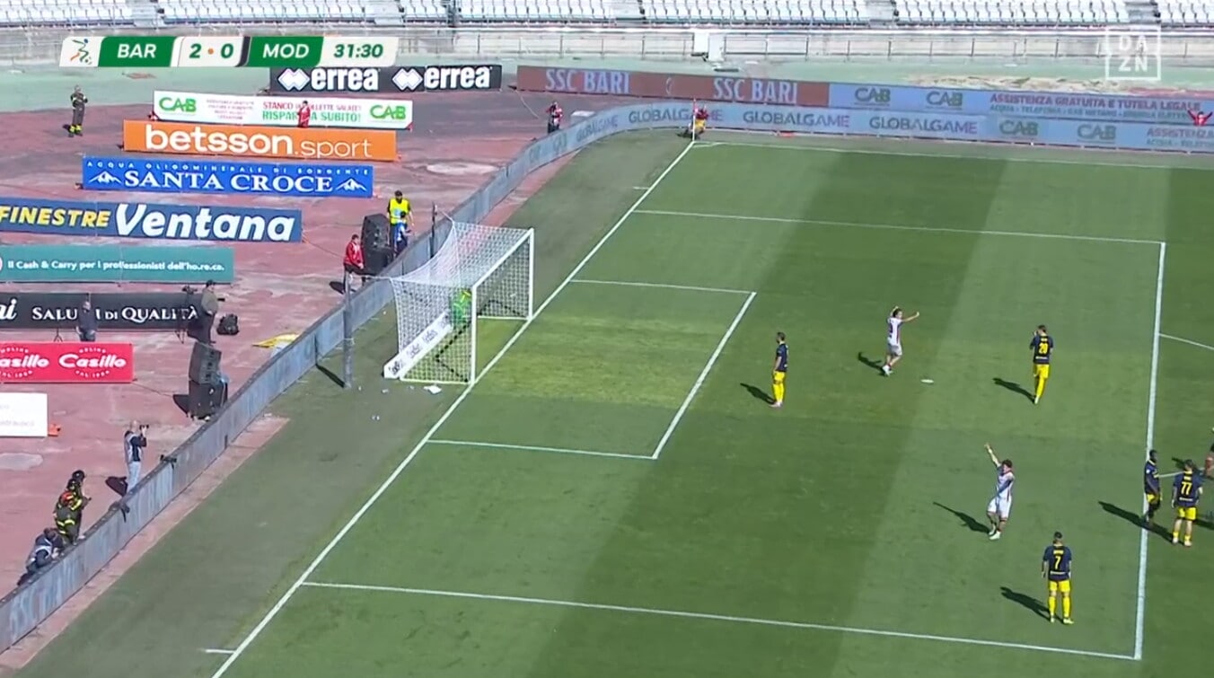 Adorni, autogol clamoroso in Bari-Modena: il retropassaggio di testa beffa Chichizola