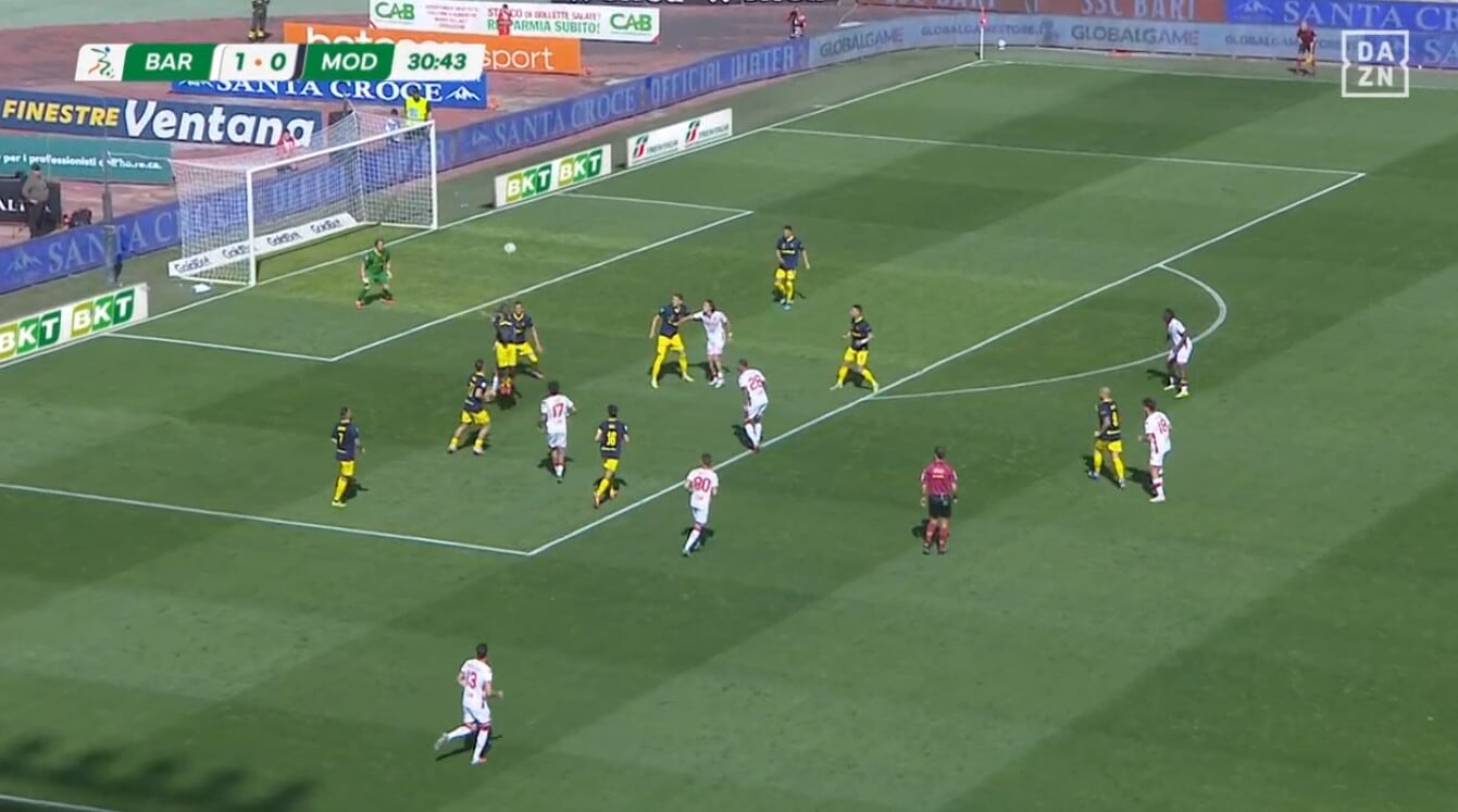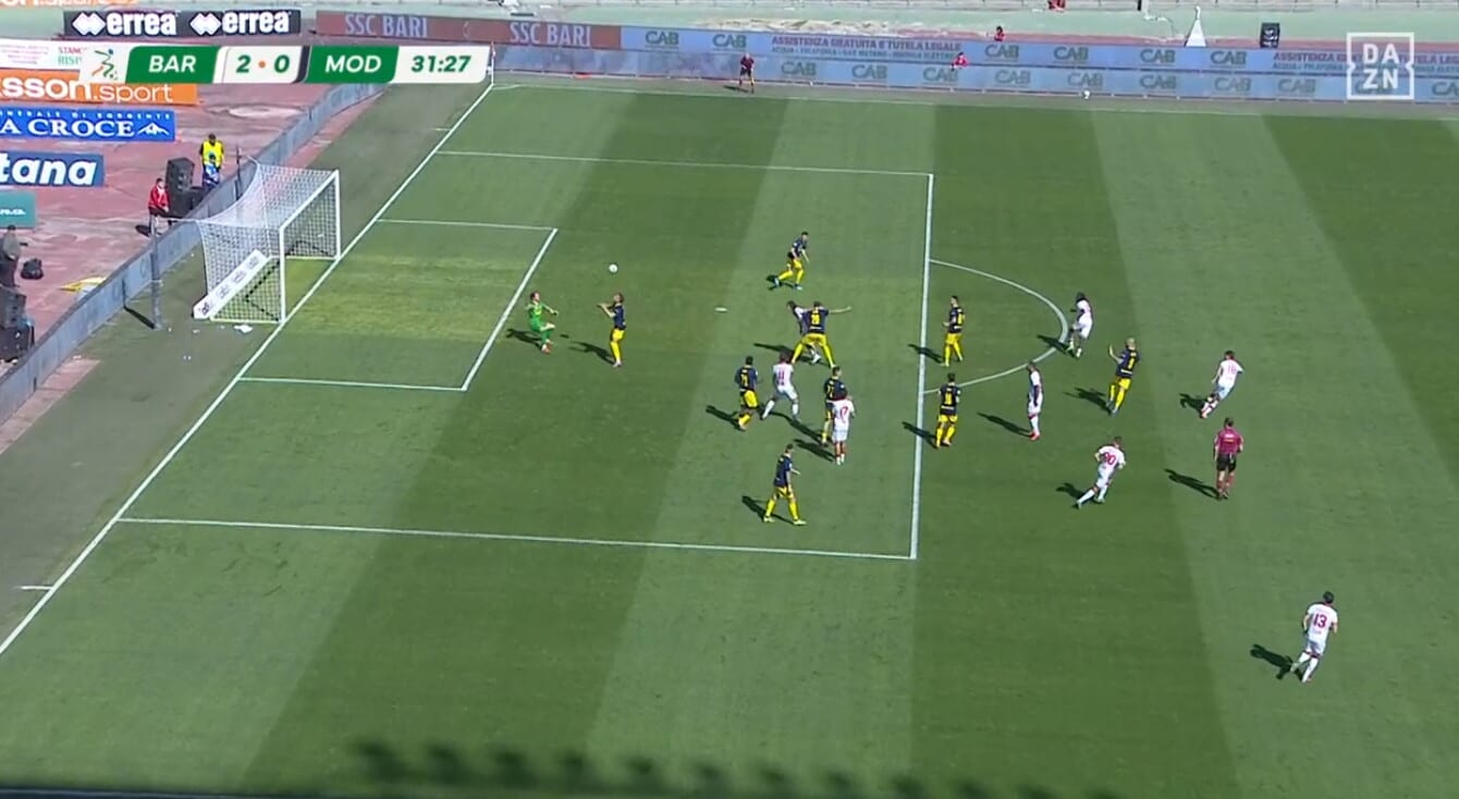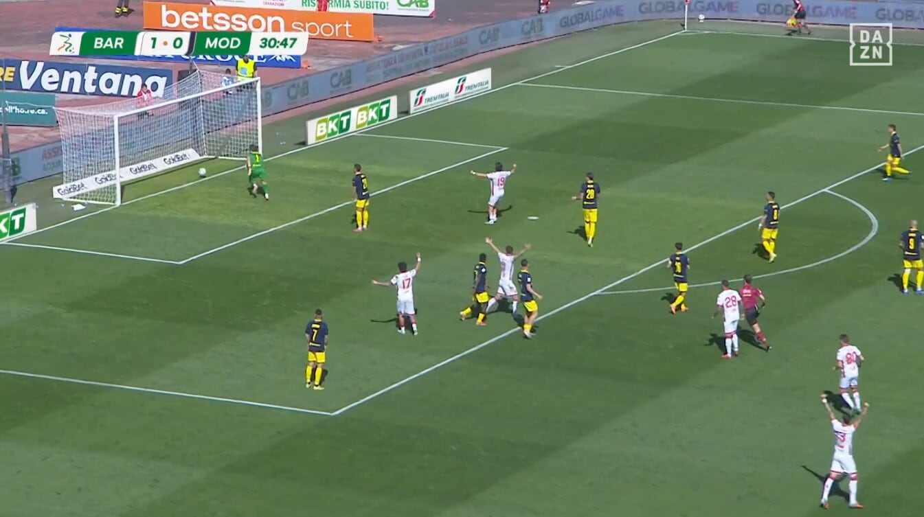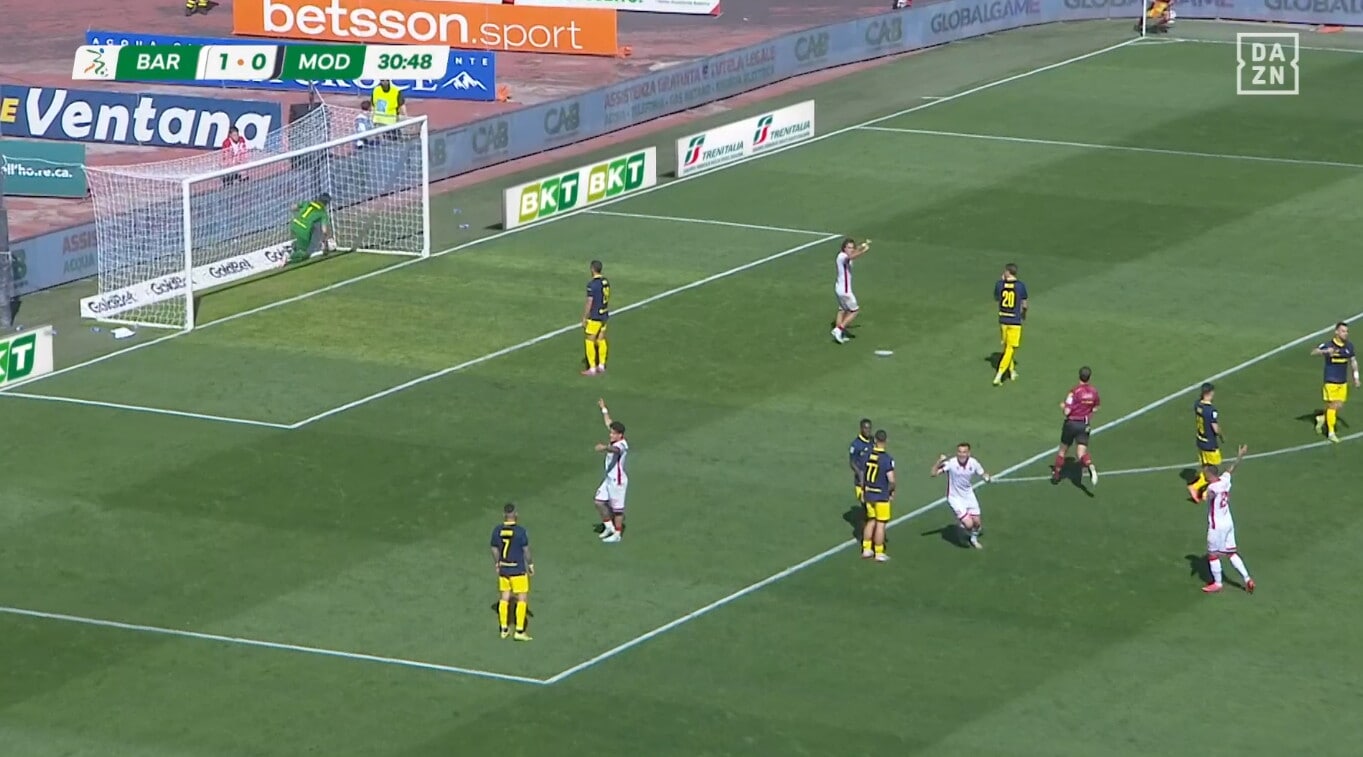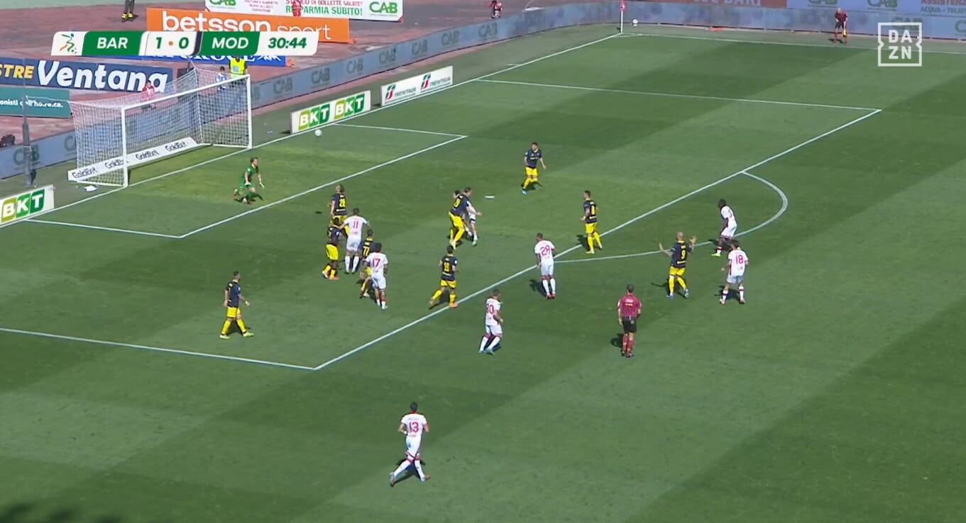 Adorni, autogol clamoroso in Bari-Modena: il retropassaggio di testa beffa Chichizola