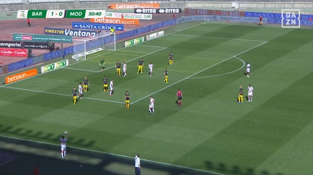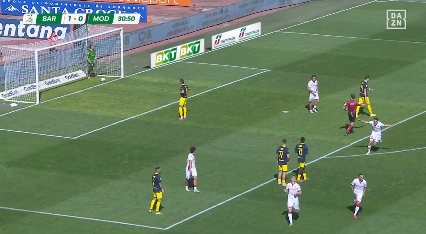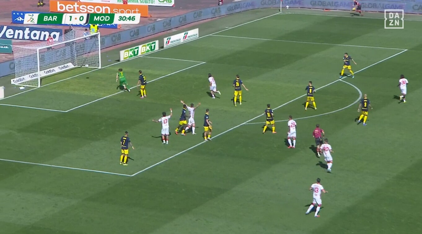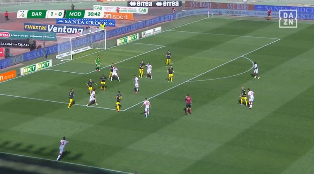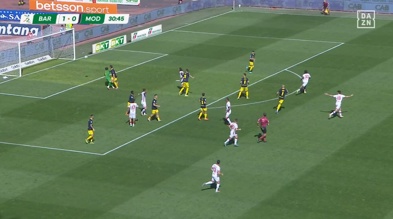 Adorni, autogol clamoroso in Bari-Modena: il retropassaggio di testa beffa Chichizola