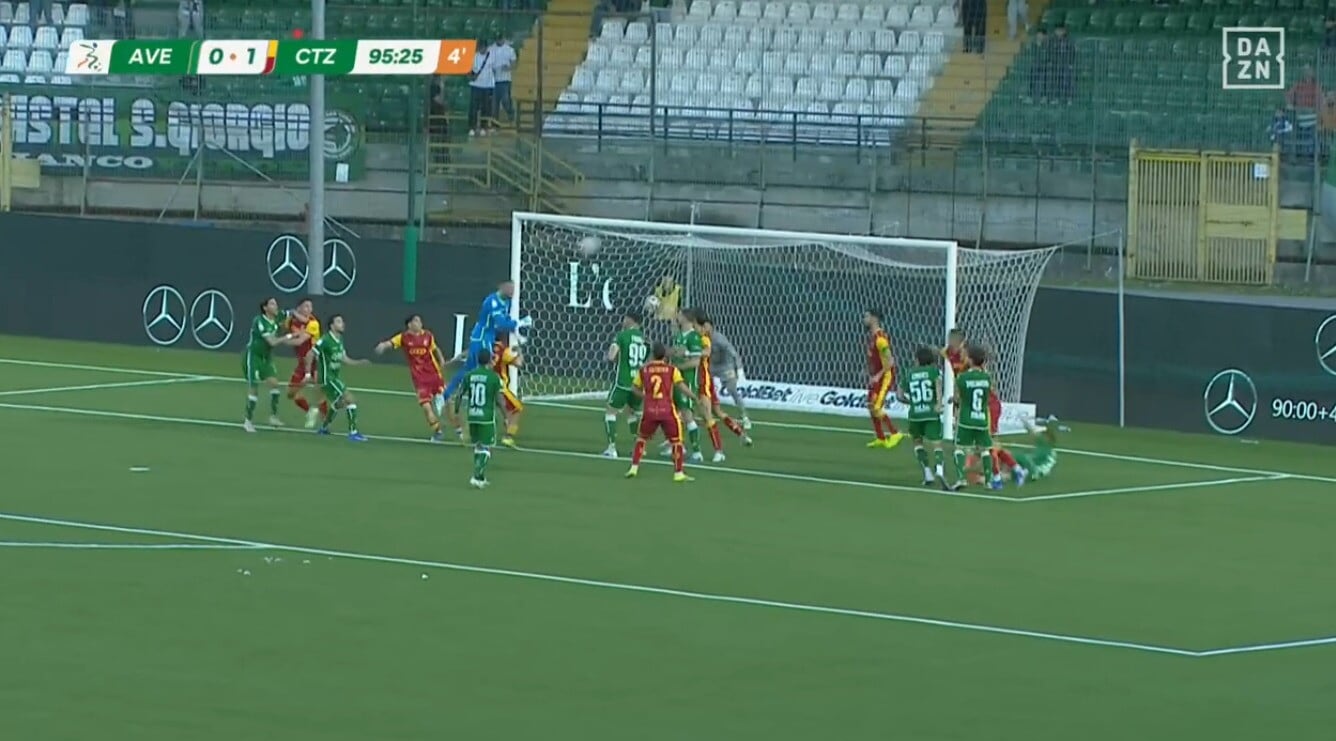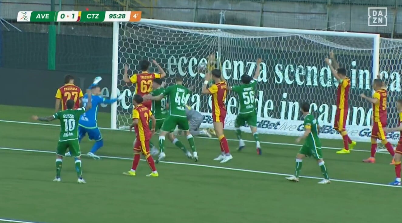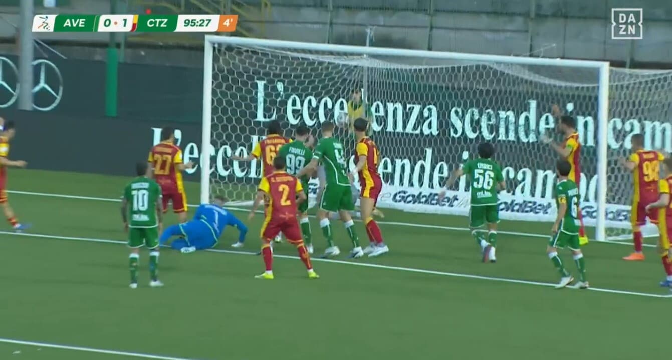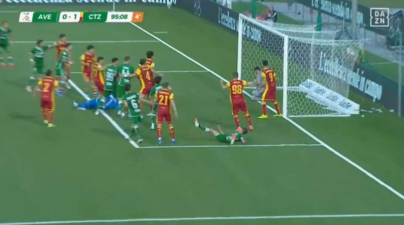 Il portiere Iannarilli eroe di giornata per l'Avellino: segna di testa allo scadere contro il Catanzaro