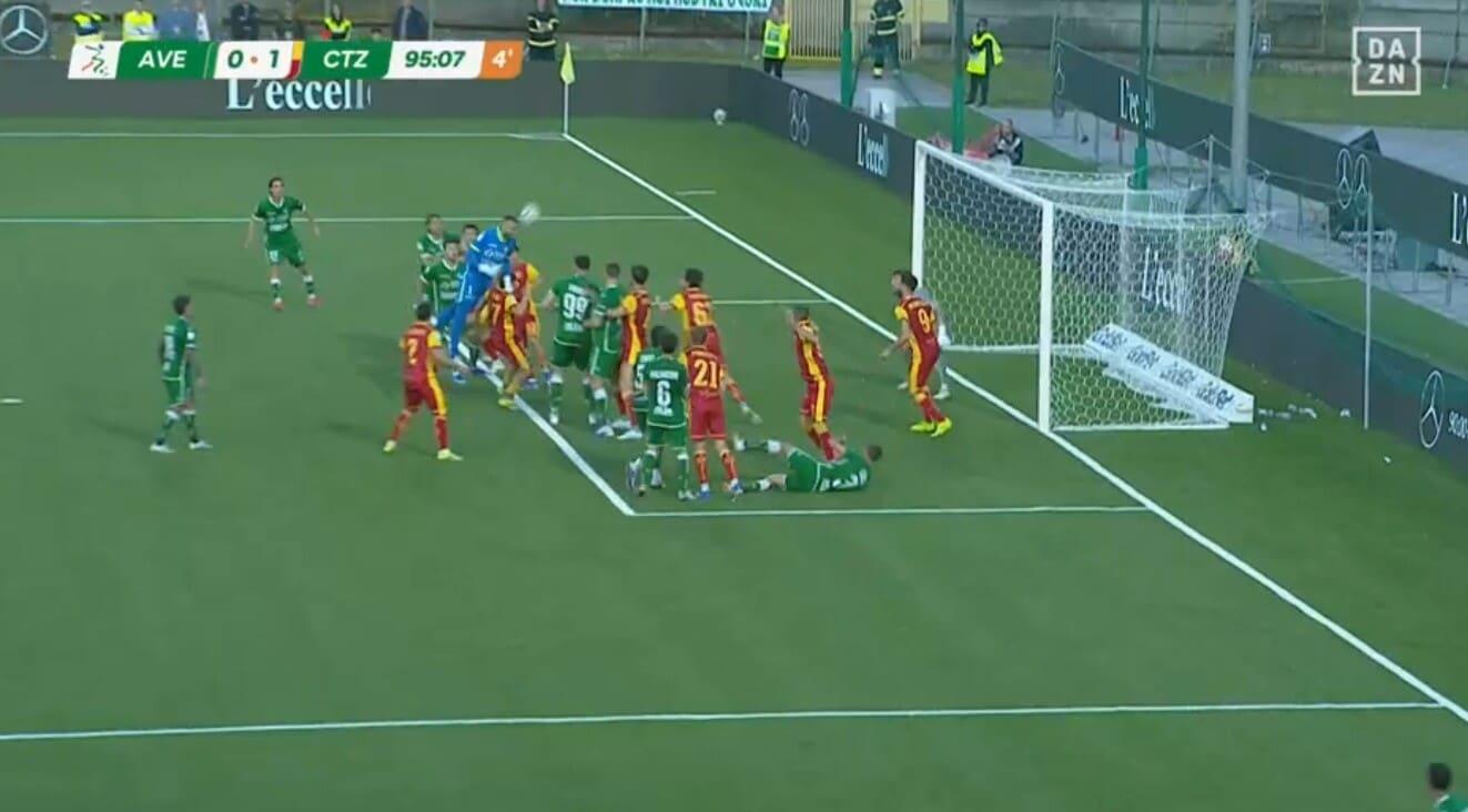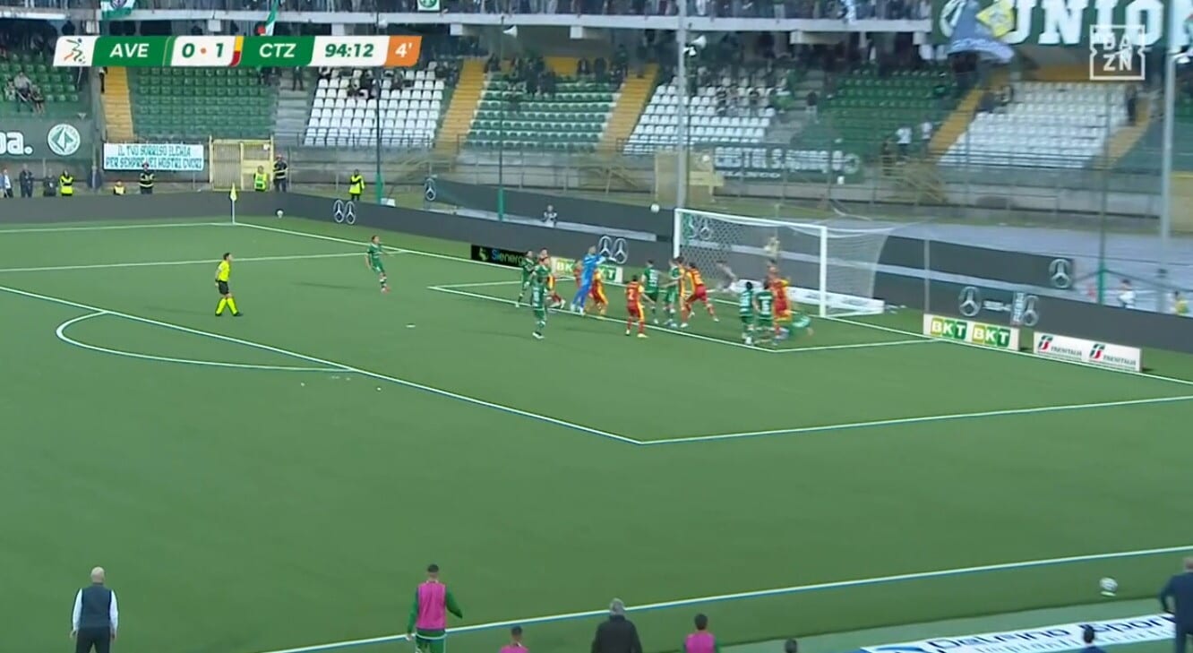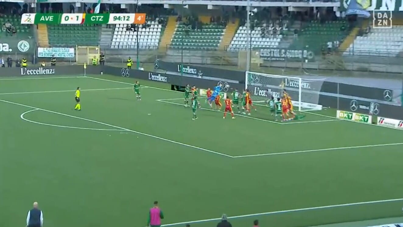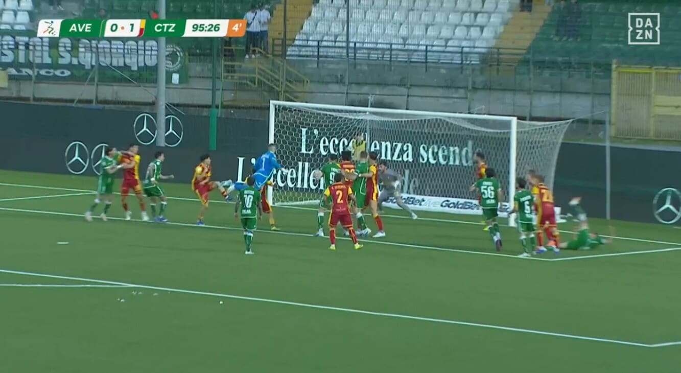 Il portiere Iannarilli eroe di giornata per l'Avellino: segna di testa allo scadere contro il Catanzaro