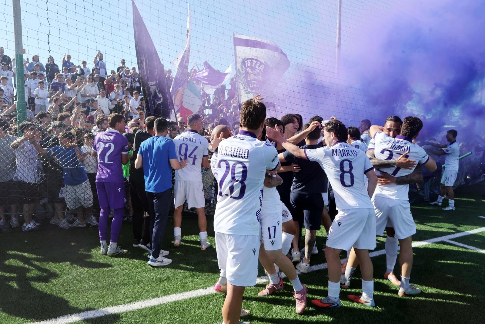 L'Ostiamare promossa in Serie C: è festa grande con i tifosi in campo