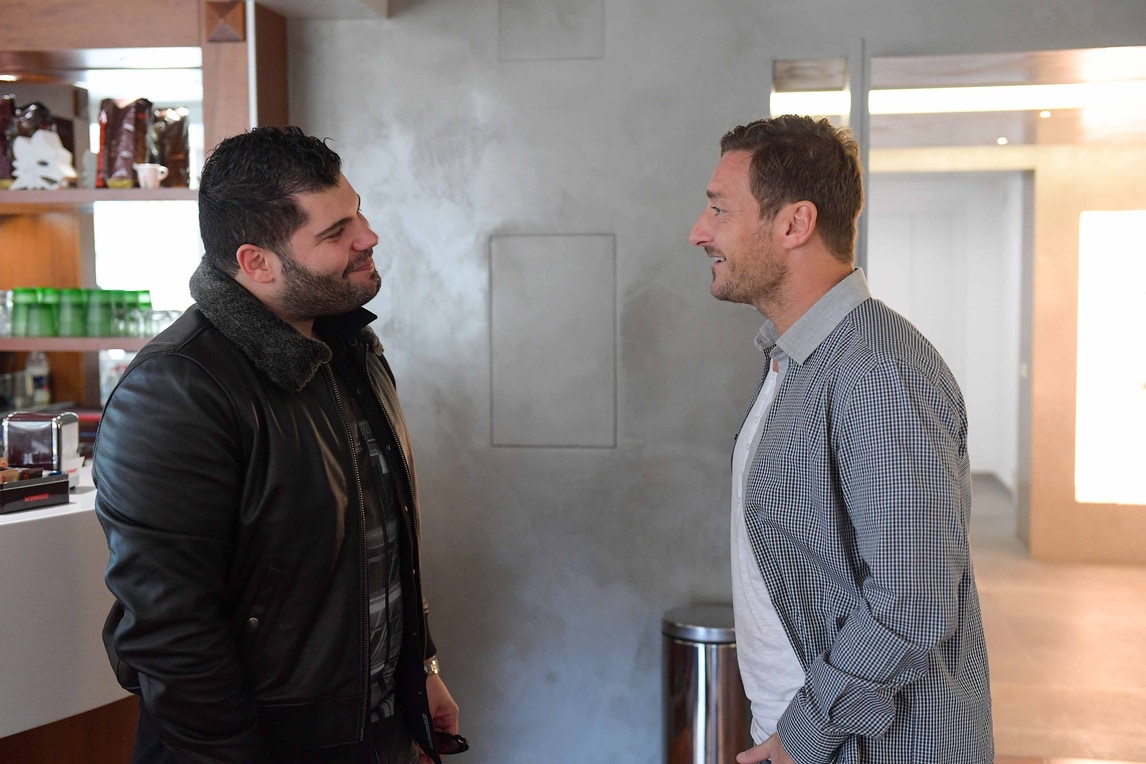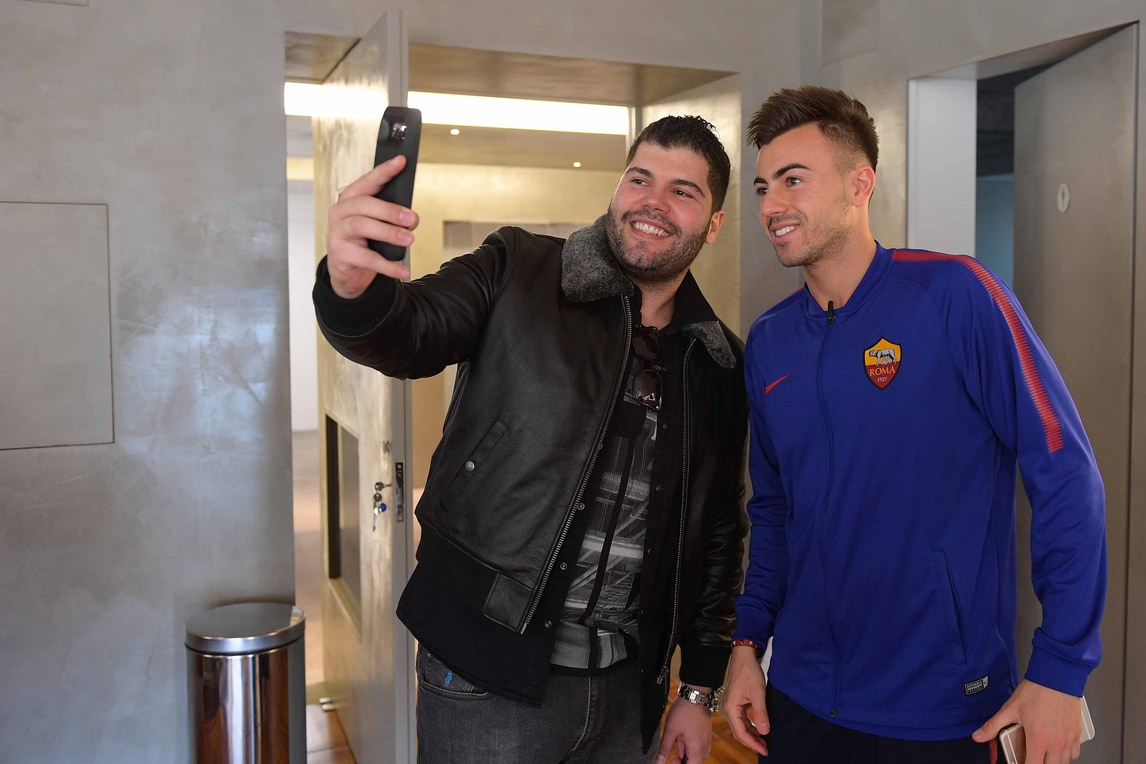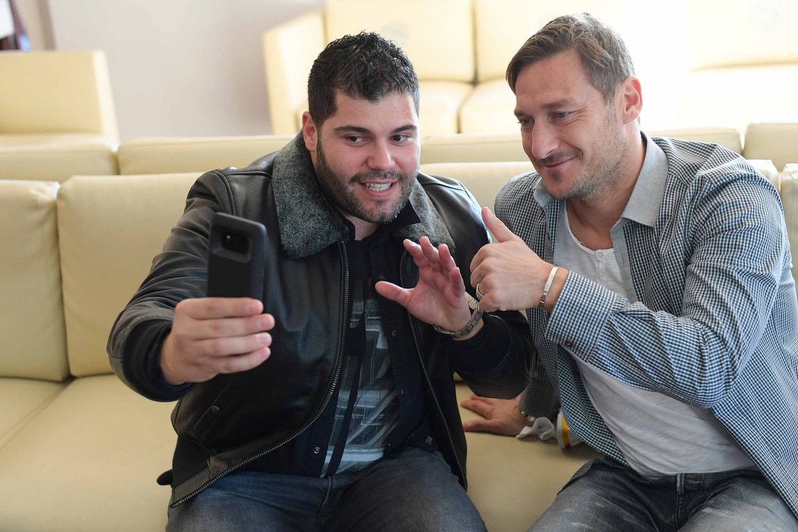 Roma, Salvatore Esposito a Trigoria: foto con Totti, De Rossi e Nainggolan