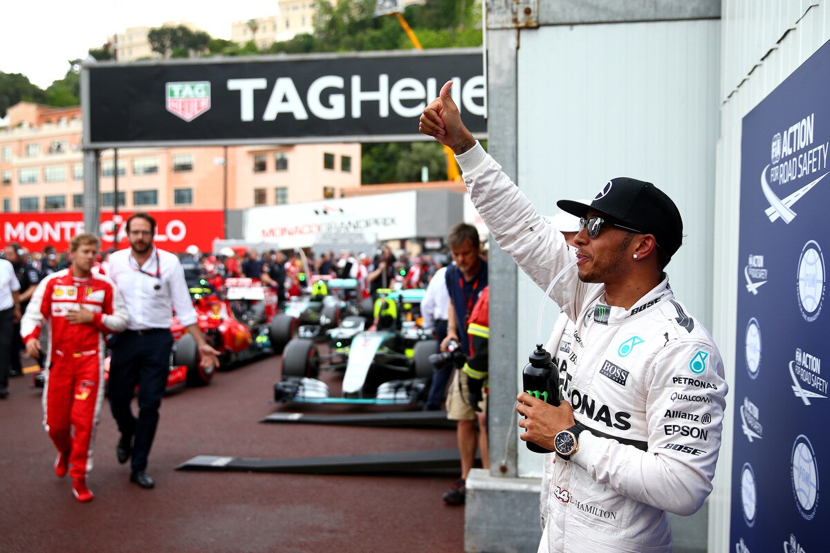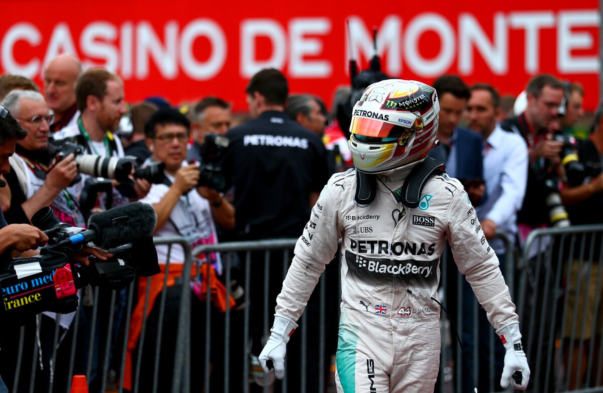 Il pilota della Mercedes conquista per la prima volta la pole position nel Gp di Monaco con 1’15”098. Seconda posizione per Rosberg con un distacco di tre decimi e mezzo. Terzo Sebastian Vettel