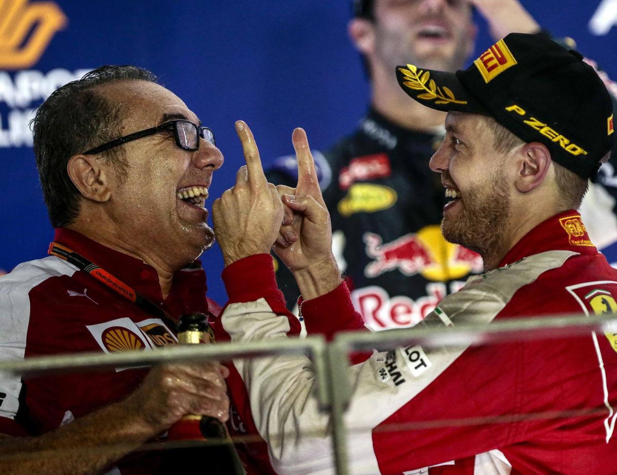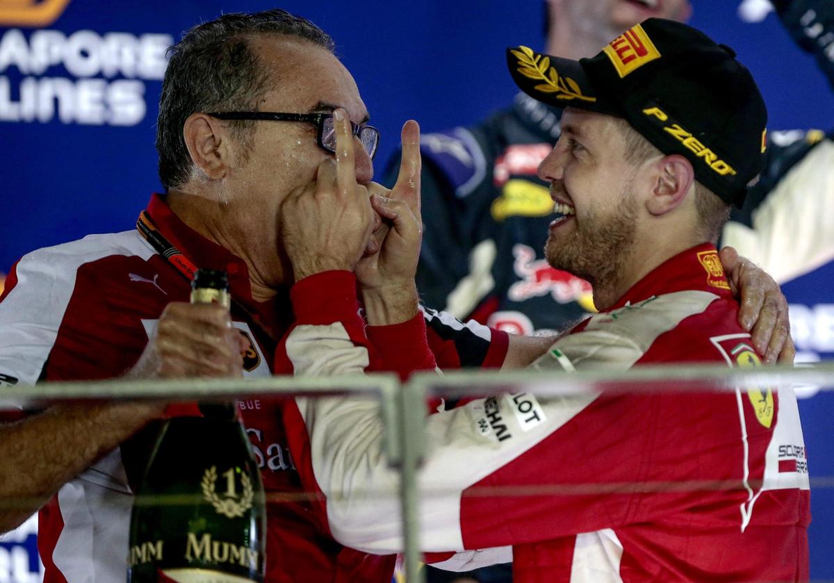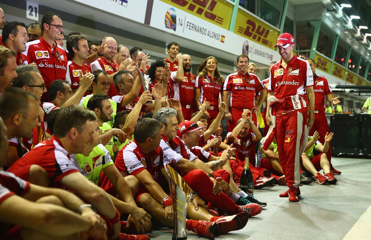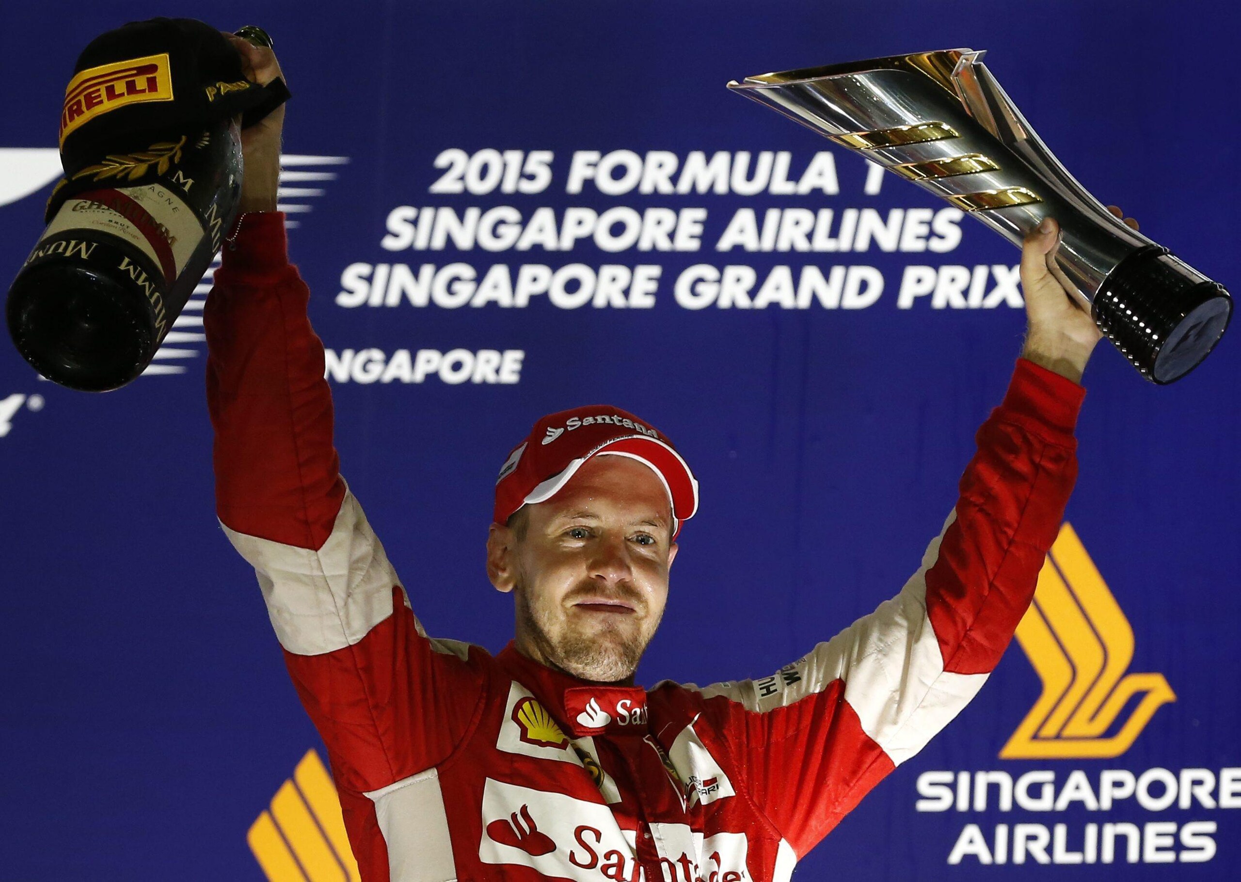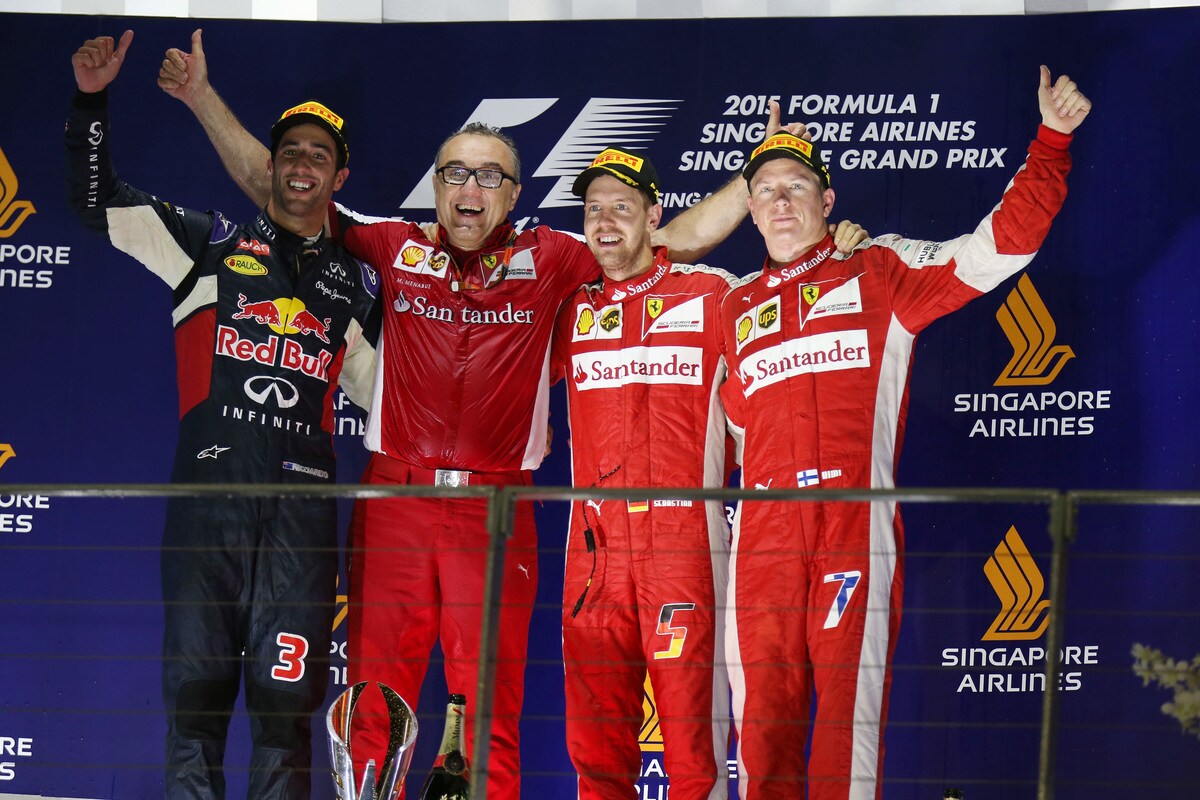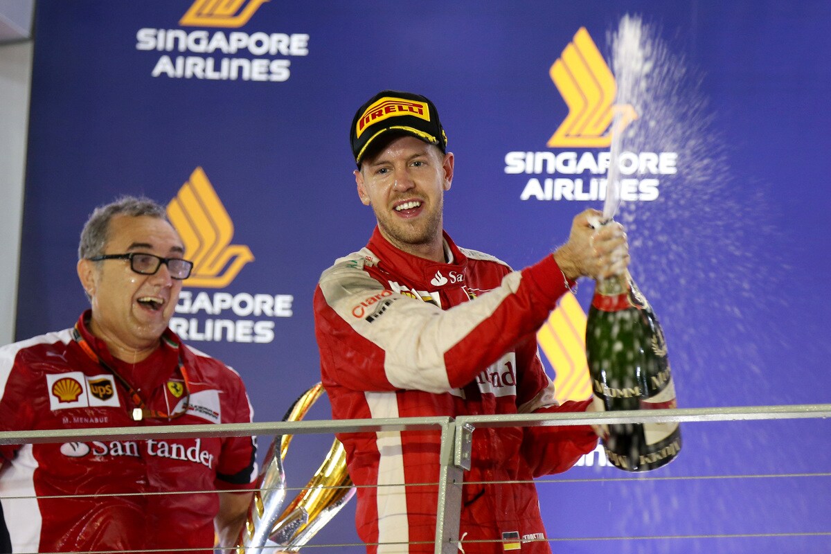 Dopo aver dominato la gara dall'inizio alla fine, Sebastian Vettel ha vinto il Gp di Singapore. Insieme a lui sul podio, Daniel Ricciardo e il compagno di squadra Kimi Raikkonen