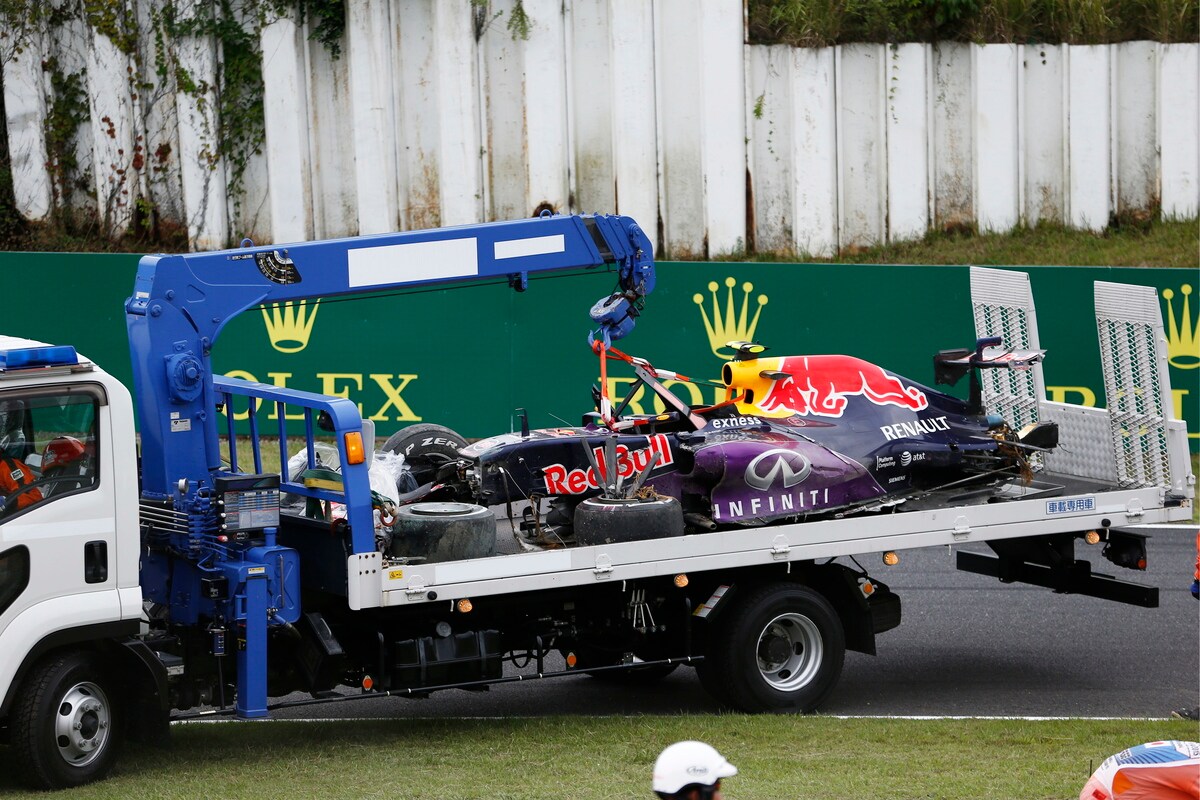 Durante le qualifiche del Gp del Giappone pauroso incidente (per fortuna senza conseguenze) di Daniil Kvyat, che ha perso il controllo della sua Red Bull: inevitabile l’impatto con le barriere, con la vettura completamente distrutta