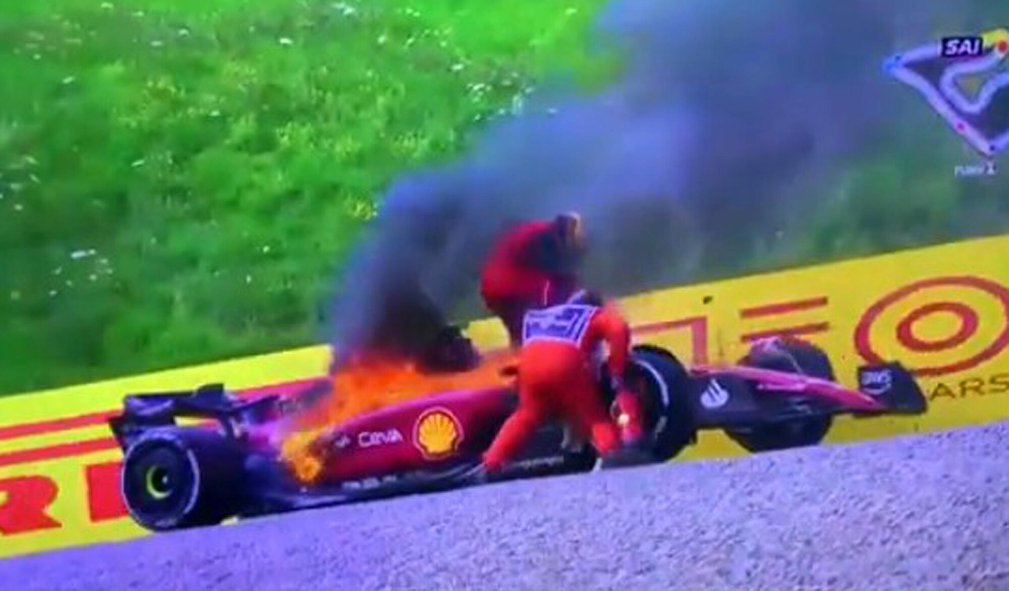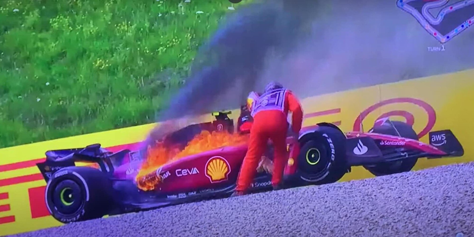 Sainz, le FOTO della Ferrari avvolta dalle fiamme