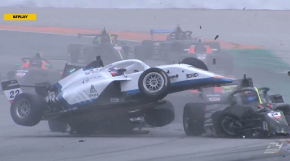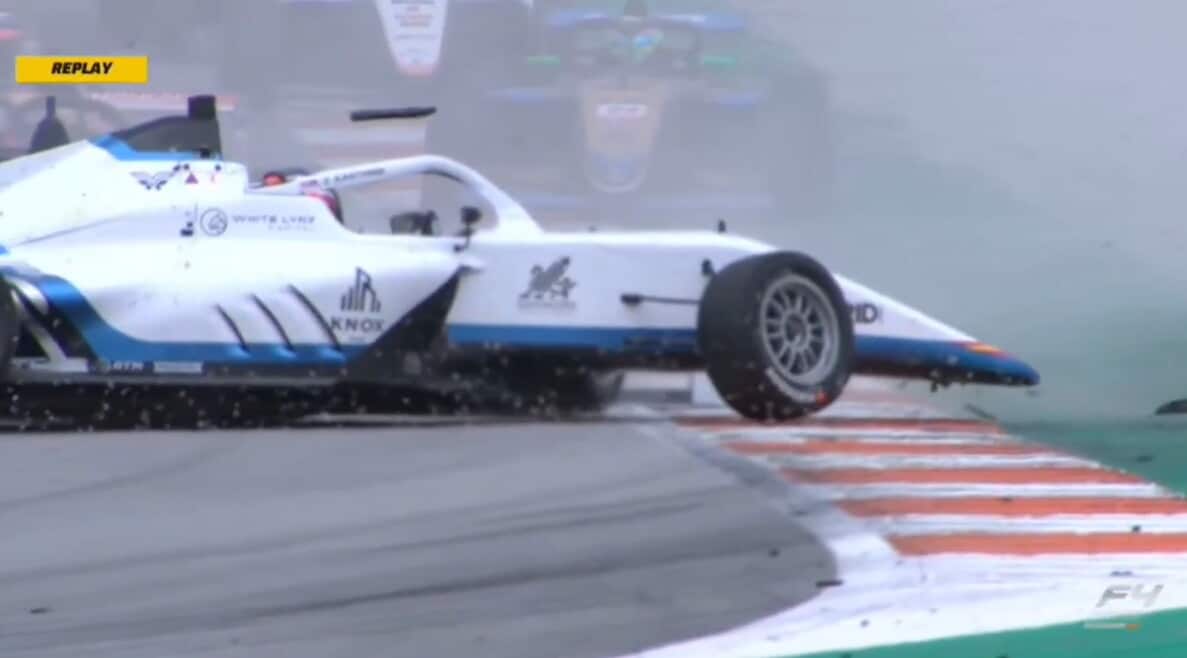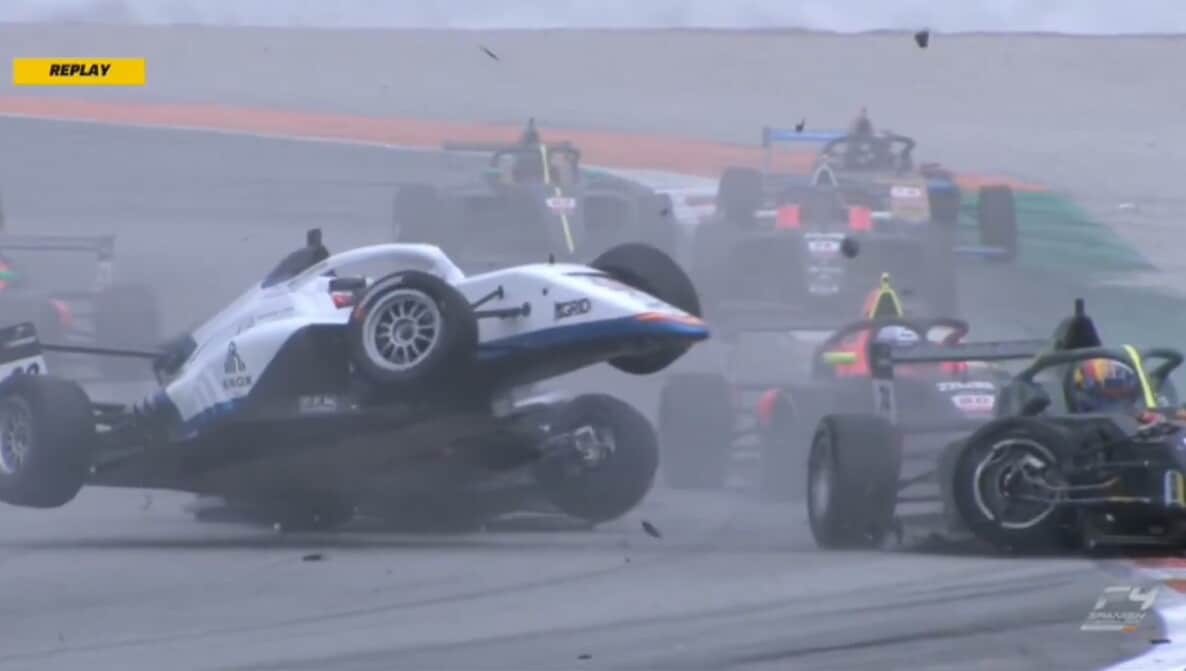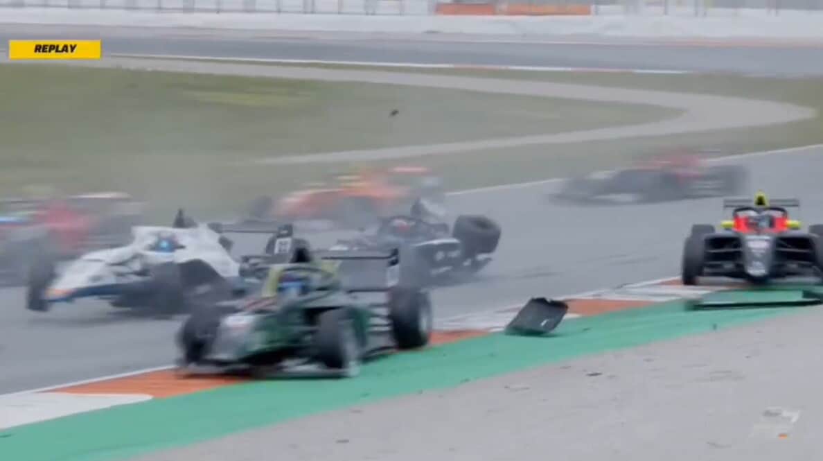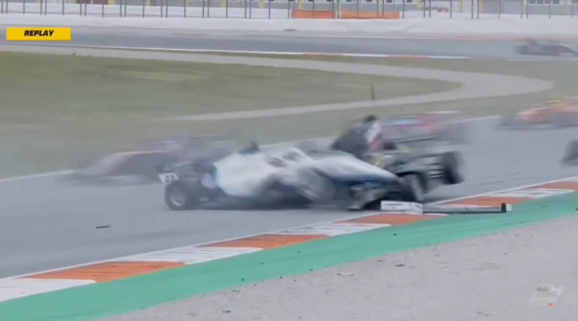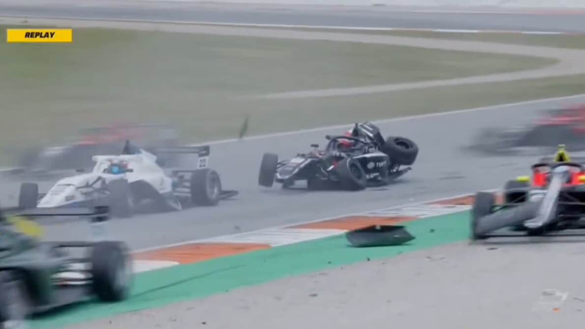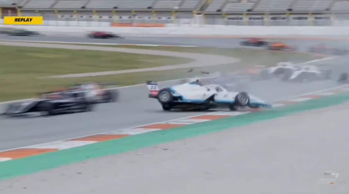 Le immagini dalla F4 spagnola, con la gara sul circuito di Valencia che è stata subito sospesa con bandiera rossa: l'impatto è durissimo ma i piloti, fortunatamente, stanno bene