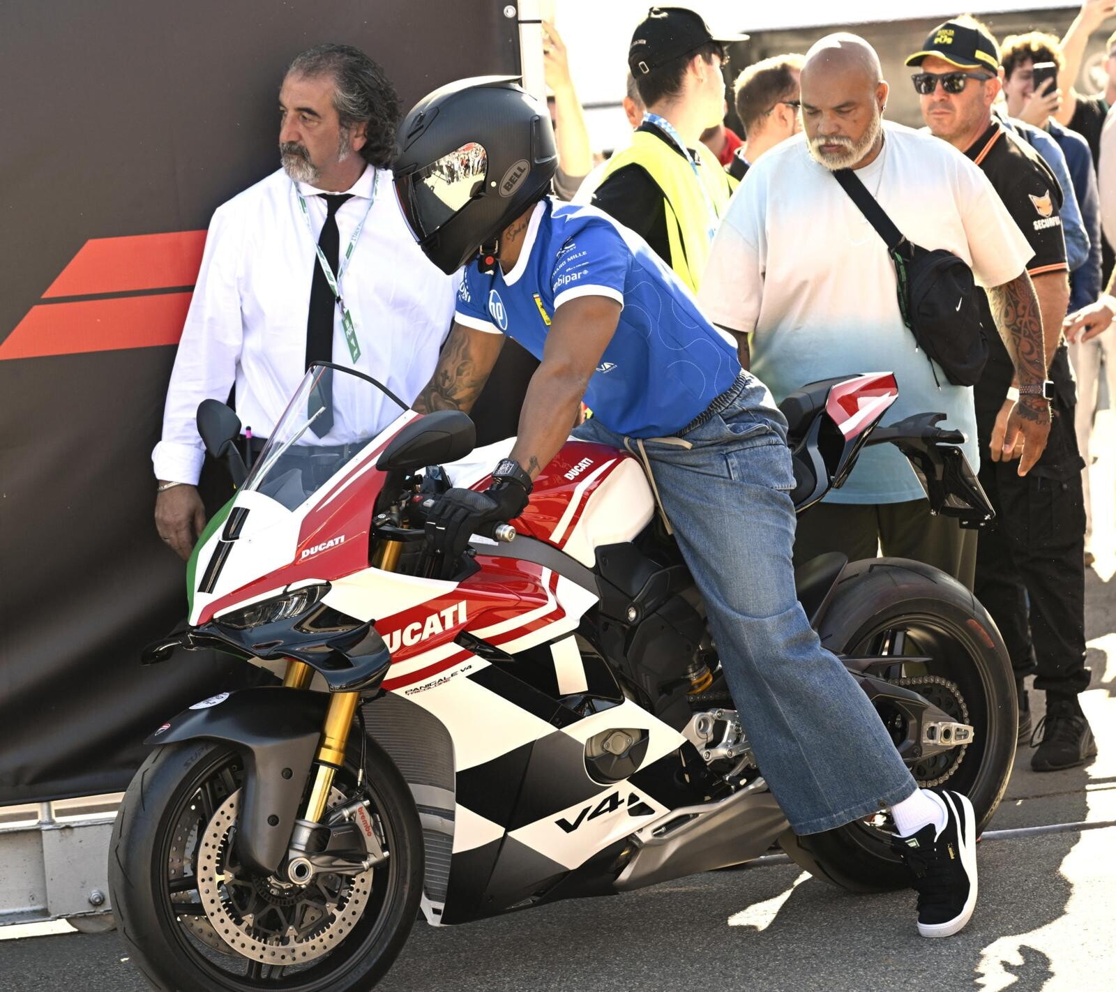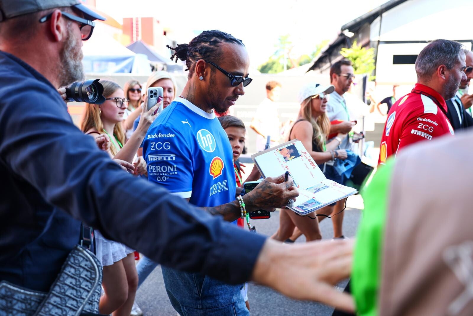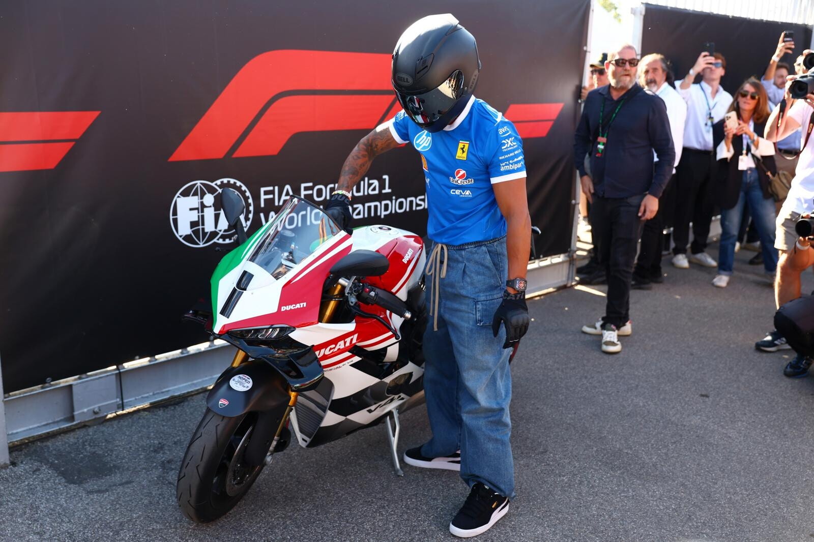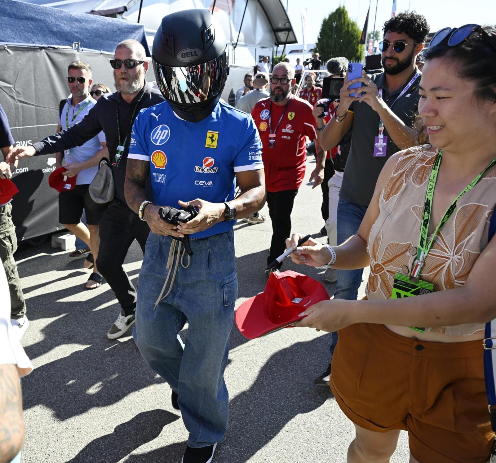 Tutti gli occhi puntati su di lui, al suo primo Gran Premio da pilota Ferrari a Monza. Lewis fa il suo ingresso nel paddock in pieno stile Hammer: il 7 volte campione del mondo arriva nel circuito in sella alla Ducati Panigale V4 Tricolore Italia con un casco integrale nero con visiera specchiata: tifosi del Cavallino (e non) in visibilio, pur di strappargli un selfie o un autografo
