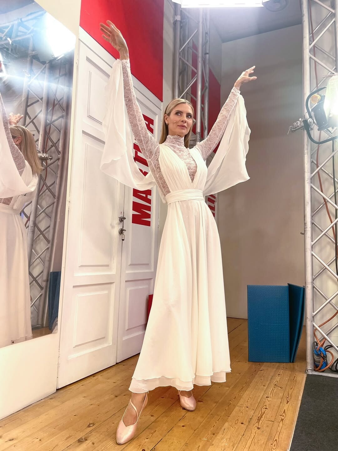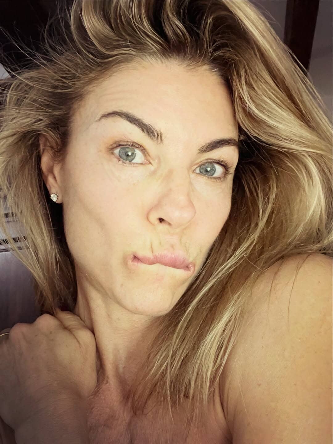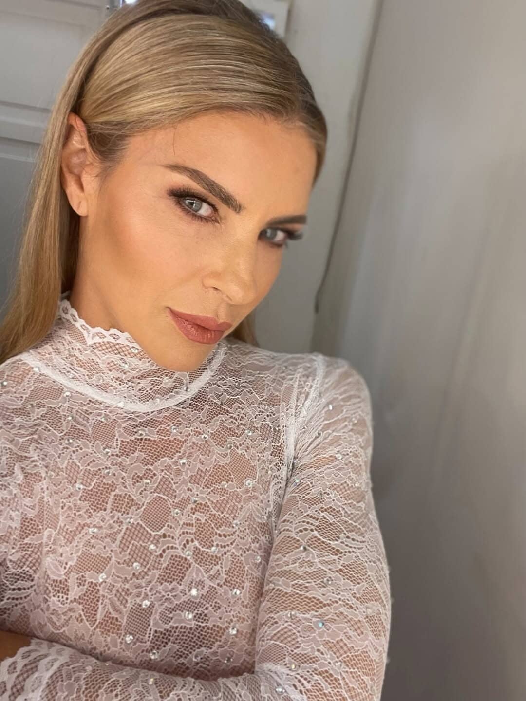 La bellissima showgirl immortalata dal marito mentre si asciuga i capelli in bagno, dopo la doccia, è davvero sensuale e scatena i suoi followers