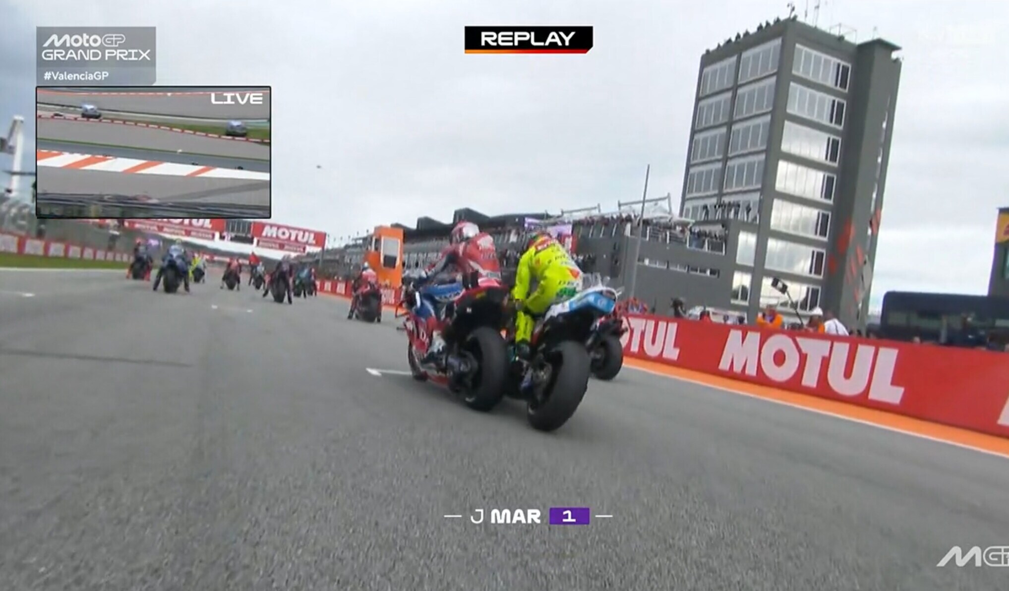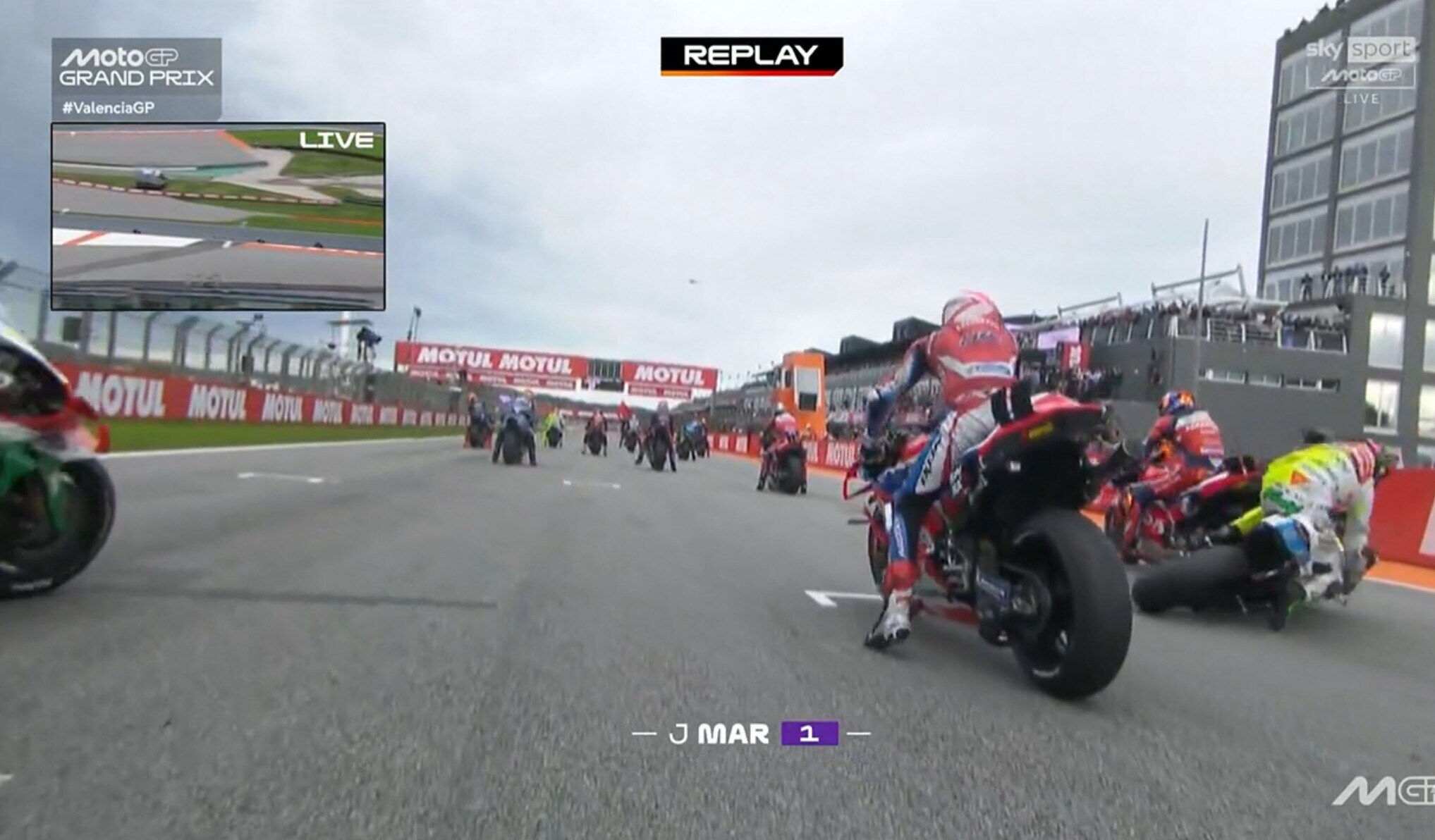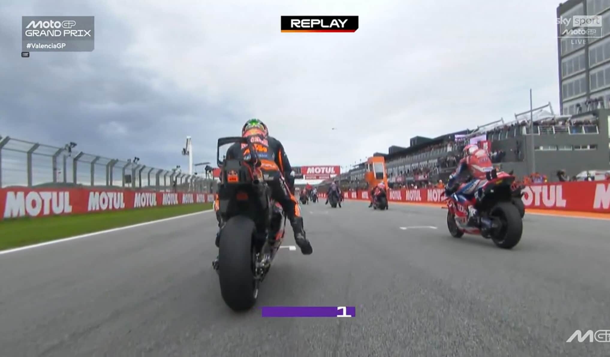Assurdo Morbidelli, sbanda e colpisce Espargaro prima del via a Valencia!