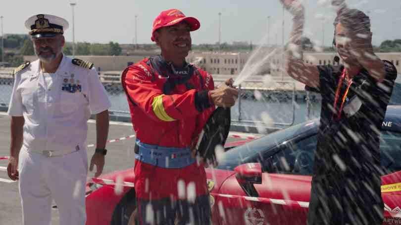 Il pilota romano Fabio Barone ha stabilito un nuovo record mondiale di velocità su una nave, raggiungendo i 152 km/h a bordo di una Ferrari SF90 Stradale sul ponte dell'incrociatore Giuseppe Garibaldi a Taranto. Questo è il suo sesto Guinness World Record, ottenuto con la collaborazione della Marina Militare Italiana