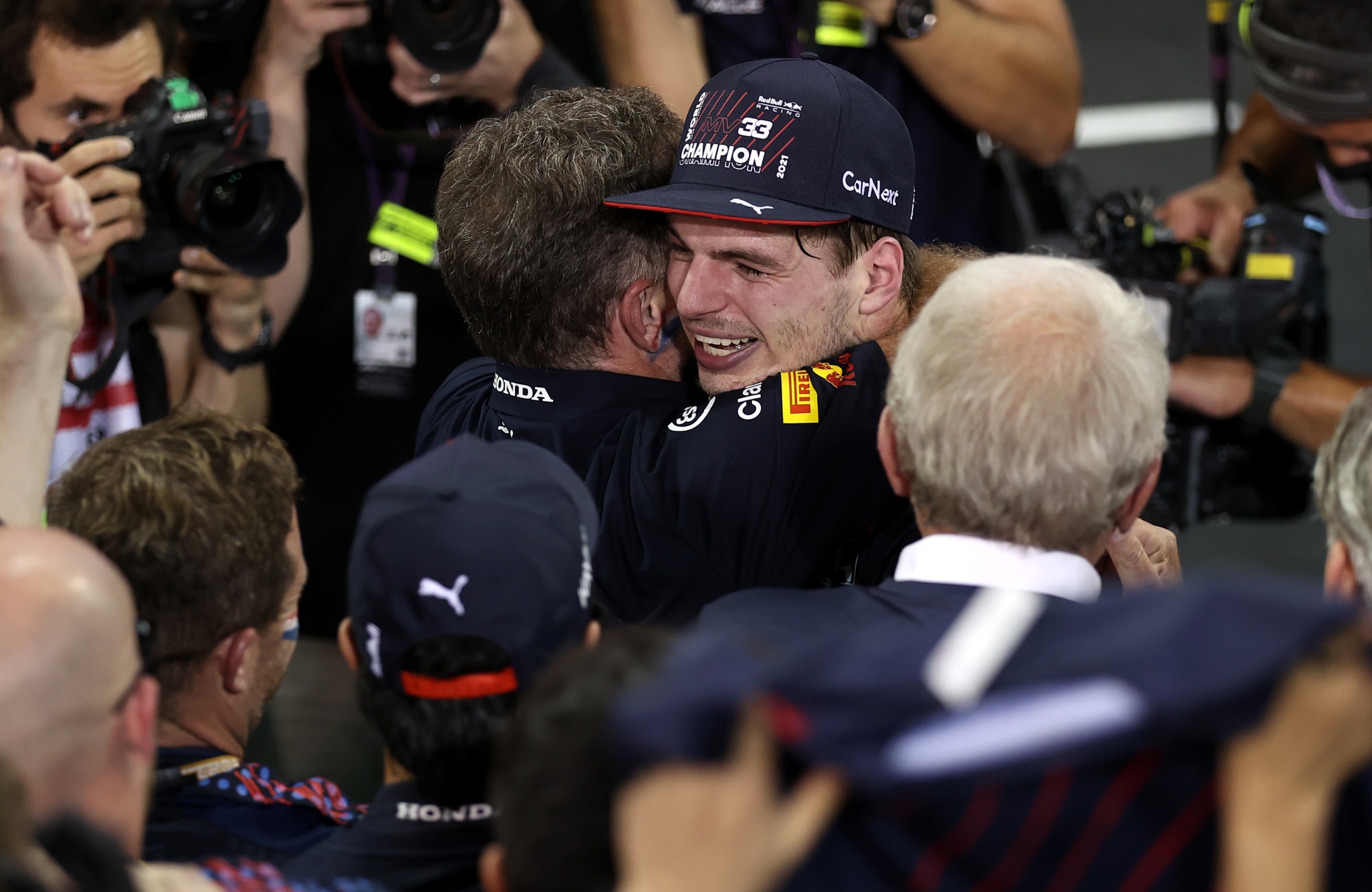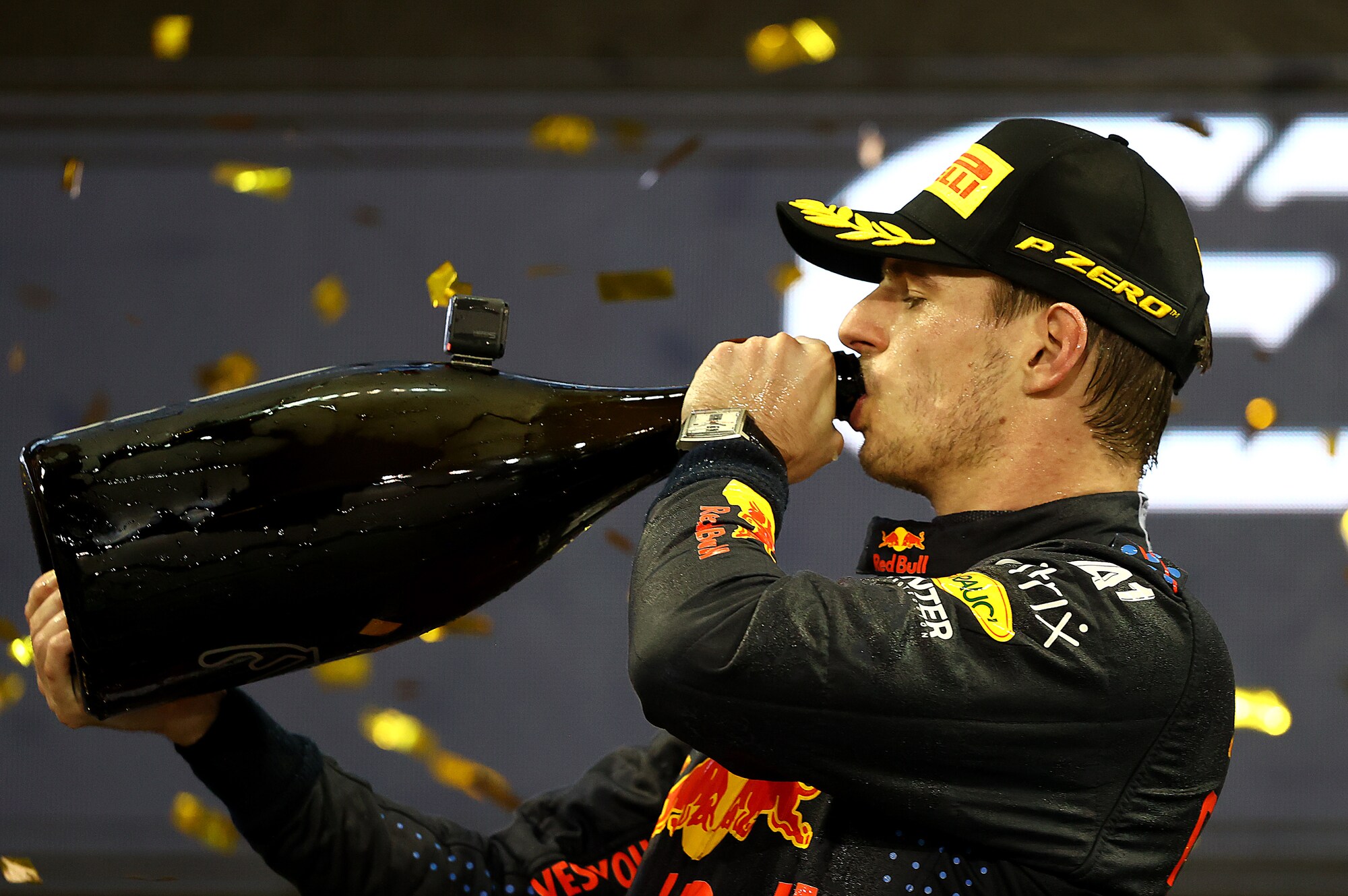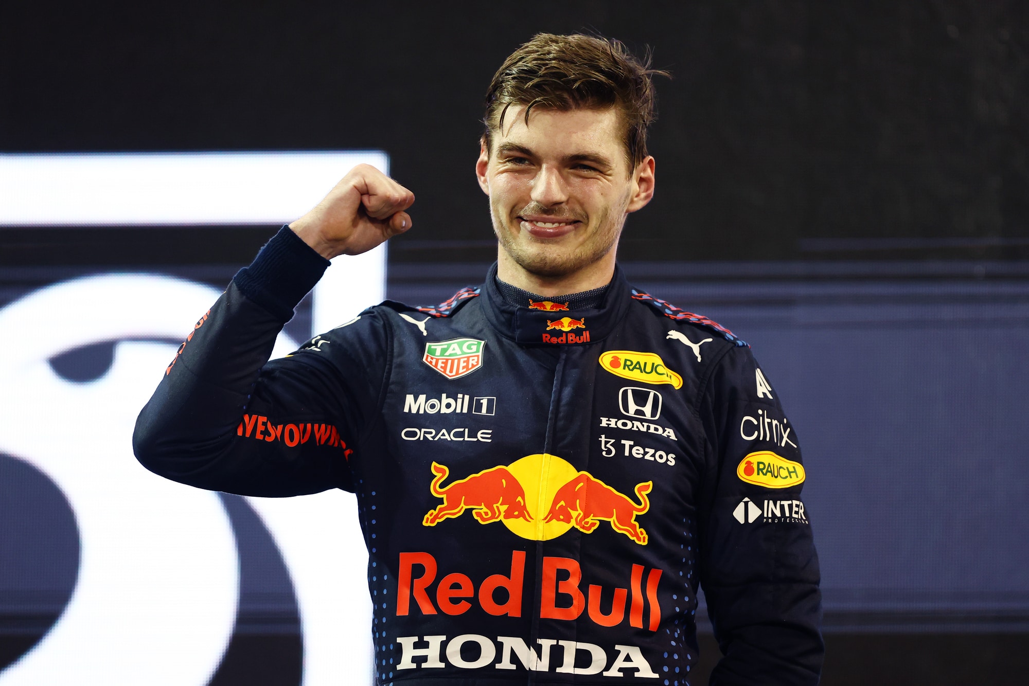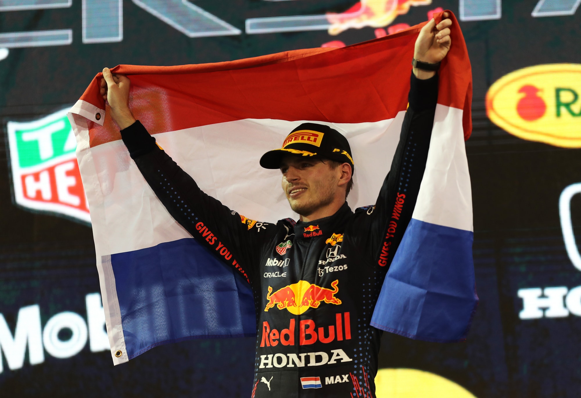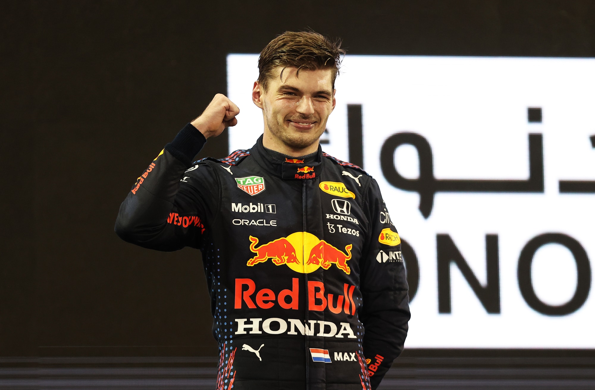 Battendo Lewis Hamilton all'ultimo giro del GP di Abu Dhabi, l'olandese vince il suo primo titolo iridato in carriera. Sul podio assieme a Lewis e Sainz, terzo con la Ferrari, si è scatenato tra le lacrime col papà Jos, alle urla di gioia e infine bevendo lo champagne