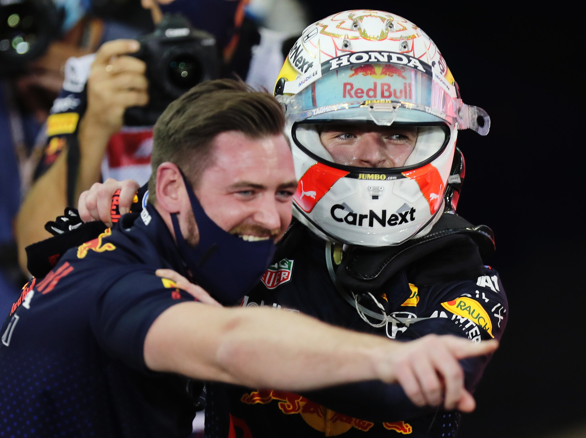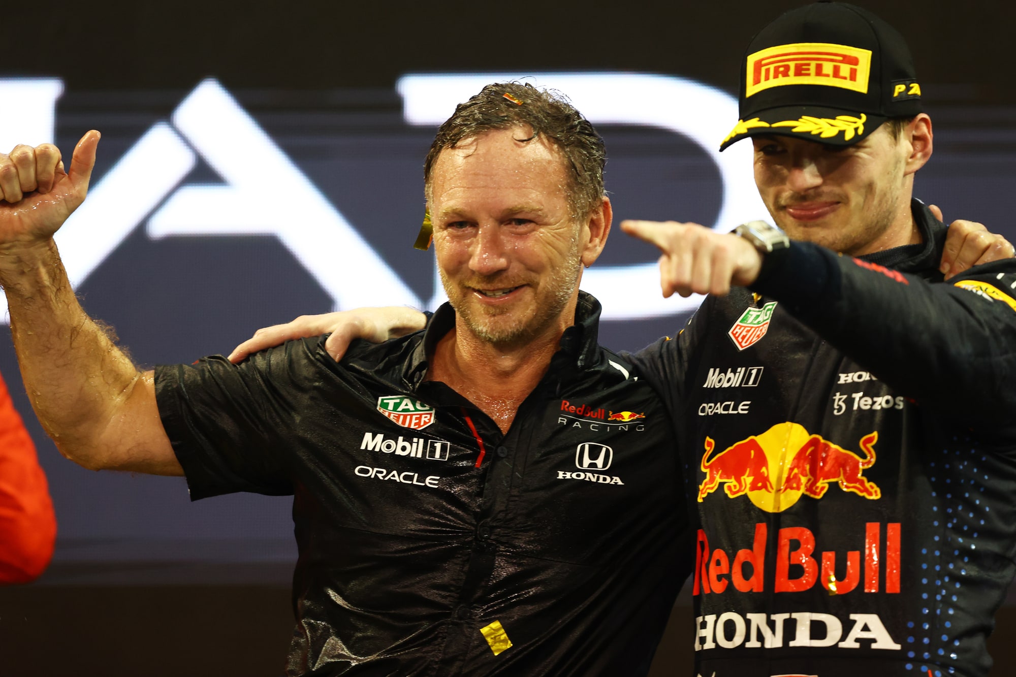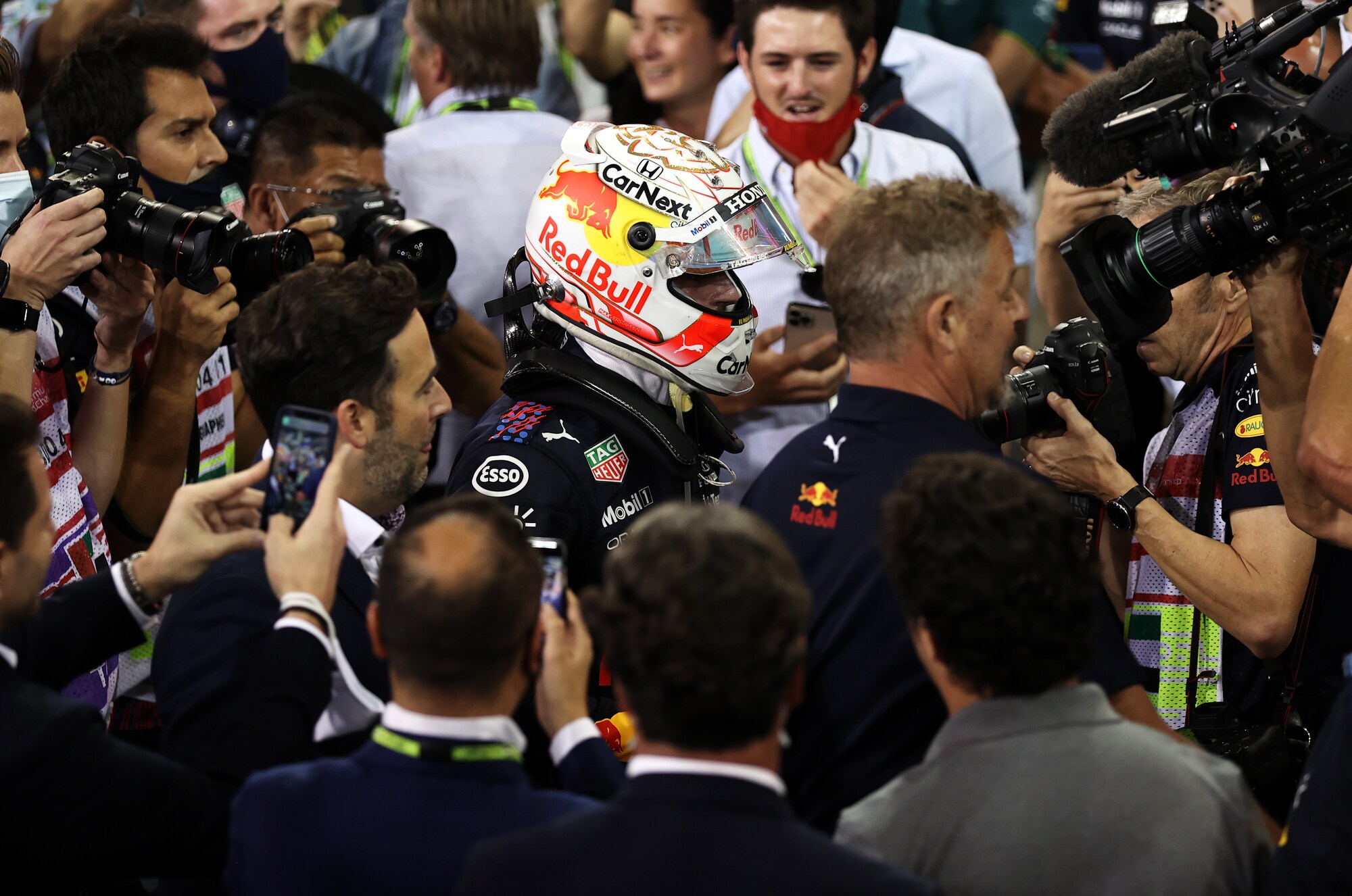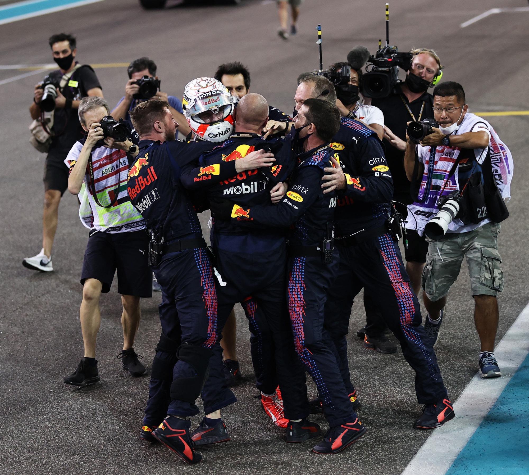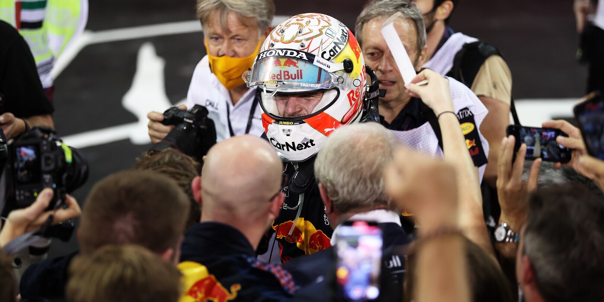 Battendo Lewis Hamilton all'ultimo giro del GP di Abu Dhabi, l'olandese vince il suo primo titolo iridato in carriera. Sul podio assieme a Lewis e Sainz, terzo con la Ferrari, si è scatenato tra le lacrime col papà Jos, alle urla di gioia e infine bevendo lo champagne