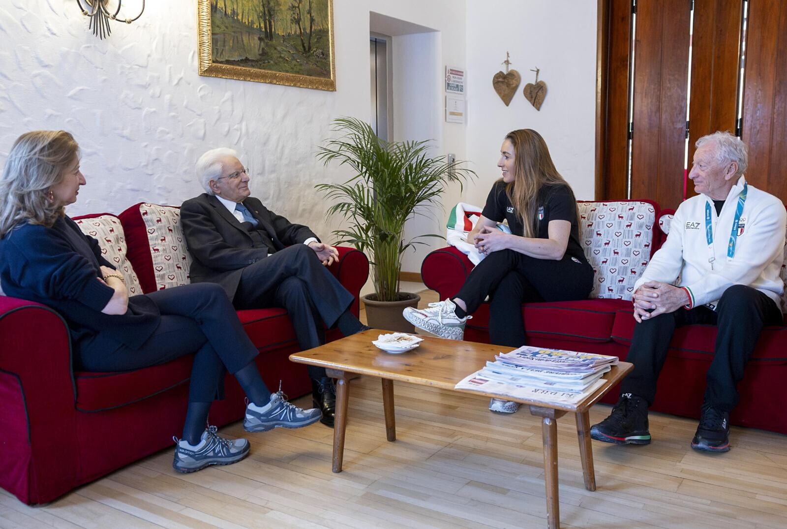 Ricevuto dal sindaco Lorenzi, il Presidente della Repubblica ha ricevuto la visita della sciatrice e del presidente del Coni Buonfiglio