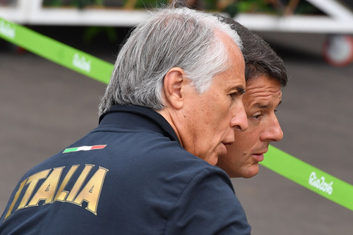 Cerimonia dell'alzabandiera azzurra a Rio de Janeiro con il presidente del Consiglio e il presidente del Coni Malagò
