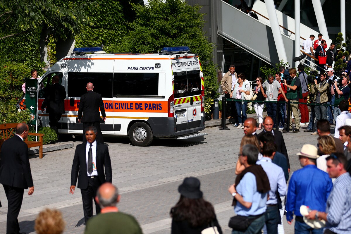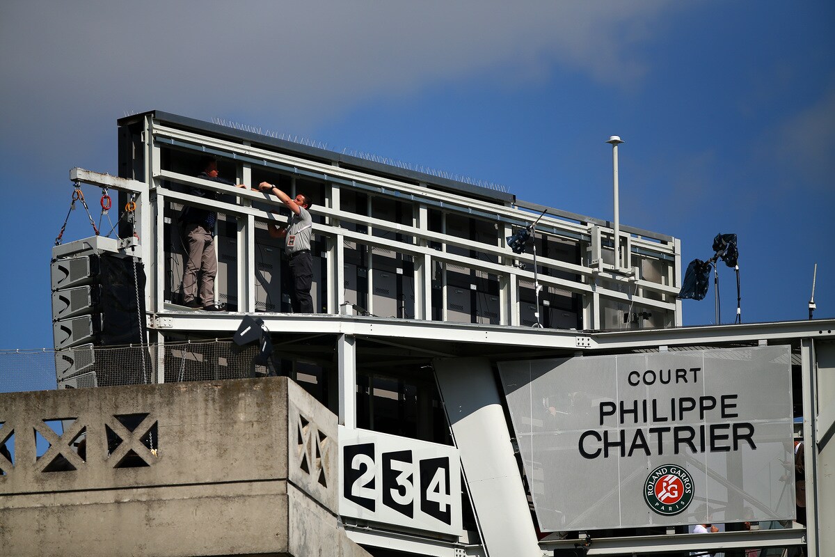 Le immagini del pannello precipitato sulla tribuna di Parigi durante il Roland Garros