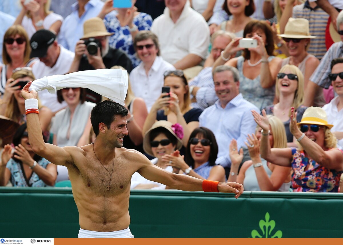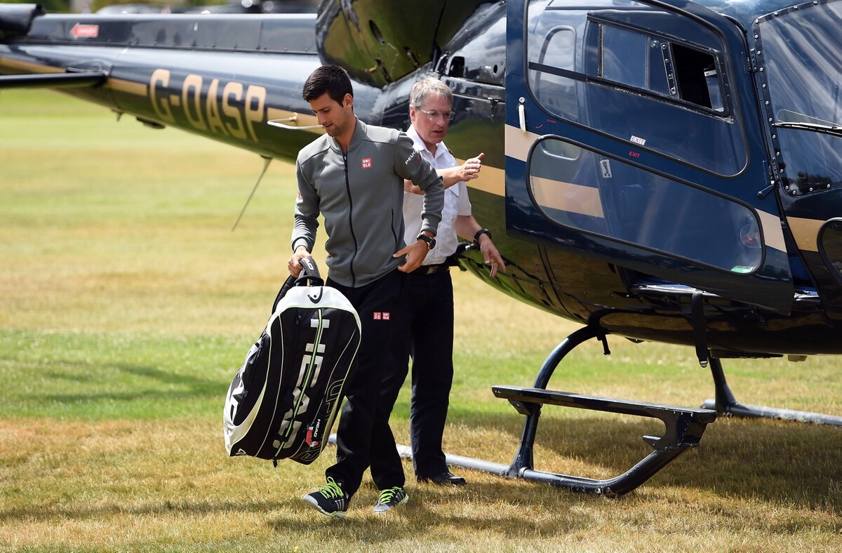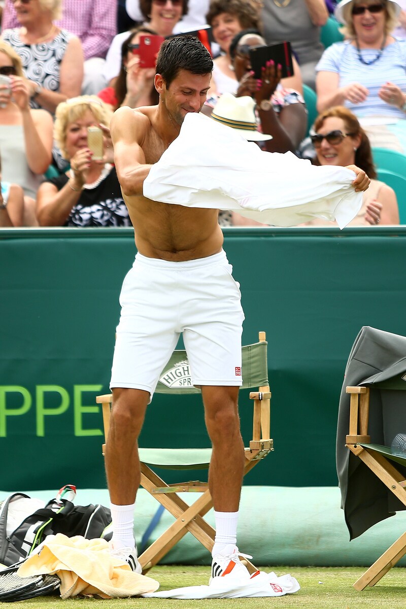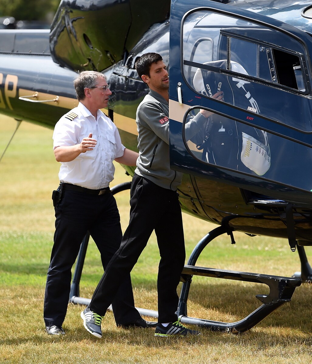 Il tennista serbo arriva in elicottero al Boodles Tennis Challenge, un torneo di esibizione che si svolge in Inghilterra. Durante il match concede al pubblico un piccolo "spogliarello", lancia la maglia ad una esuberante fan e poi la bacia sugli spalti