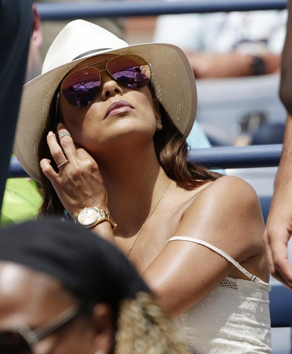 Le foto dell'attrice in tribuna al torneo di tennis per la sfida fra la Vinci e la Williams