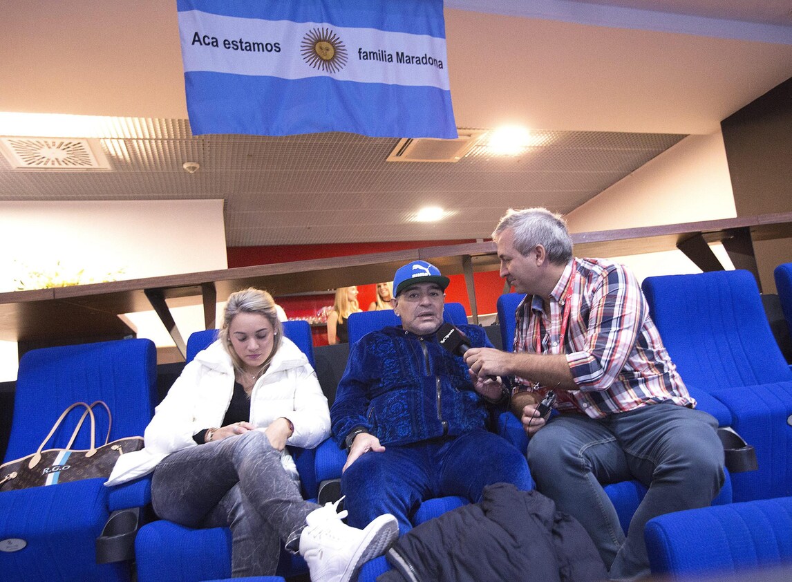 Il Pibe de Oro in tribuna a Zagabria per il match che ha aperto la finale di Coppa Davis vinto in cinque set dal croato Marin Cilic. Insieme all'ex numero 10 del Napoli anche la compagna Rocio Oliva