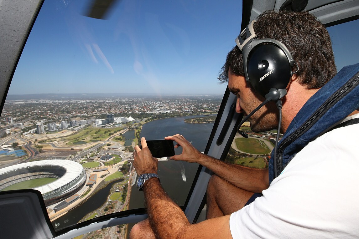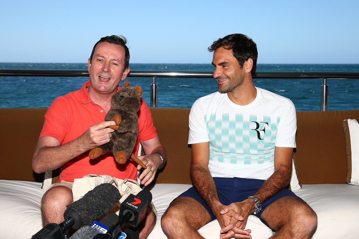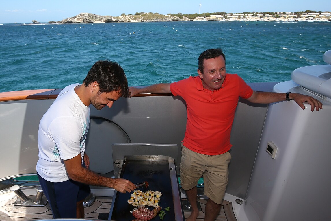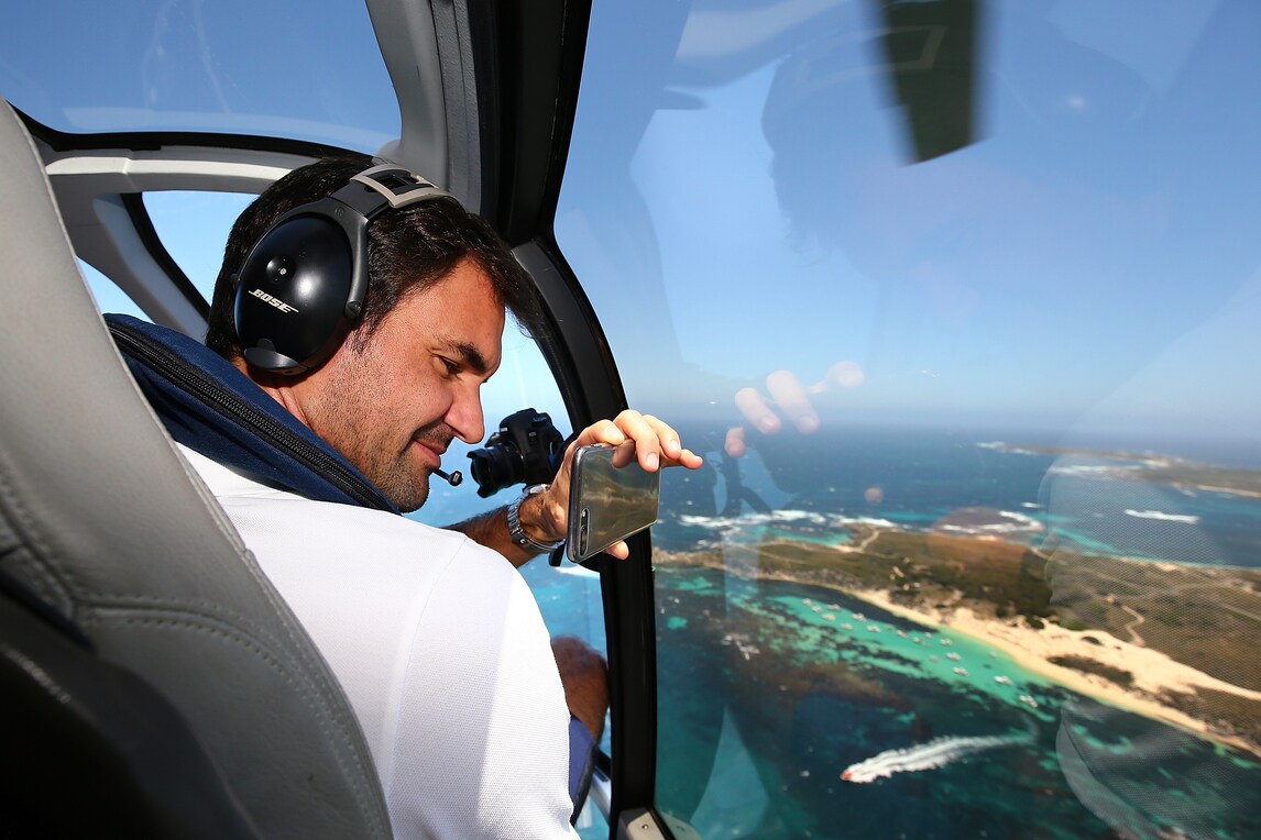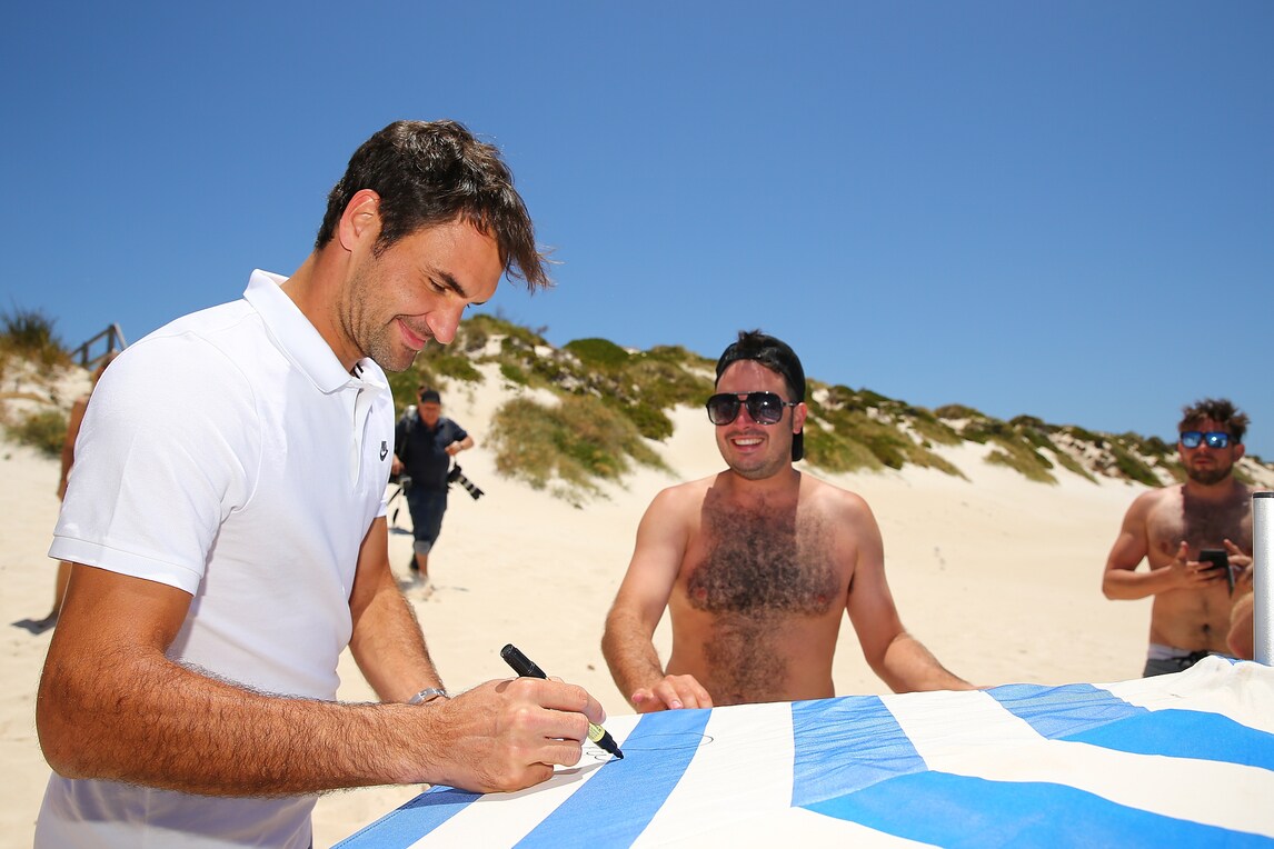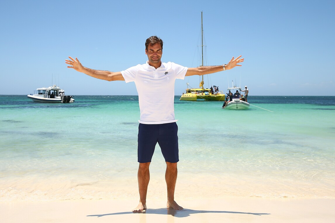 Il tennista svizzero non rinuncia alla spiaggia di Rottnest Island (Australia), una volta atterrato in elicottero firma autografi ai fan sopresi del suo arrivo, prima di partecipare alla Hopman Cup. Ad accoglierlo il Premier australiano Mark McGowan