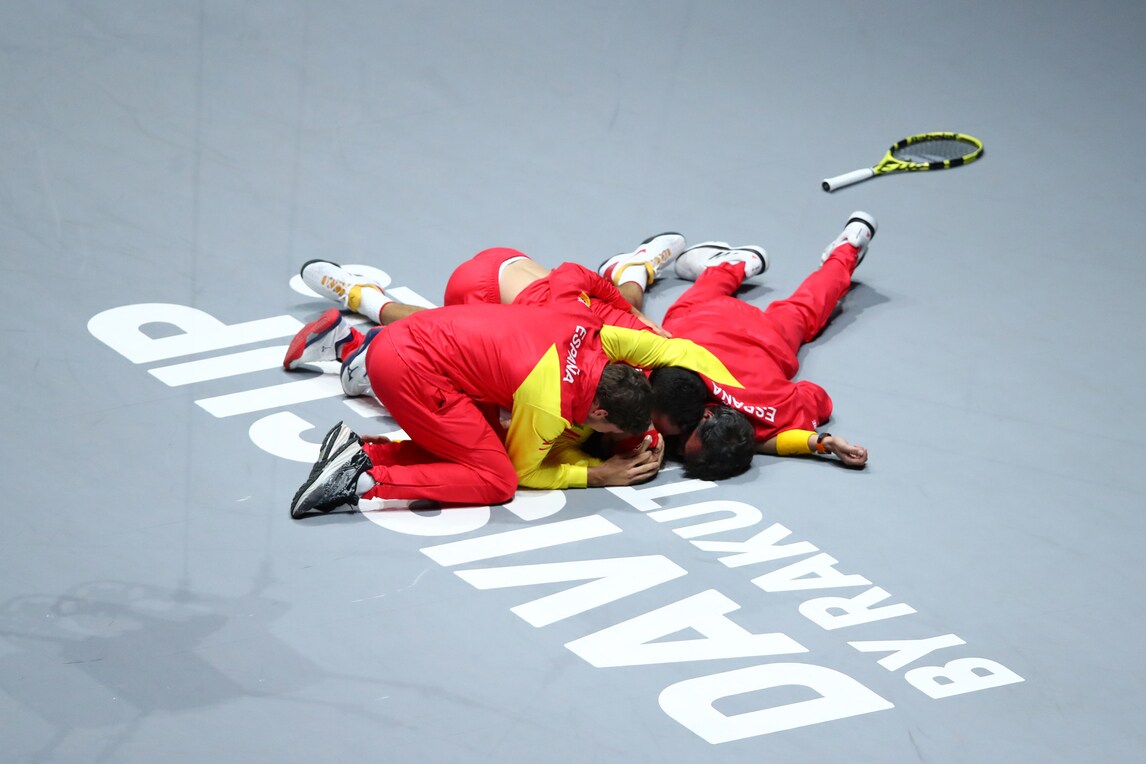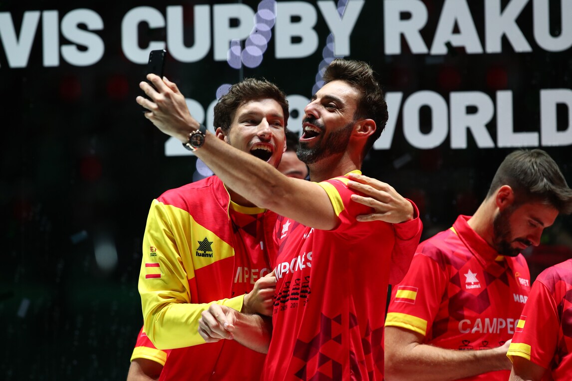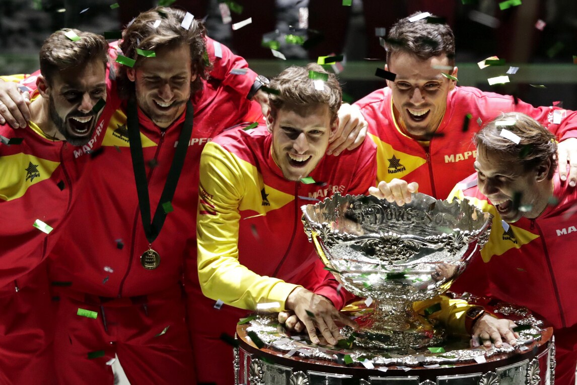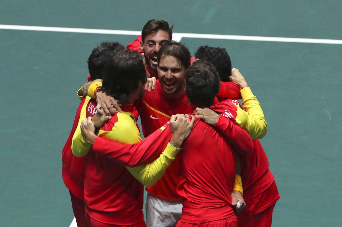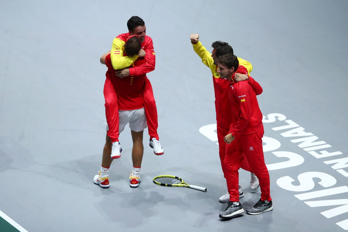 La gioia dei tennisti iberici a Madrid dopo la vittoria nella finale contro il Canada