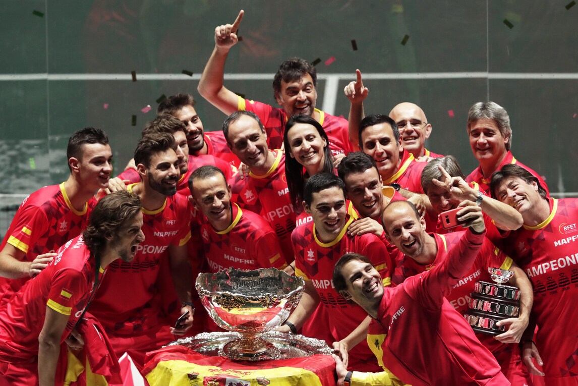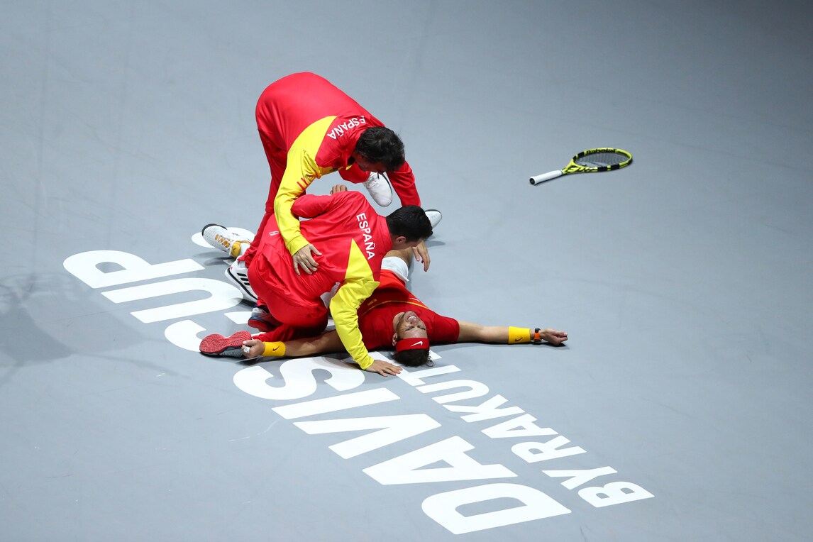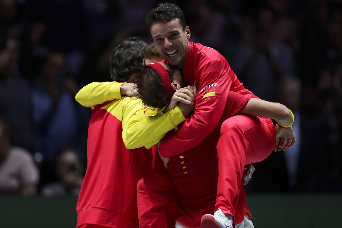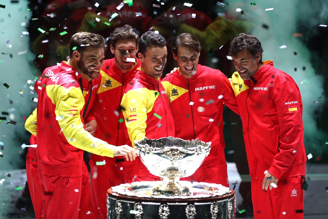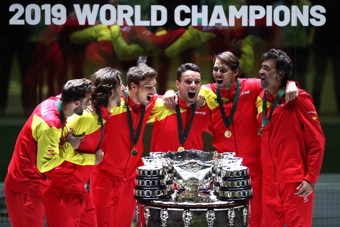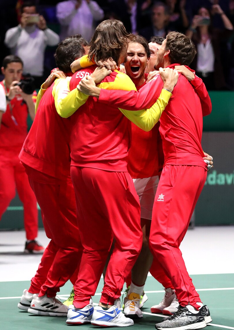 La gioia dei tennisti iberici a Madrid dopo la vittoria nella finale contro il Canada