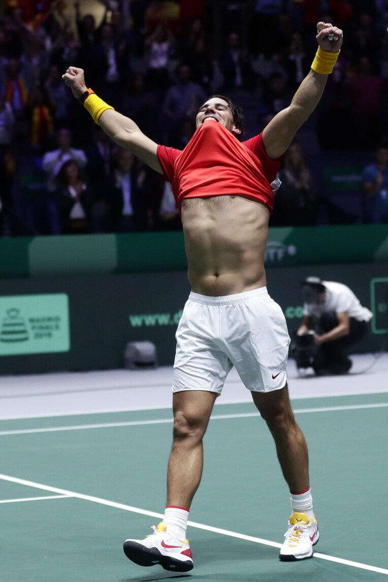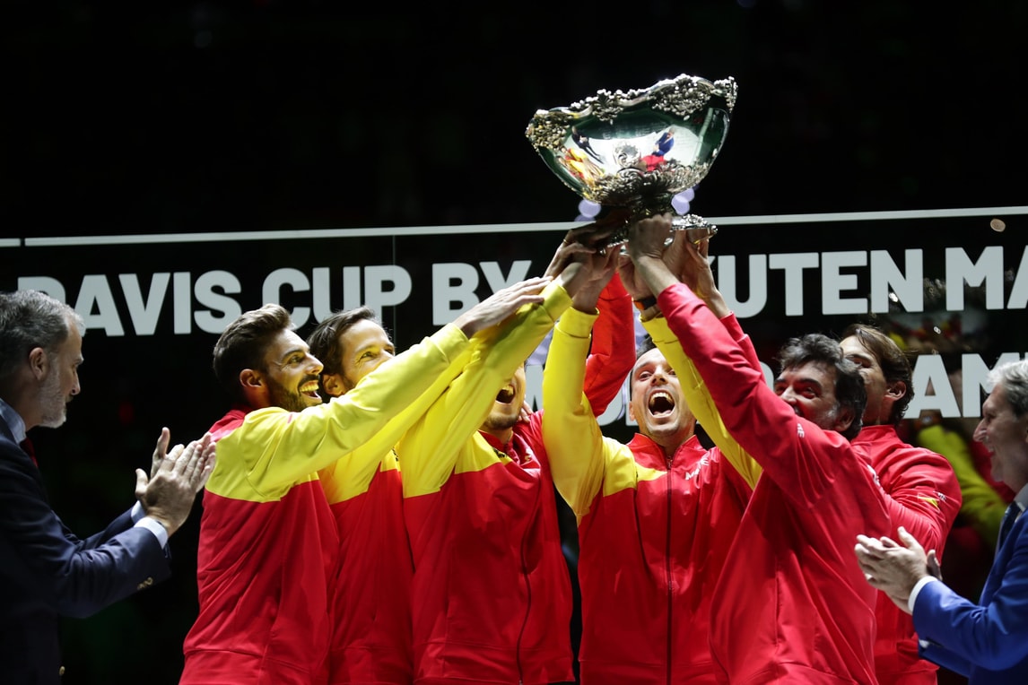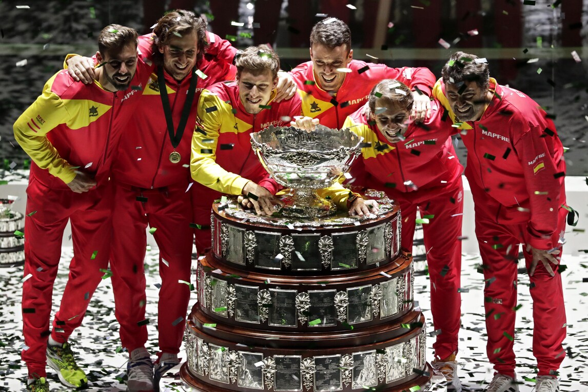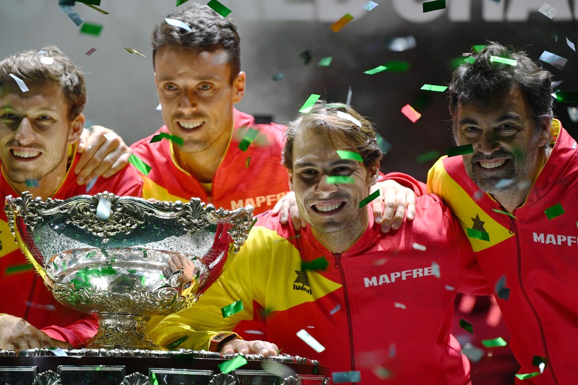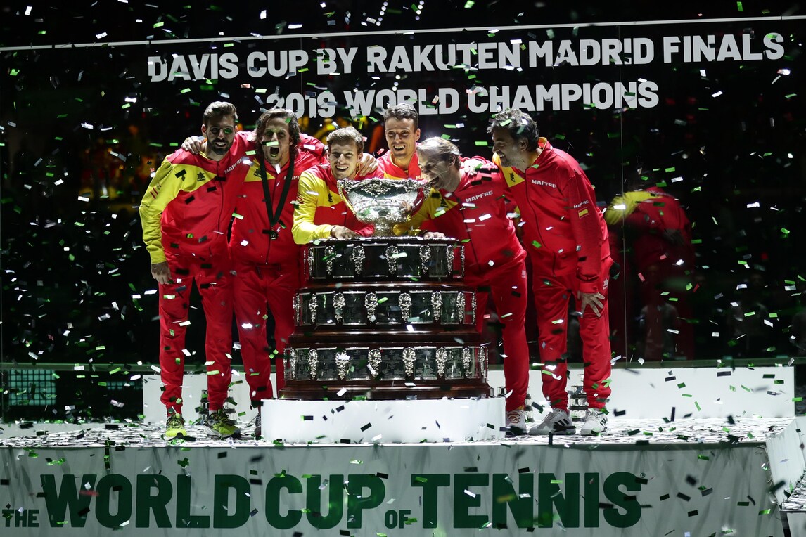 La gioia dei tennisti iberici a Madrid dopo la vittoria nella finale contro il Canada