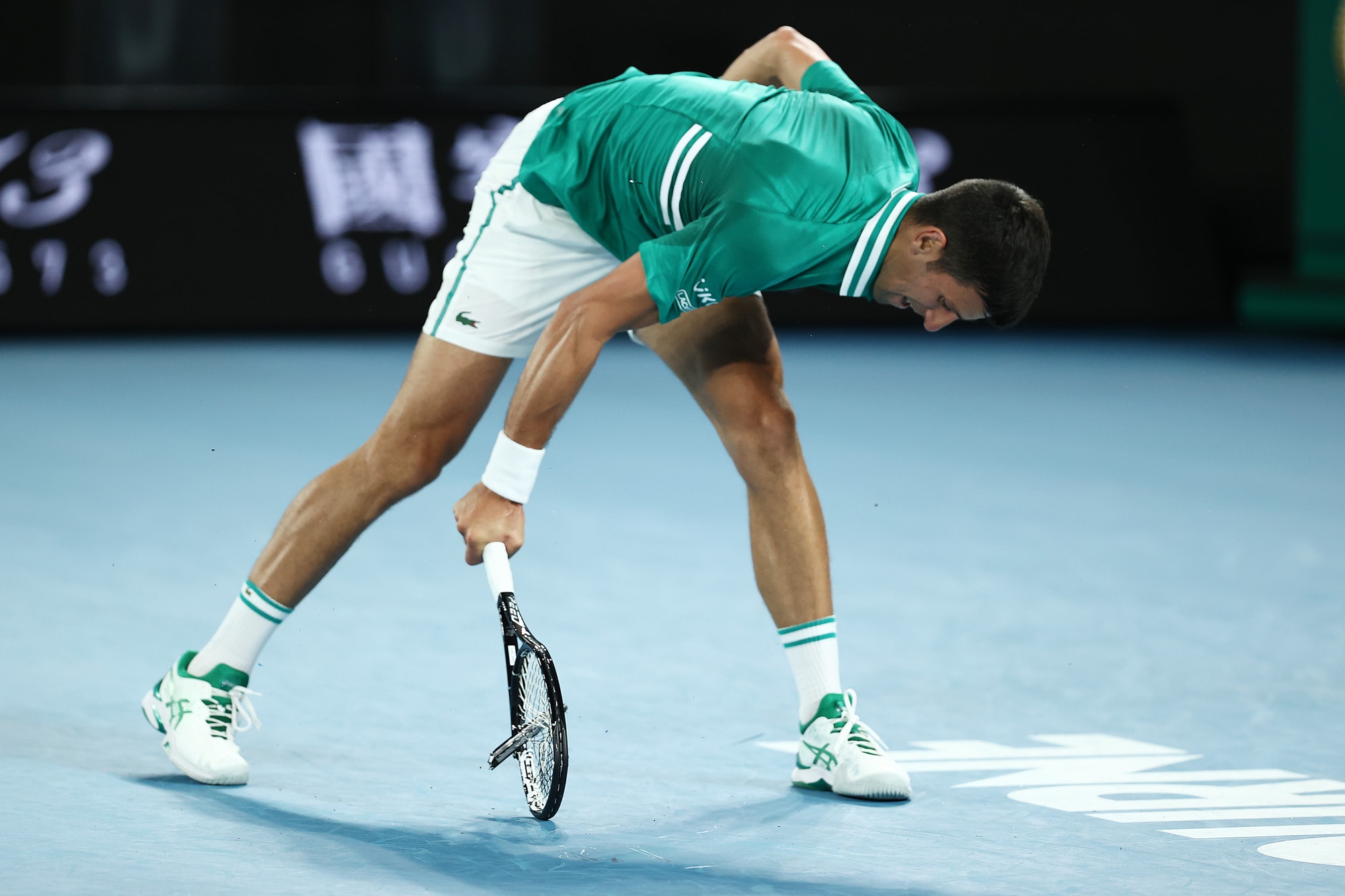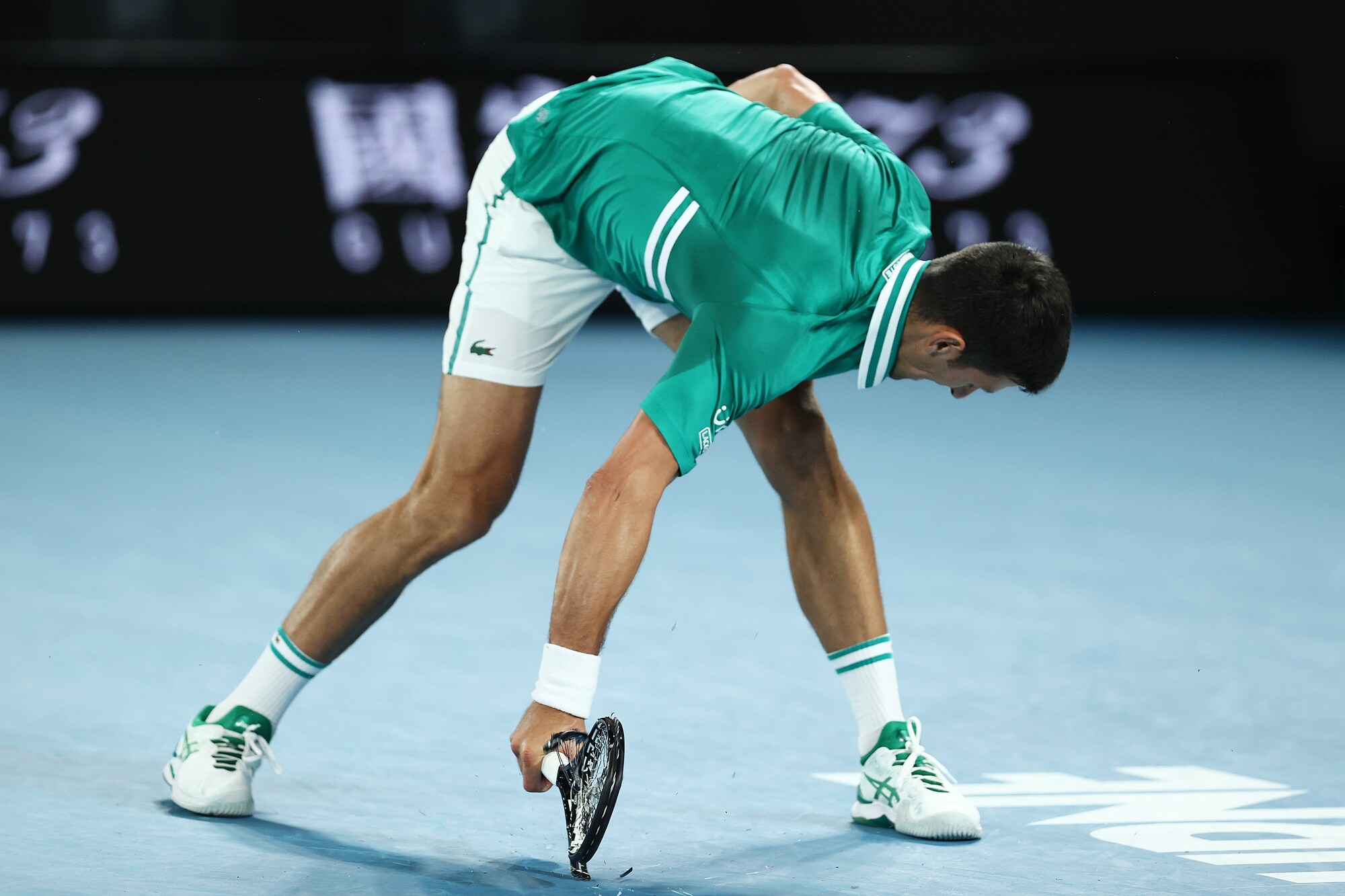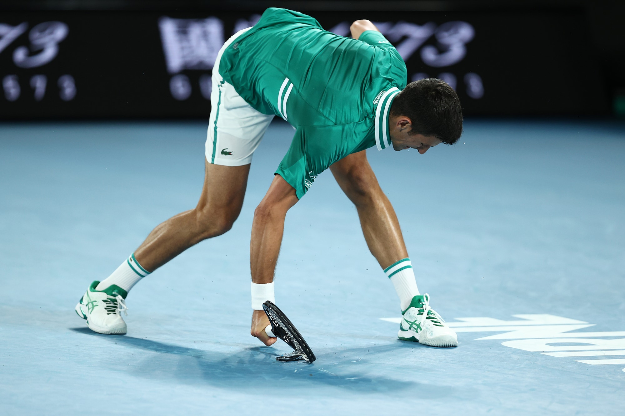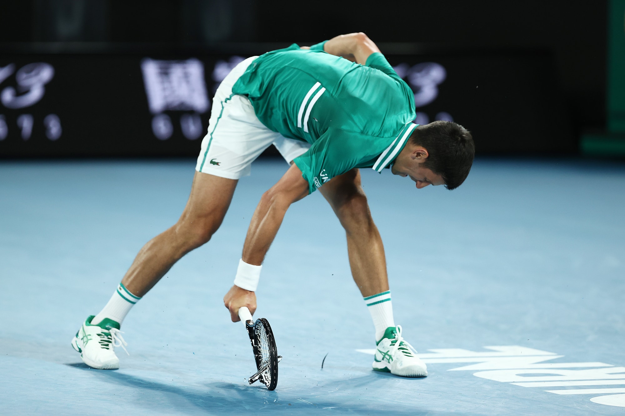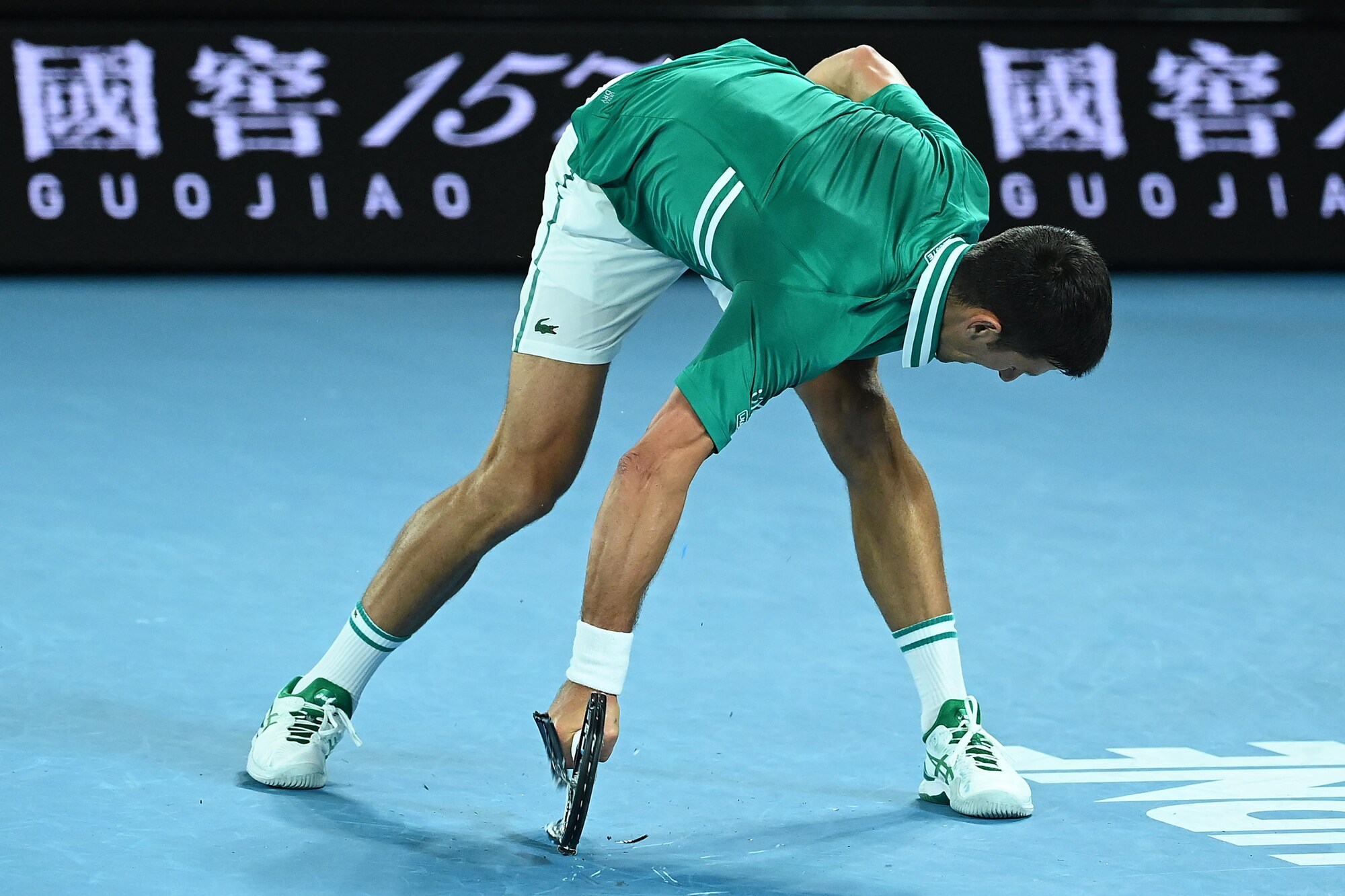 Djokovic nervoso contro Zverev: racchetta spaccata
