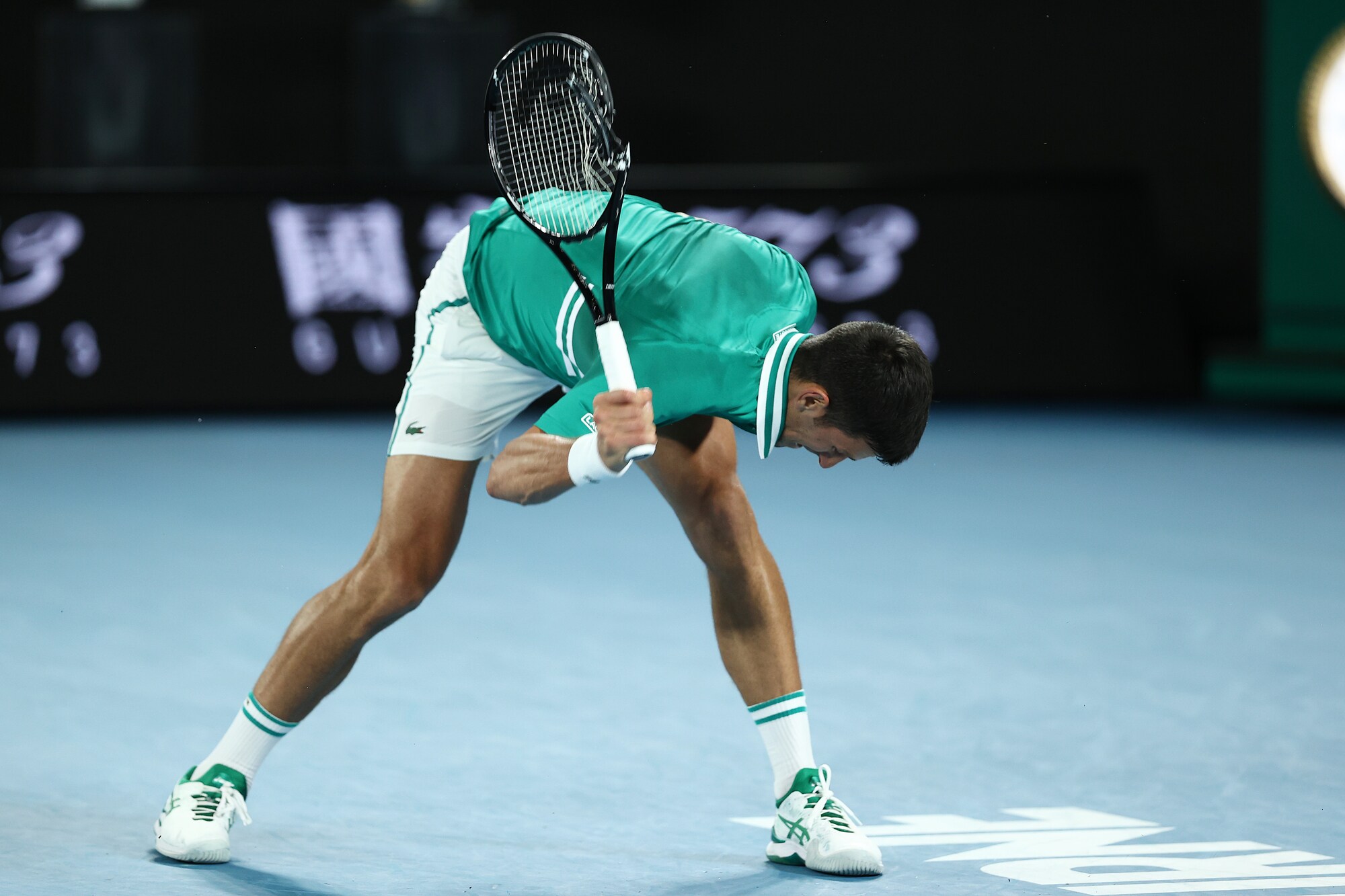 Gesto di frustrazione per il serbo durante la partita agli Australian Open contro il tedesco