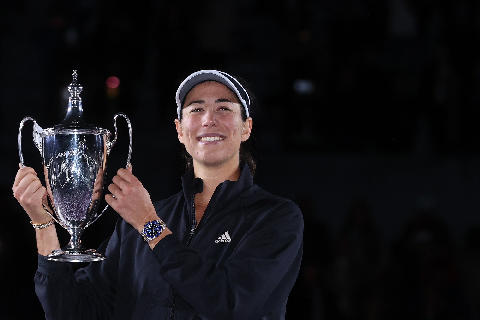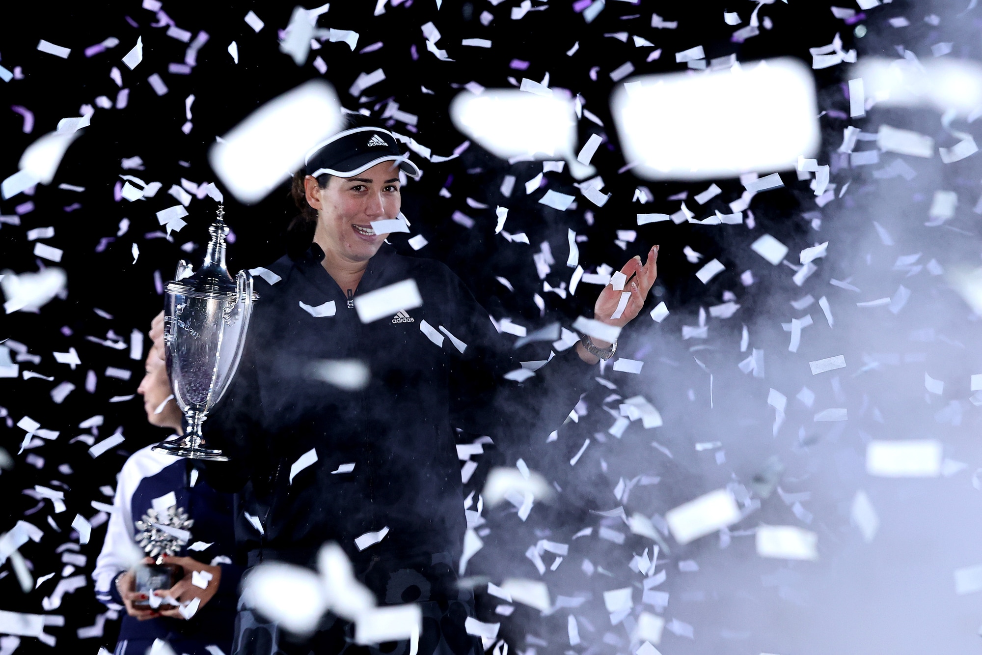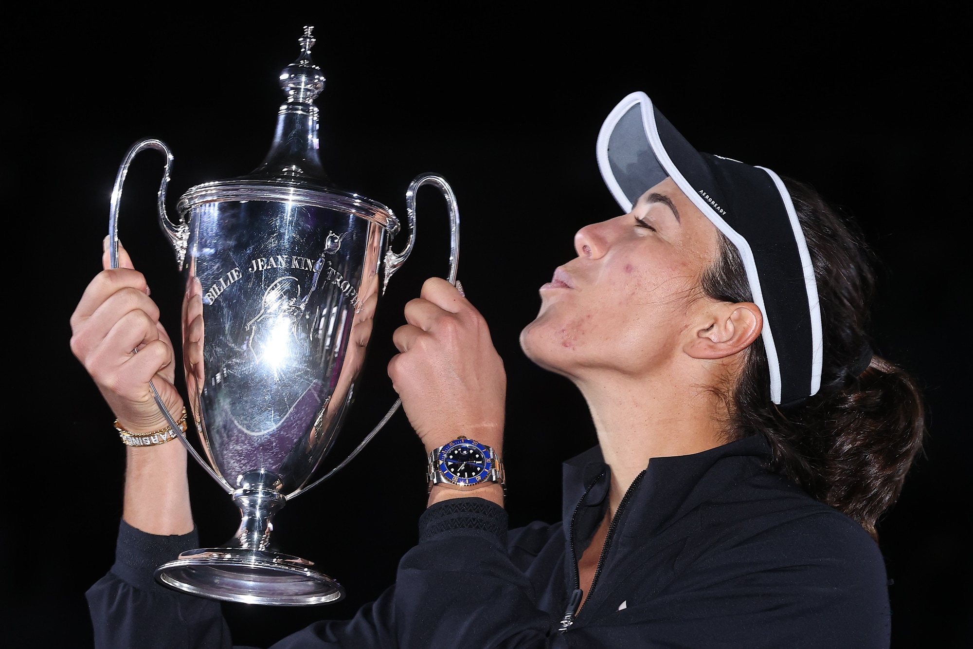 Garbine Muguruza posa con la coppa delle Wta Finals