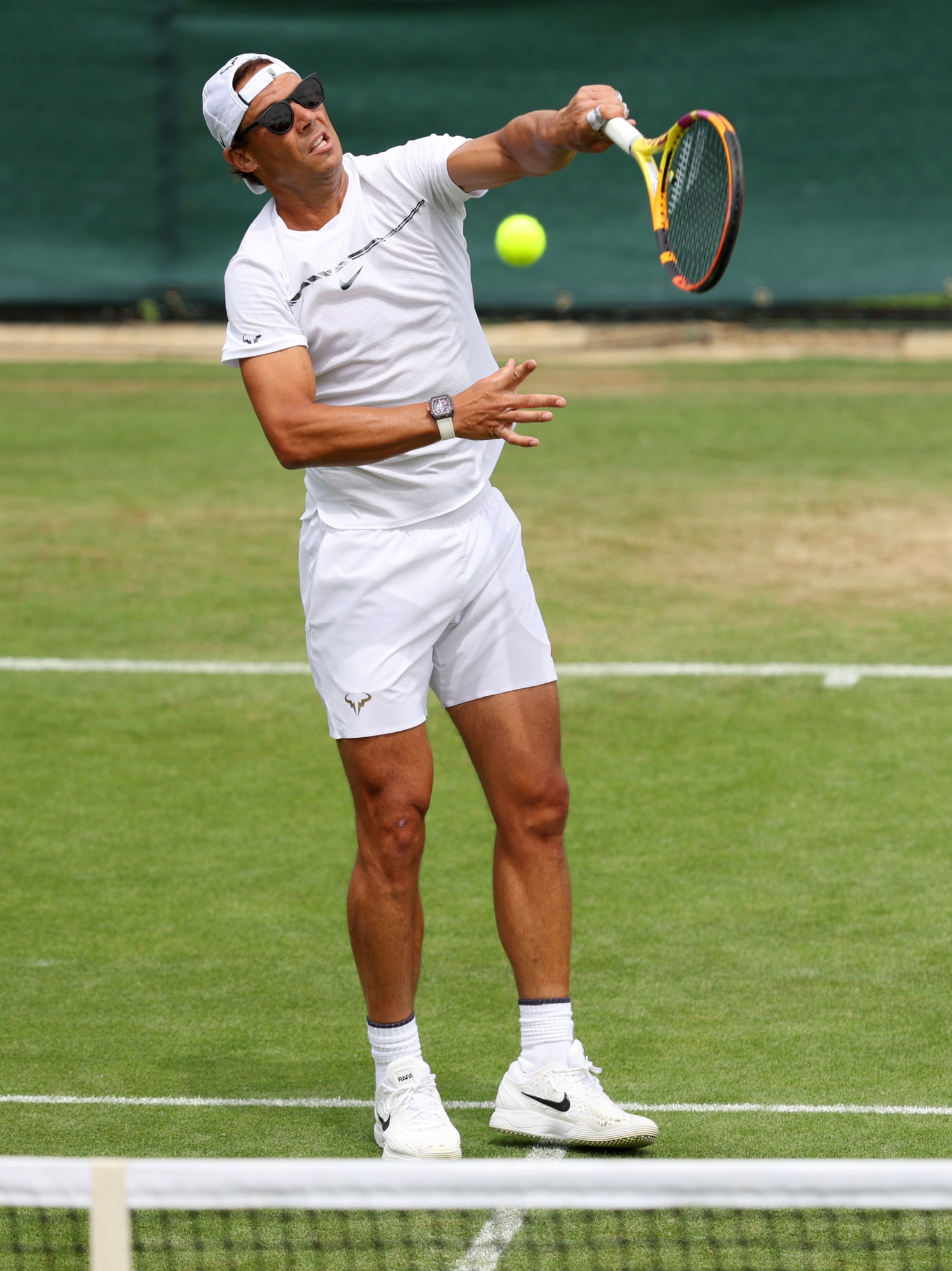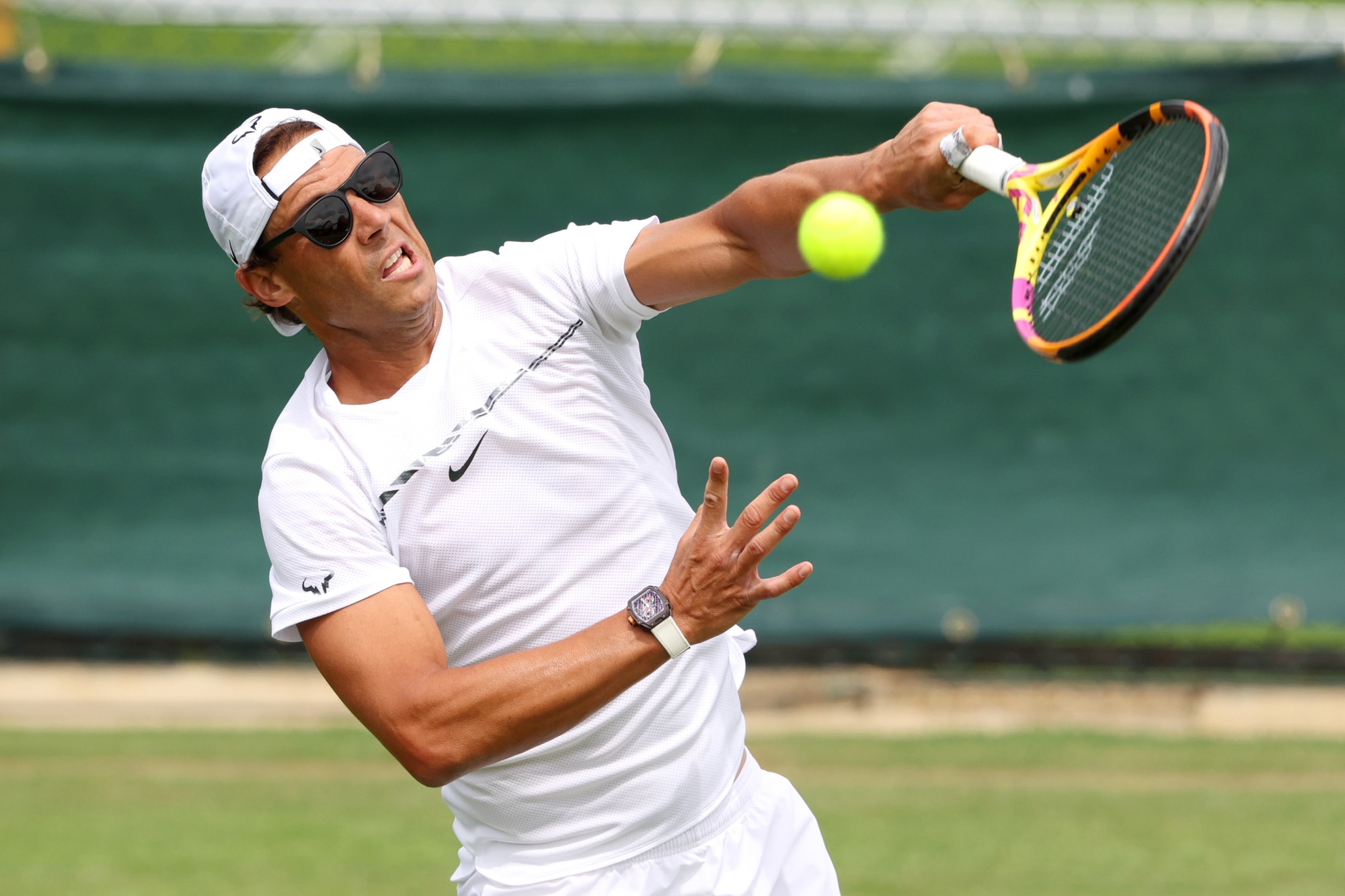 Nadal, allenamento con gli occhiali da sole a Wimbledon