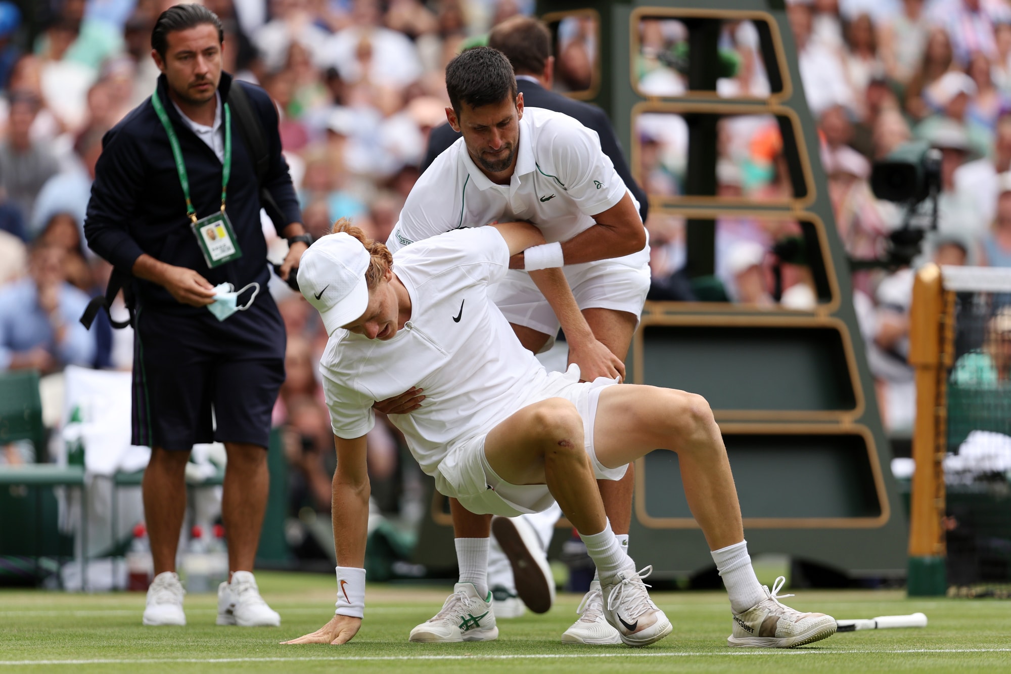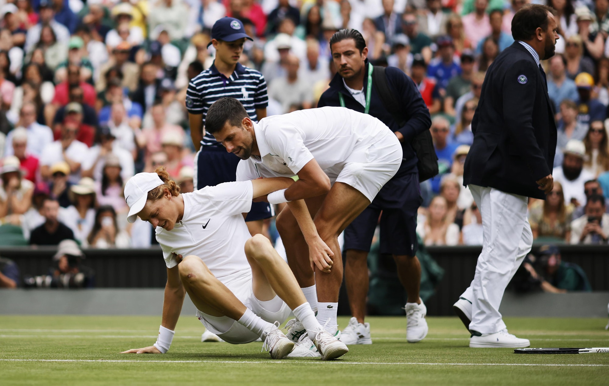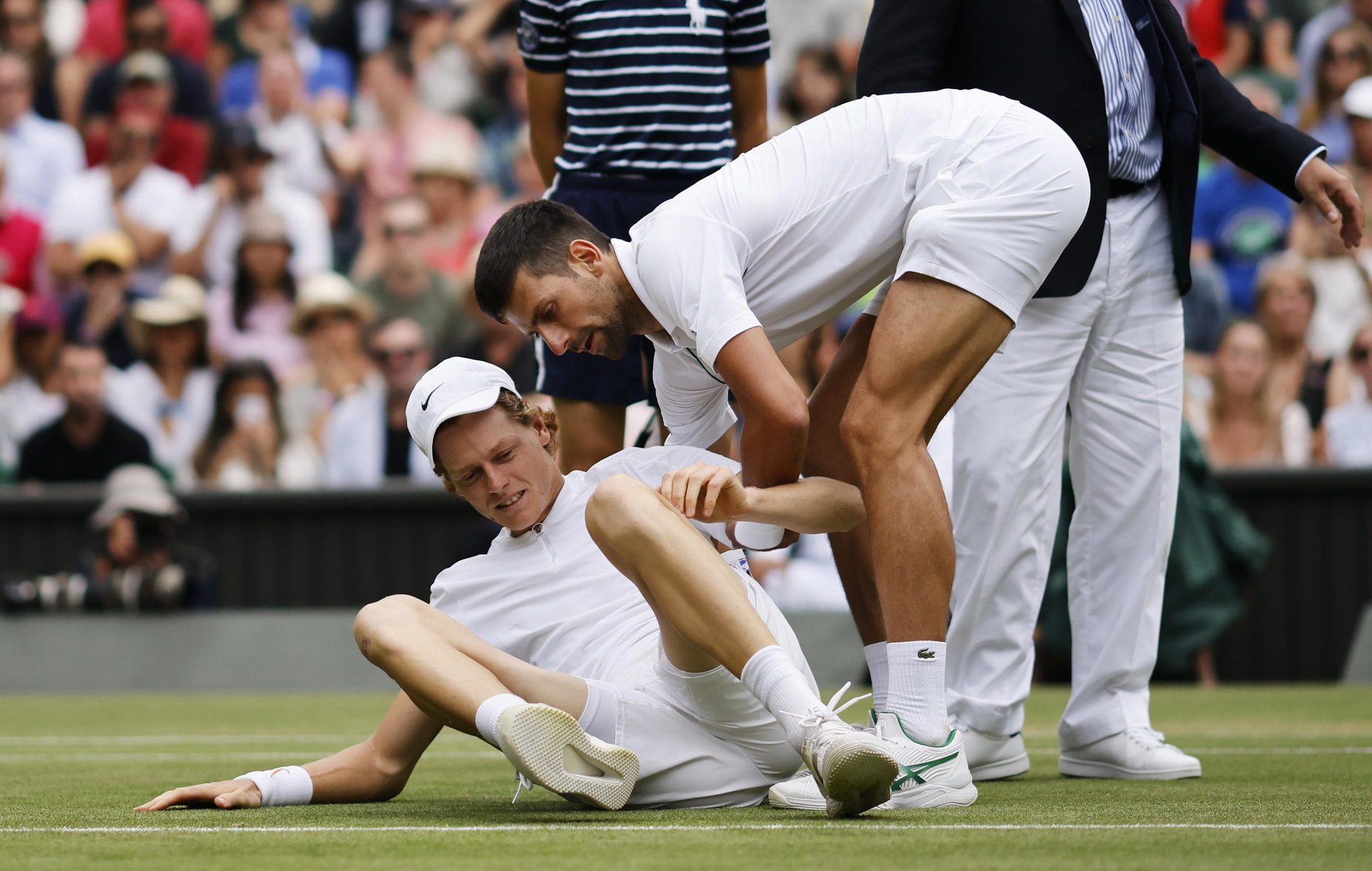 Sinner cade e si fa male, Djokovic lo aiuta: Wimbledon applaude