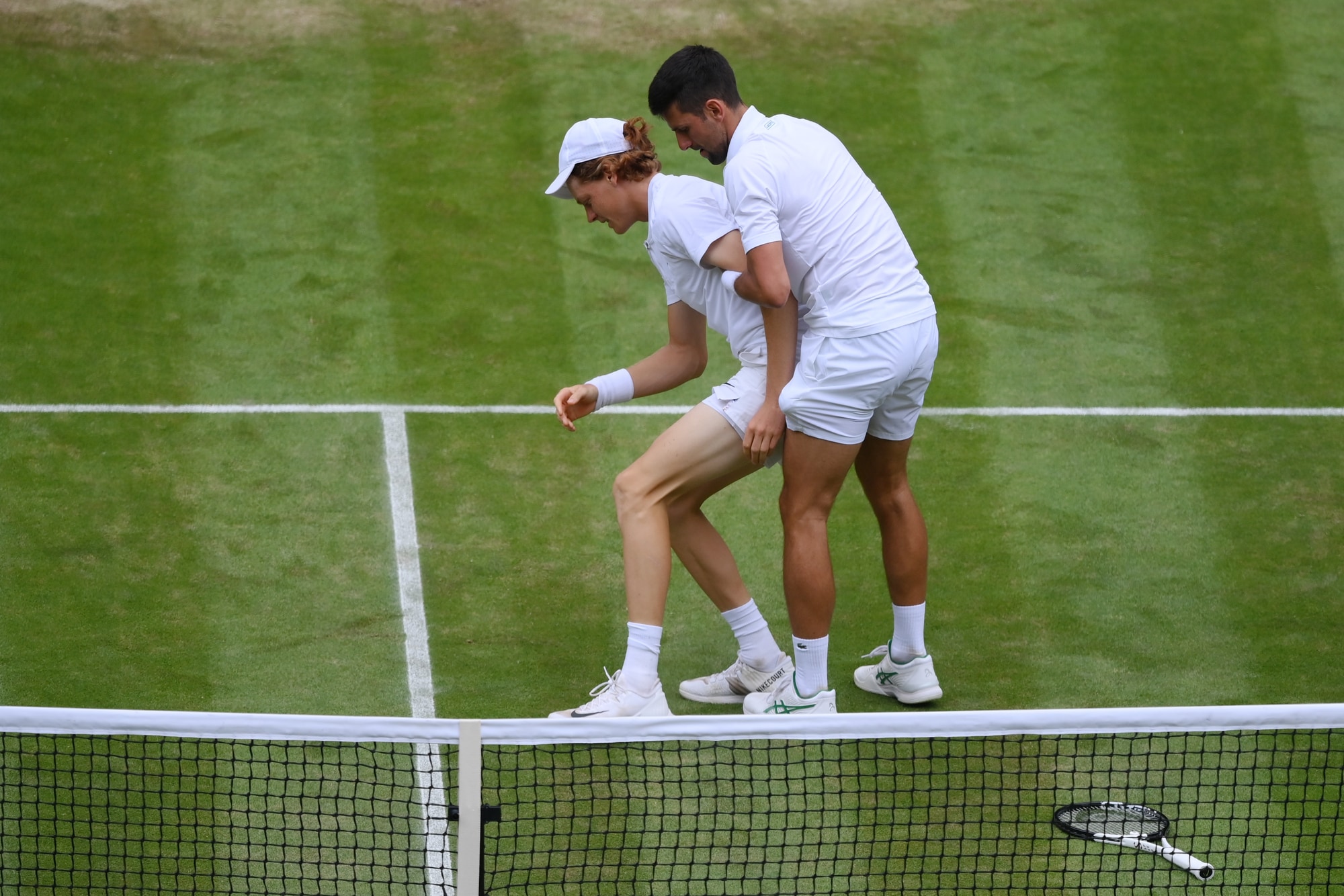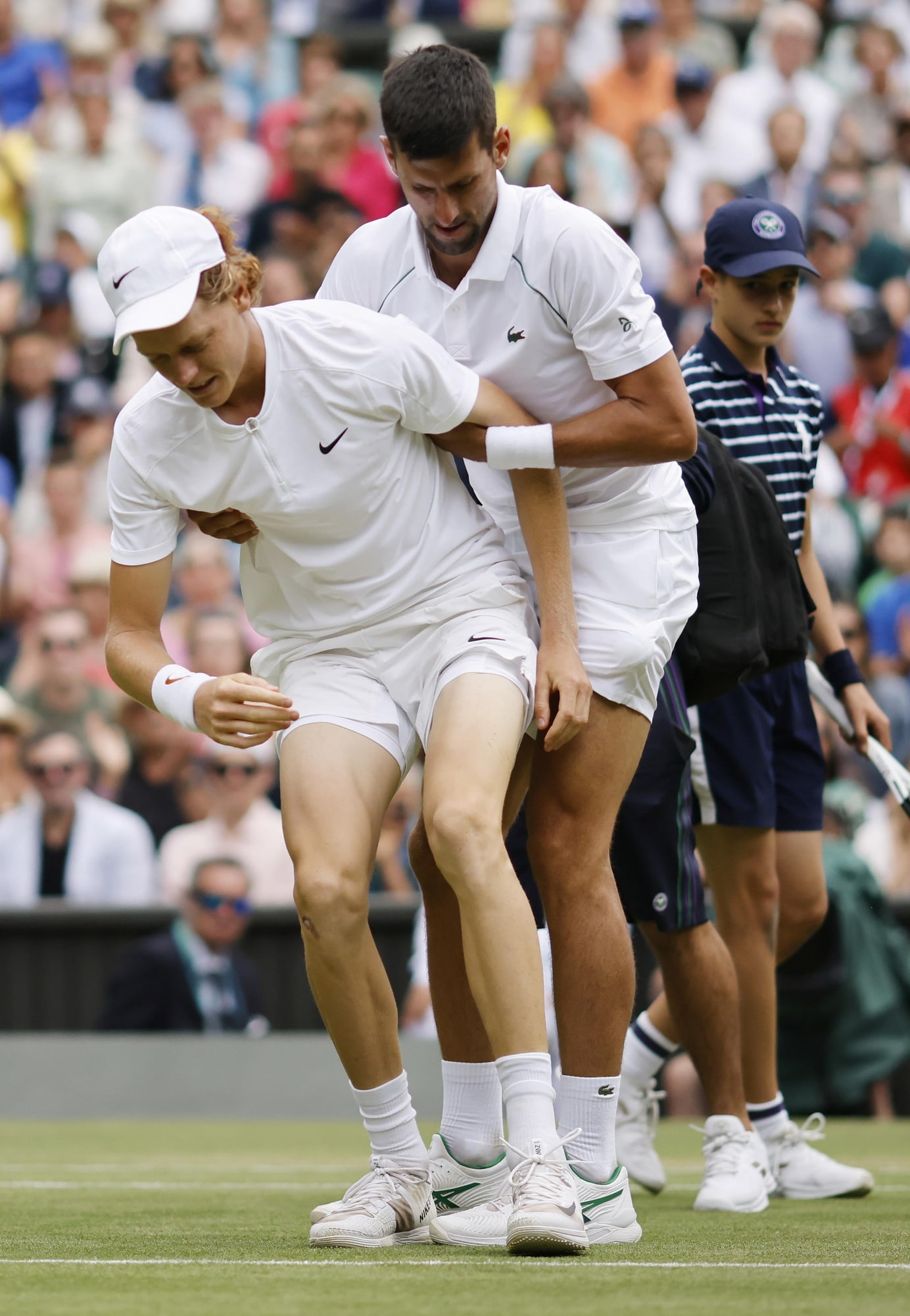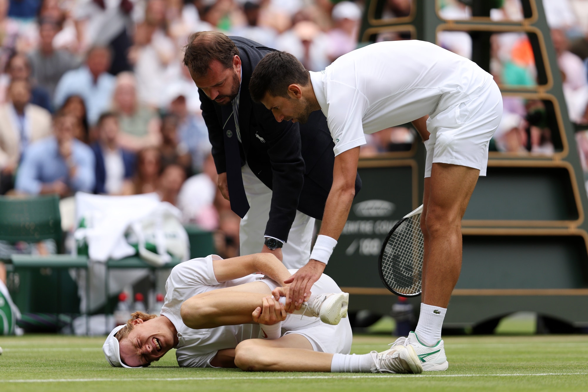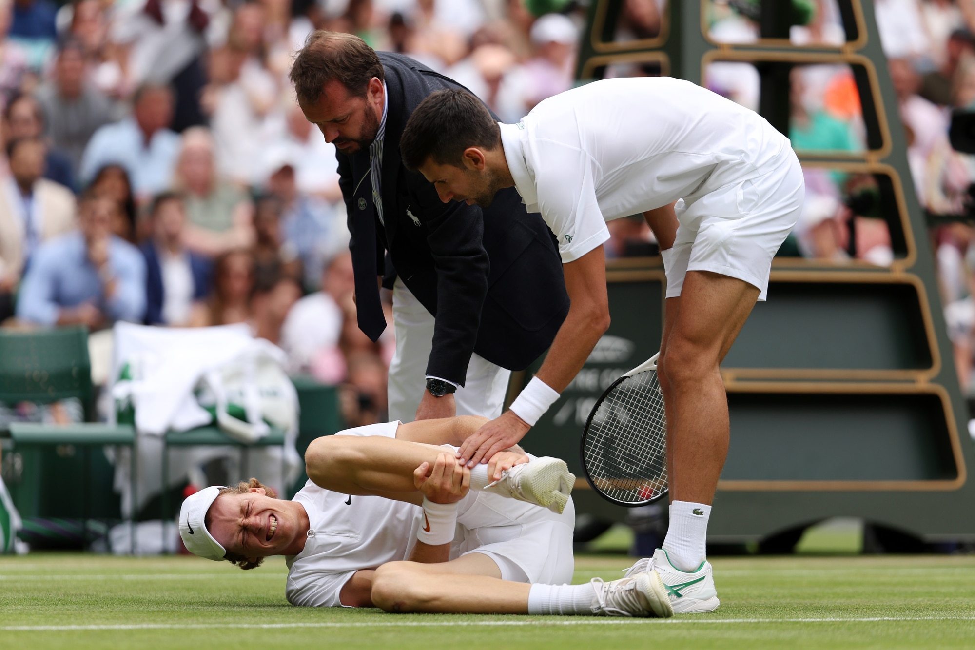 Sinner cade e si fa male, Djokovic lo aiuta: Wimbledon applaude