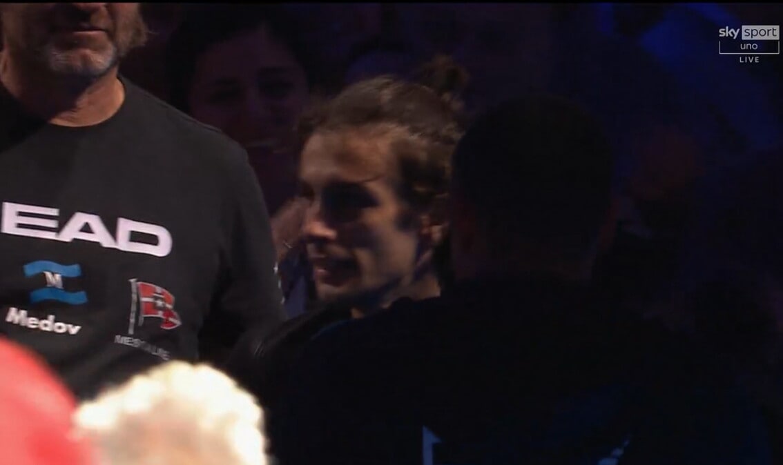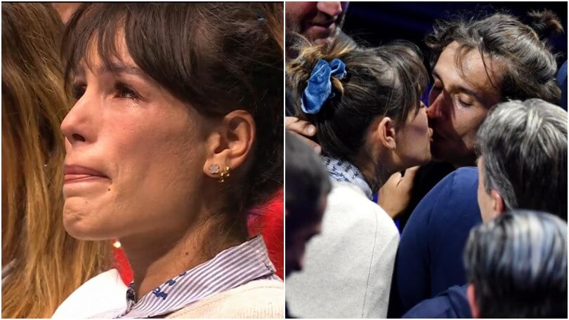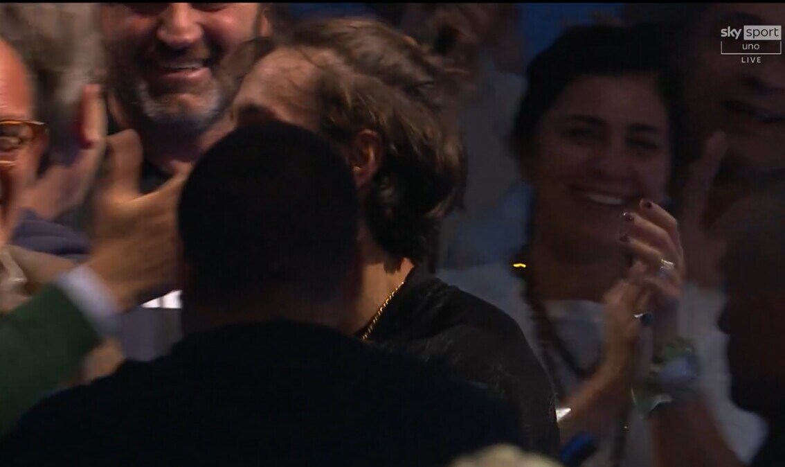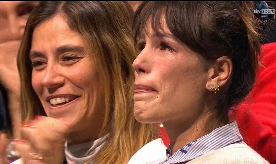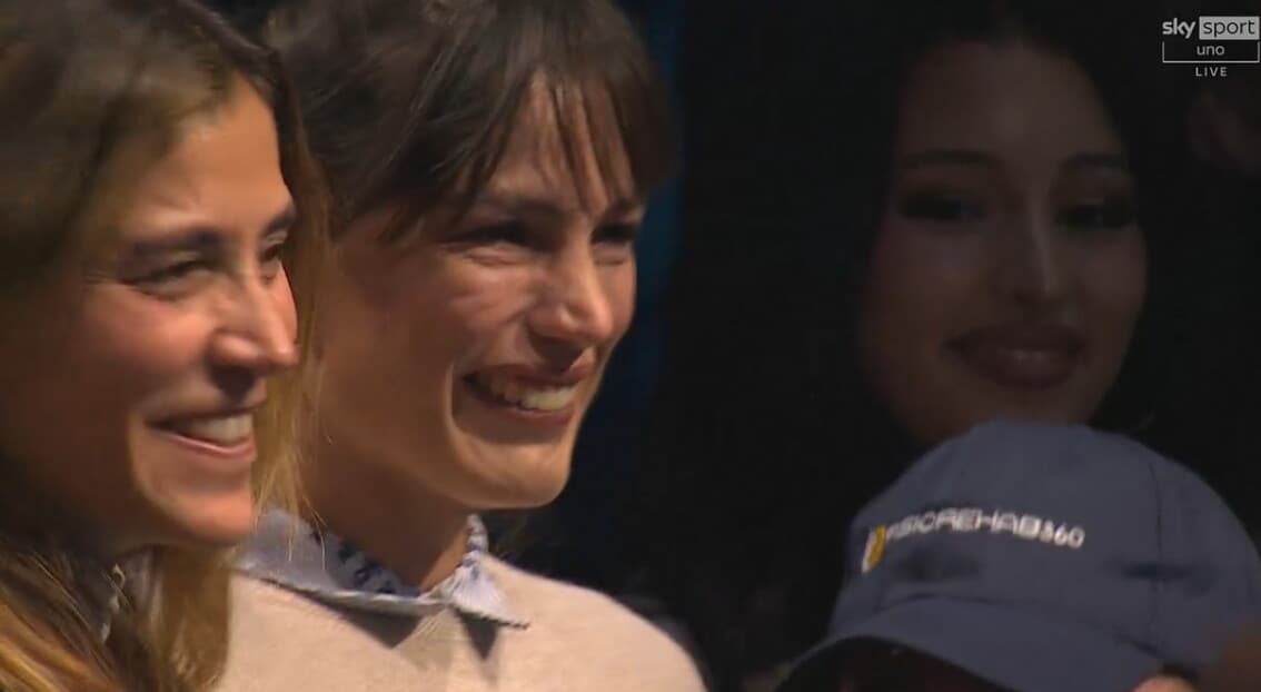 La compagna del tennista, con il quale ha un figlio e un altro in arrivo, si emoziona dopo la vittoria dell'azzurro contro De Minaur a Torino alle Atp Finals