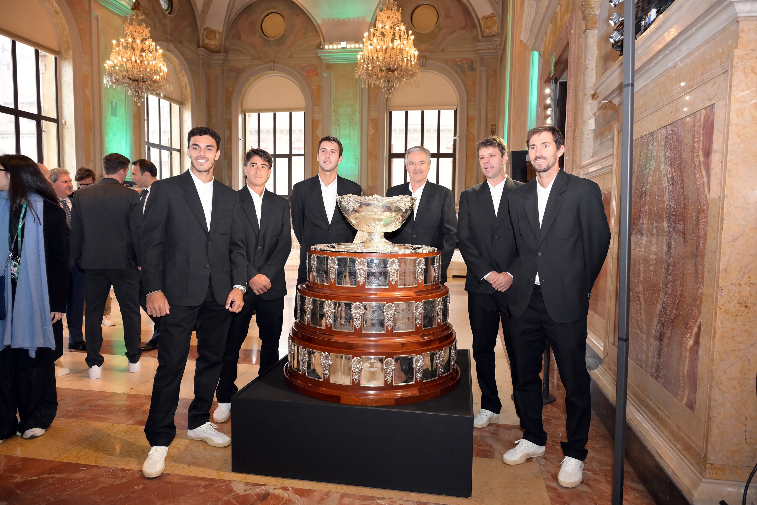 La nazionale azzurra pronta a difendere l'insalatiera dall'assalto di Spagna e Francia senza Sinner e Musetti. Ecco tutte le foto della presentazione