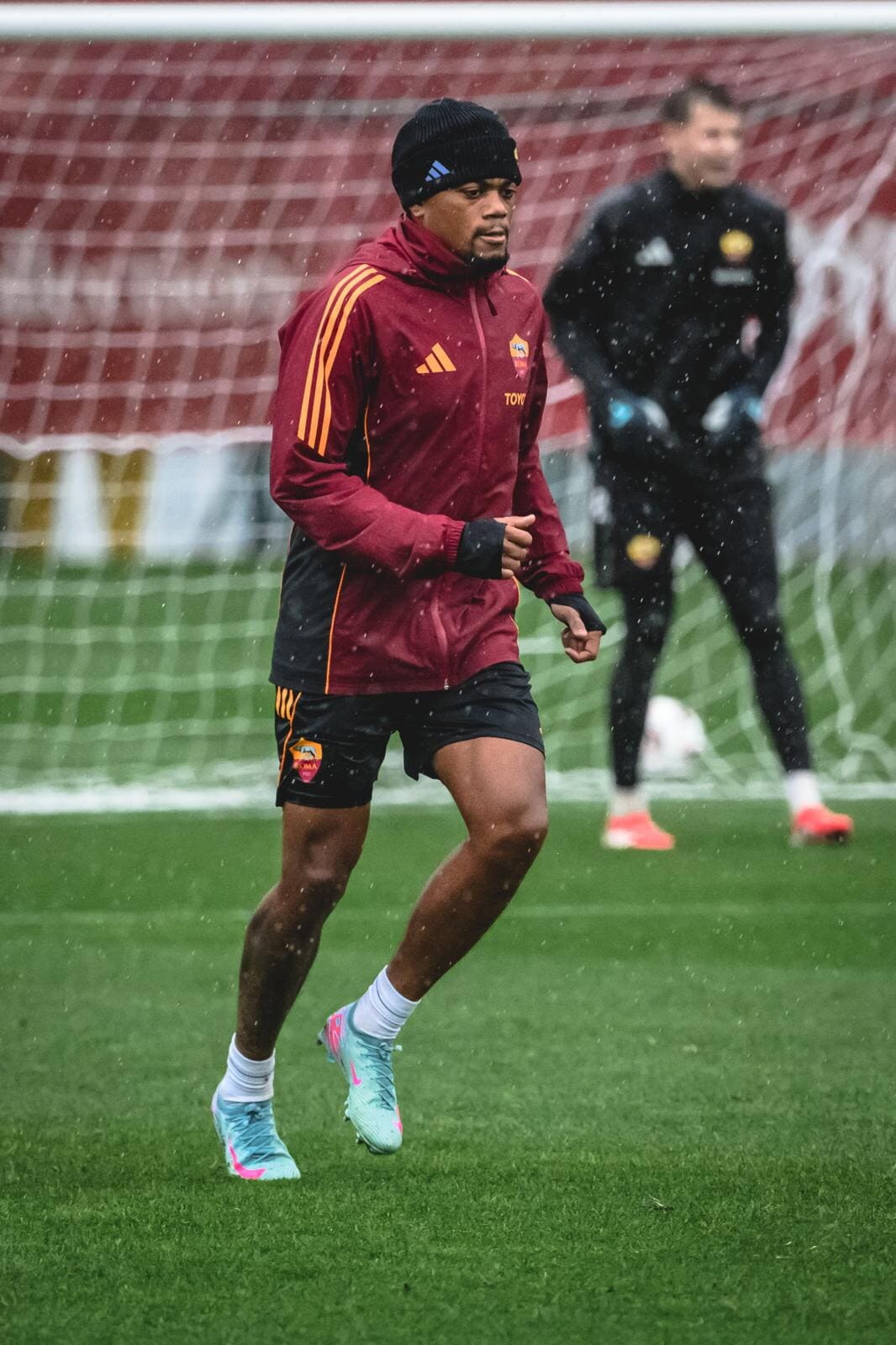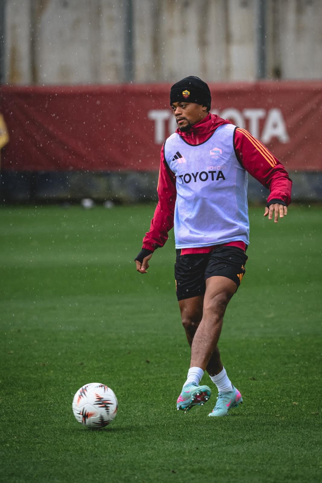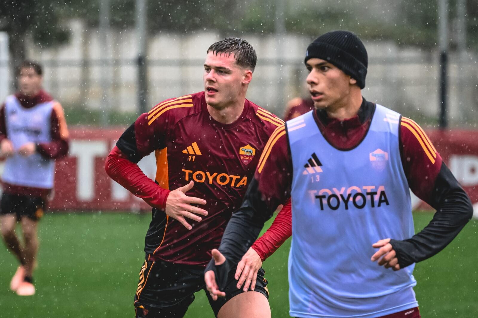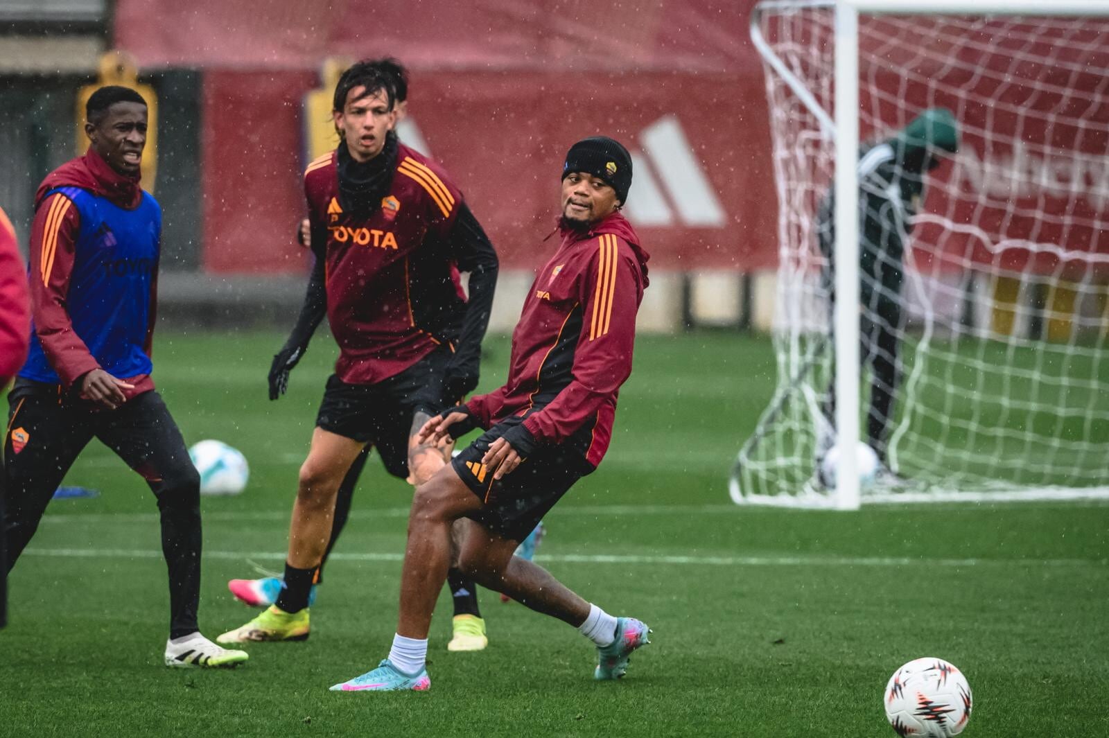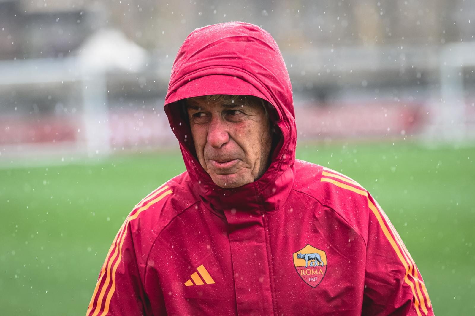 La Roma capolista di Gasperini si allena sotto il diluvio a Trigoria