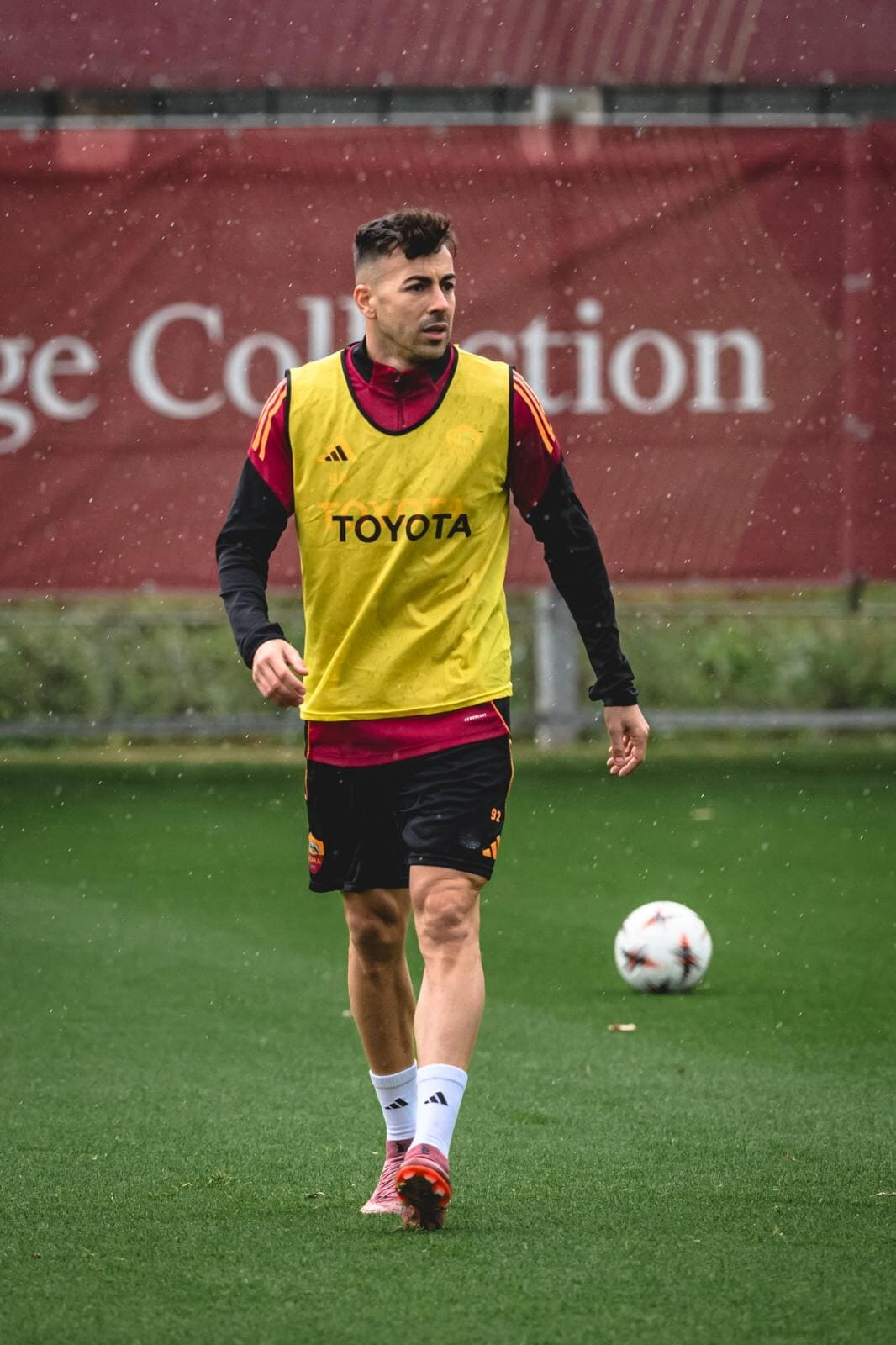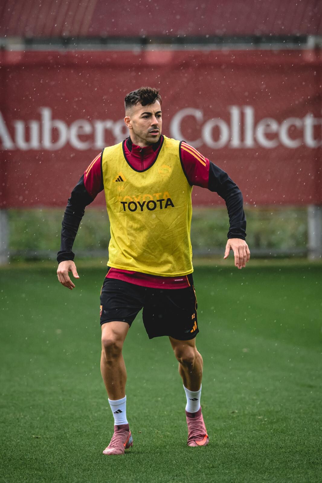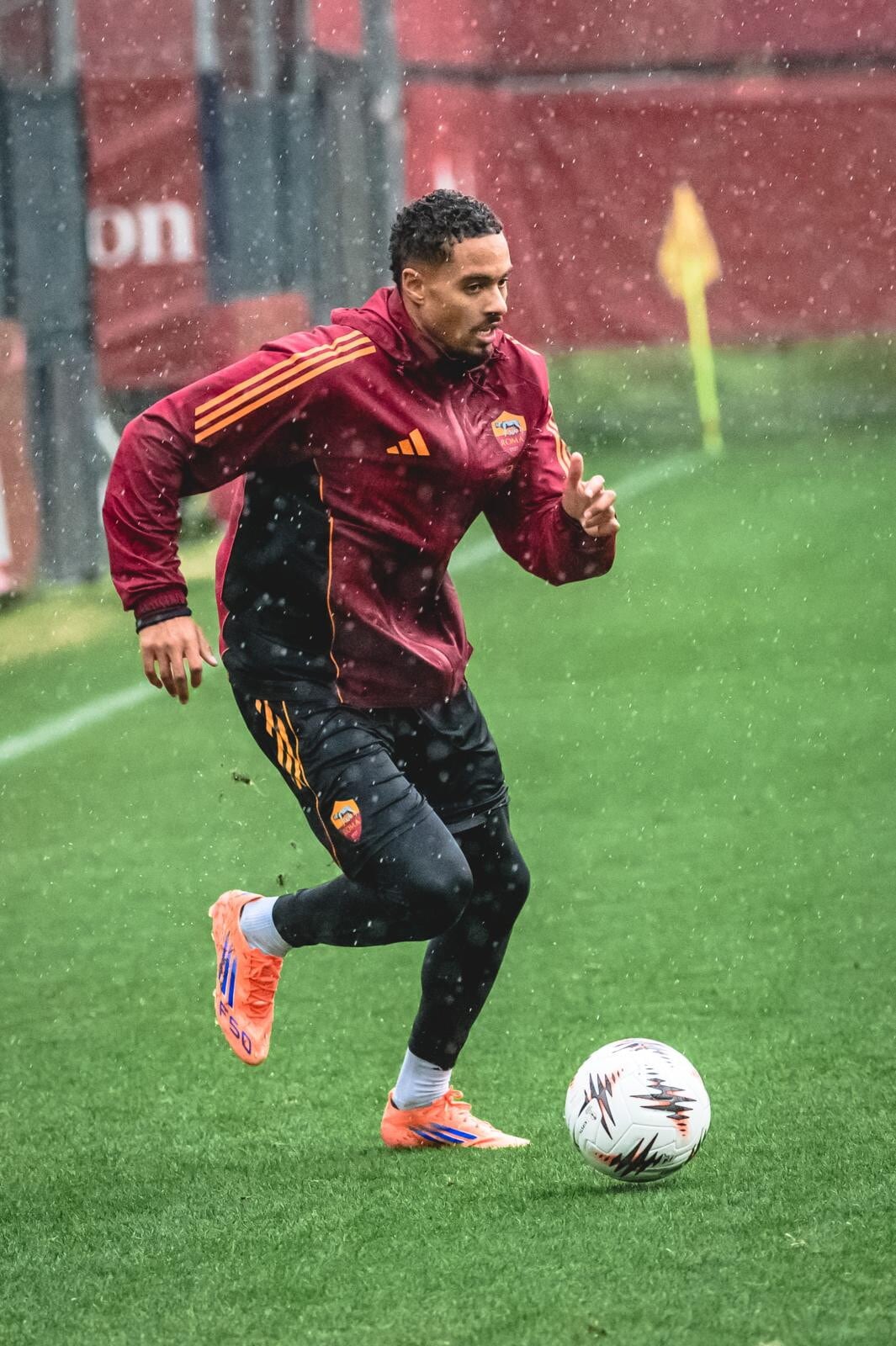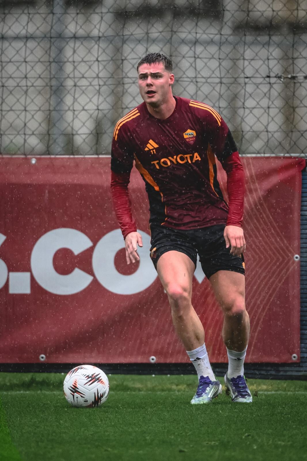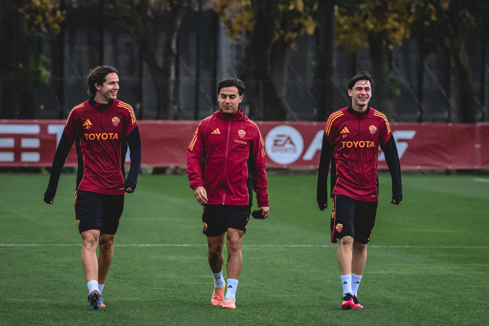 La Roma capolista di Gasperini si allena sotto il diluvio a Trigoria