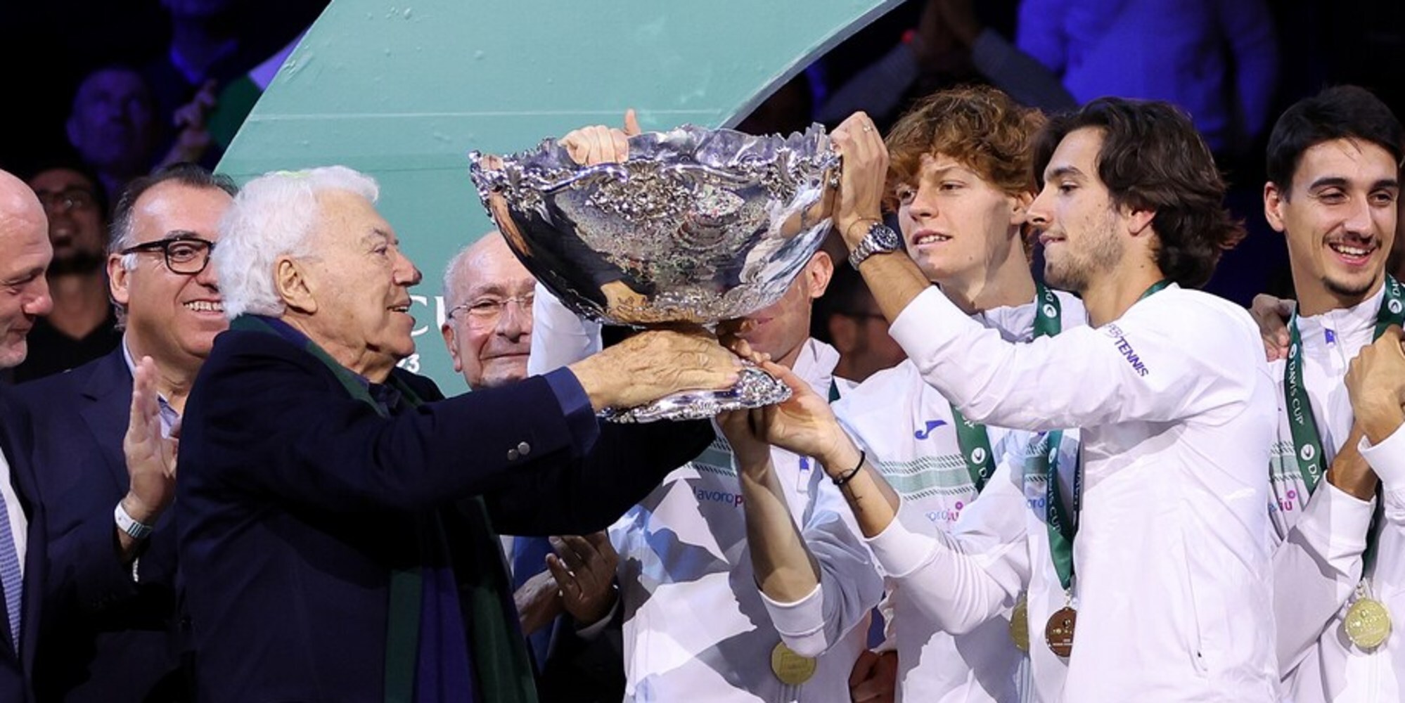 Pietrangeli, la Coppa Davis alzata con Sinner: le foto più belle della leggenda del tennis italiano