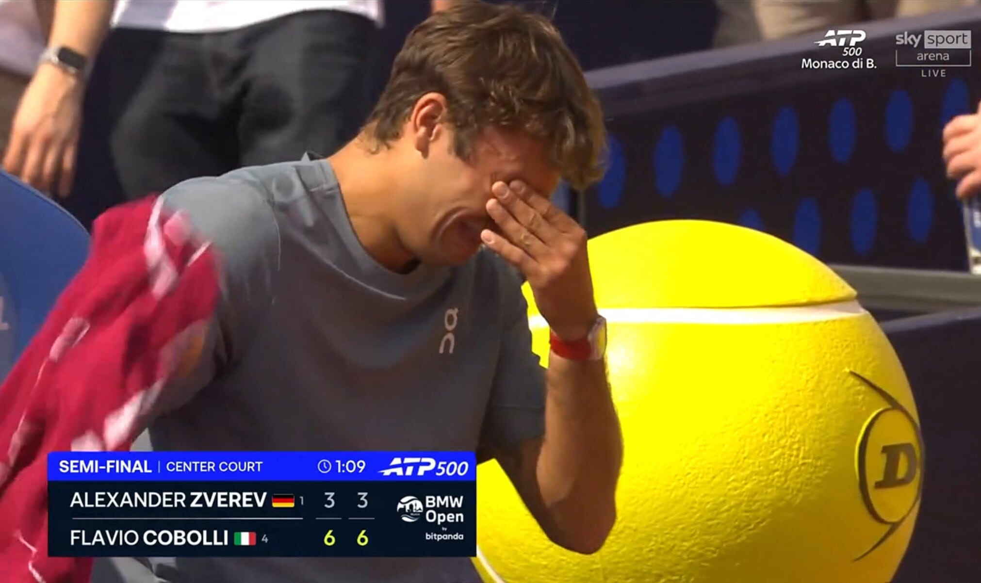 Cobolli scoppia a piangere in campo dopo aver battuto Zverev: il pianto a dirotto a Monaco in panchina