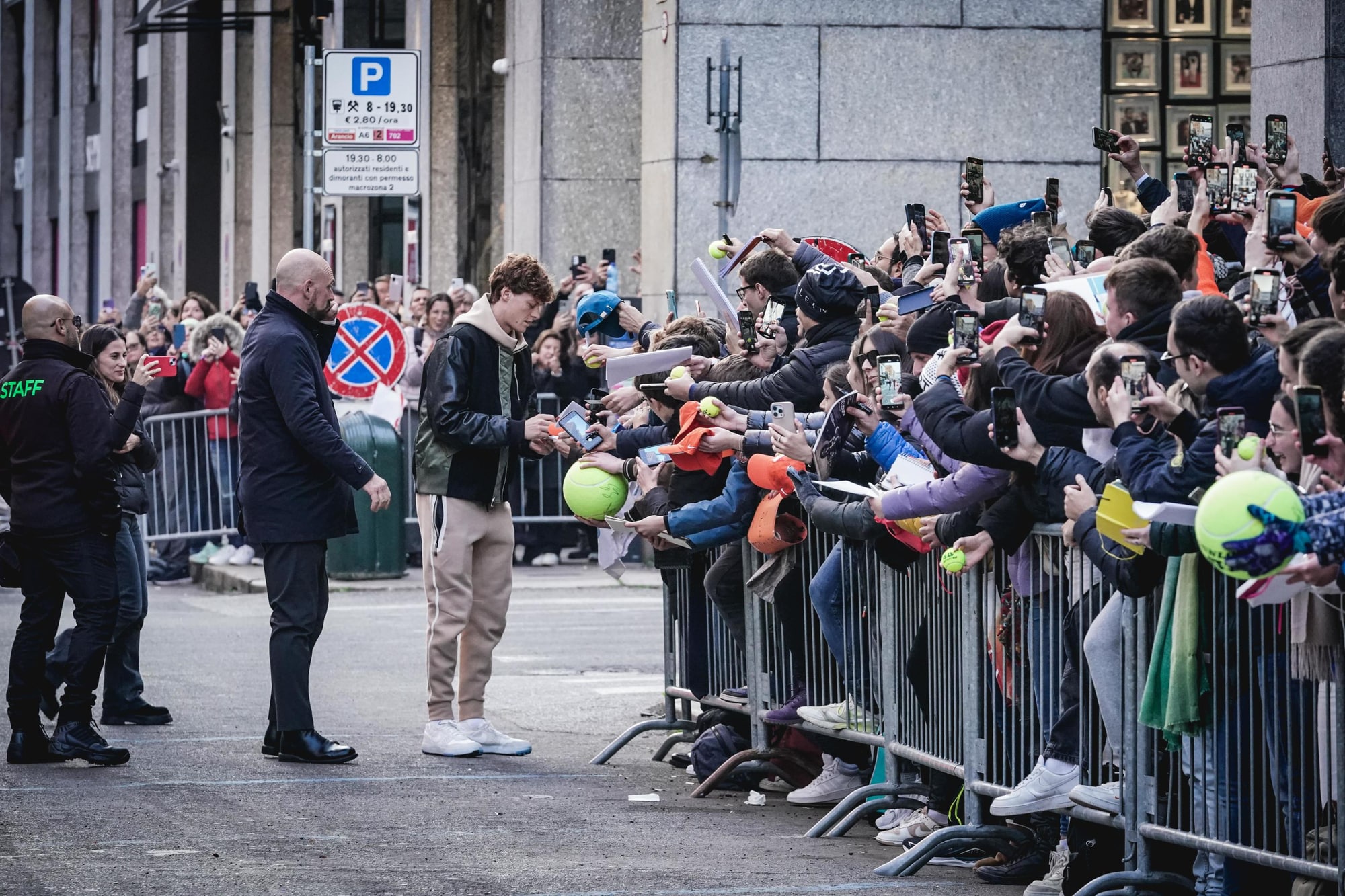 Nitto Atp FinalsDiletta Leotta si toglie gli stivali e... resta a piedi nudi per giocare a tennis: che show alle Atp Finals