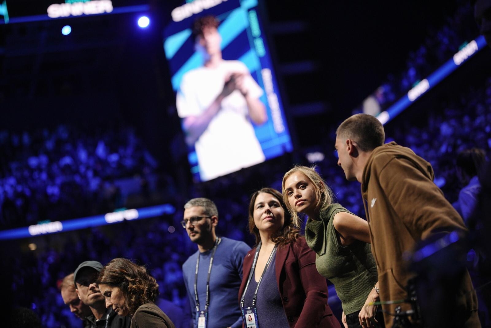 Nitto Atp FinalsDiletta Leotta si toglie gli stivali e... resta a piedi nudi per giocare a tennis: che show alle Atp Finals