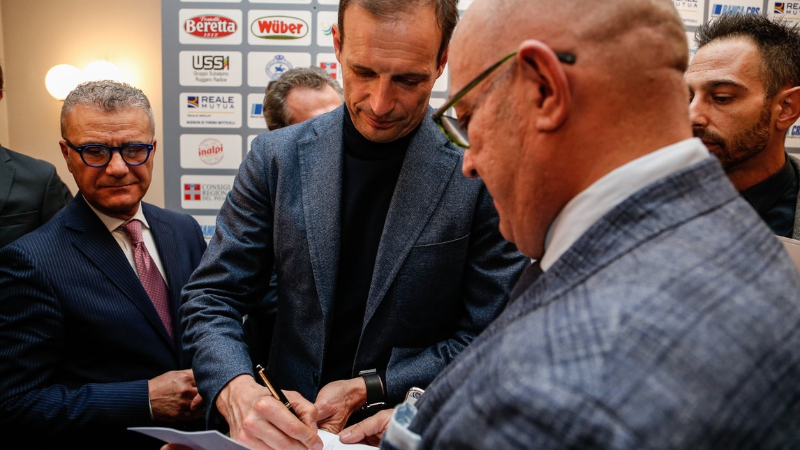 ALLEGRI SALE IN CATTEDRA: PROFESSORE PER GLI ALLIEVI ALLENATORI DEL CORSO UEFA PRO Da ieri la Juventus ha degli ospiti speciali a Vinovo: si tratta degli allievi allenatori del corso Uefa Pro. I futuri tecnici stanno studiando le metodologie di allenamento del tecnico della Juventus, Massimiliano Allegri. Quest'ultimo ha incontrato i futuri colleghi questa mattina, tenendo una lezione sulla tattica nei locali del training center di Vinovo.