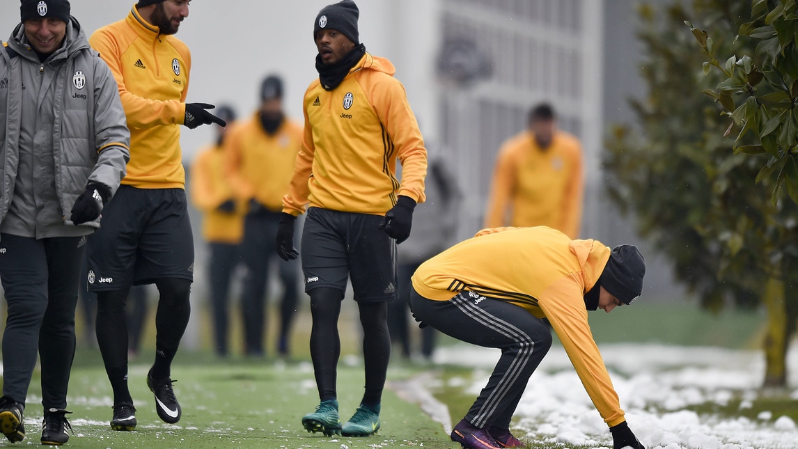 LA JUVE IN CAMPO IN UNA VINOVO INNEVATA PER PREPARARE LA FINALE DI SUPERCOPPA ITALIANA La Juventus si sta allenando in una Vinovo innevata per preparare la finale di Supercoppa italiana contro il Milan in programma venerdì a Doha alle ore 17.30 italiane. Oggi, verranno valutate le condizioni di Miralem Pjanic e Stephan Lichtsteiner entrambi sono usciti acciaccati dalla sfida di sabato sera contro la Roma.