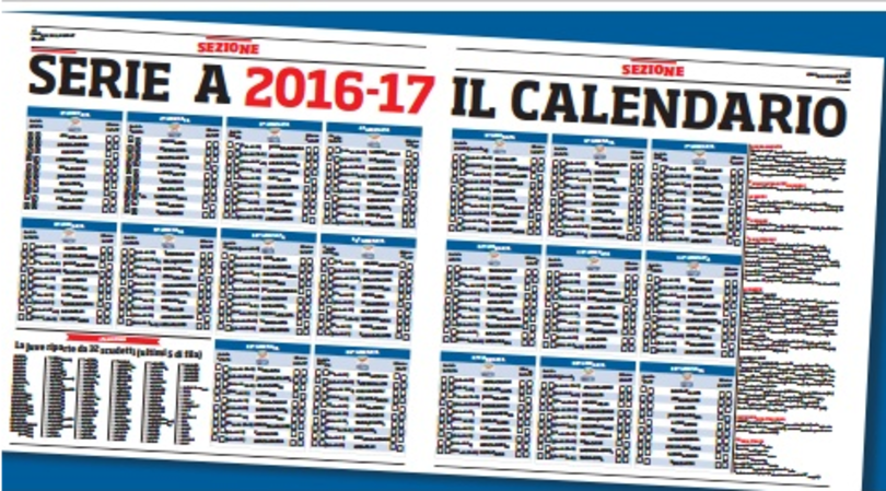 Un grande regalo del Corriere dello Sport vi aspetta domani in edicola: il calendario aggiornato di serie A con anticipi e posticipi. Due pagine speciali con tutti gli anticipi e i posticipi fino alla sosta di Natale. Leggi qui![]() |