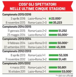 GLI SPETTATORI NEGLI ULTIMI CINQUE DERBY![]() |