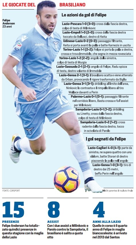 ECCO I NUMERI STRAORDINARI DI FELIPE ANDERSON![]() |