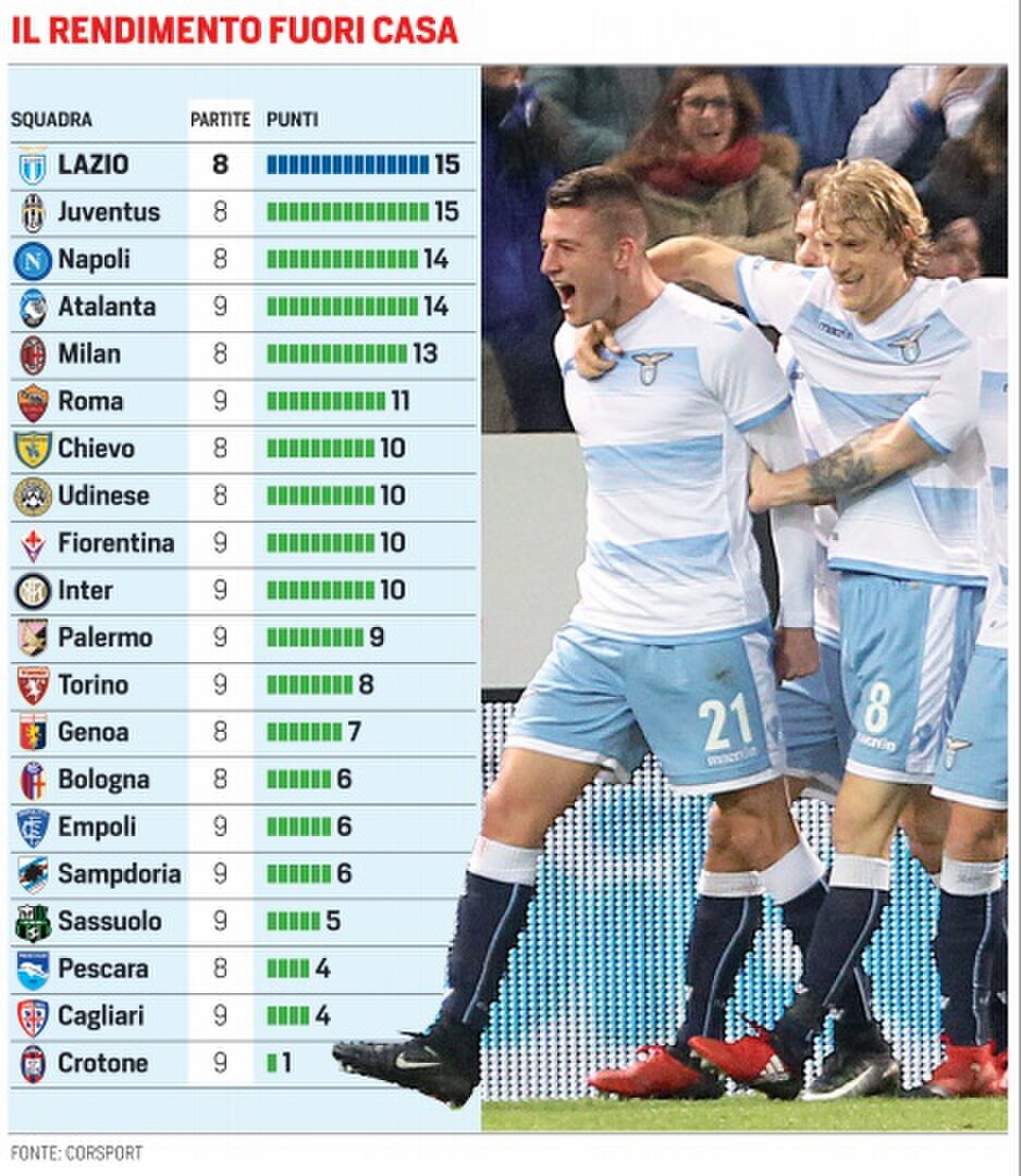 LA LAZIO IN TRASFERTA HA FATTO GLI STESSI PUNTI DELLA JUVENTUS![]() |